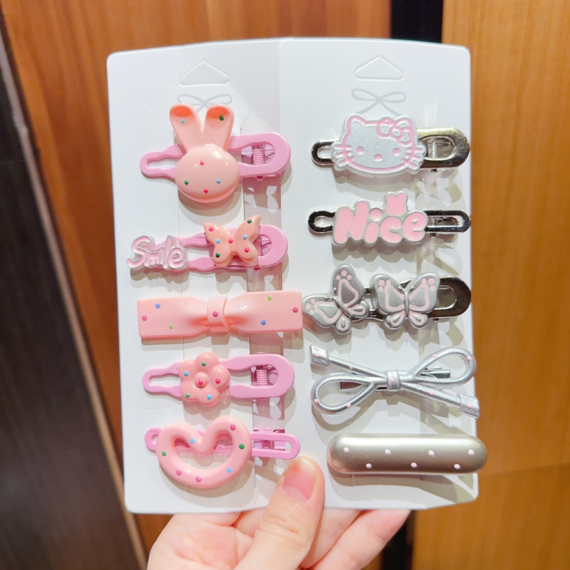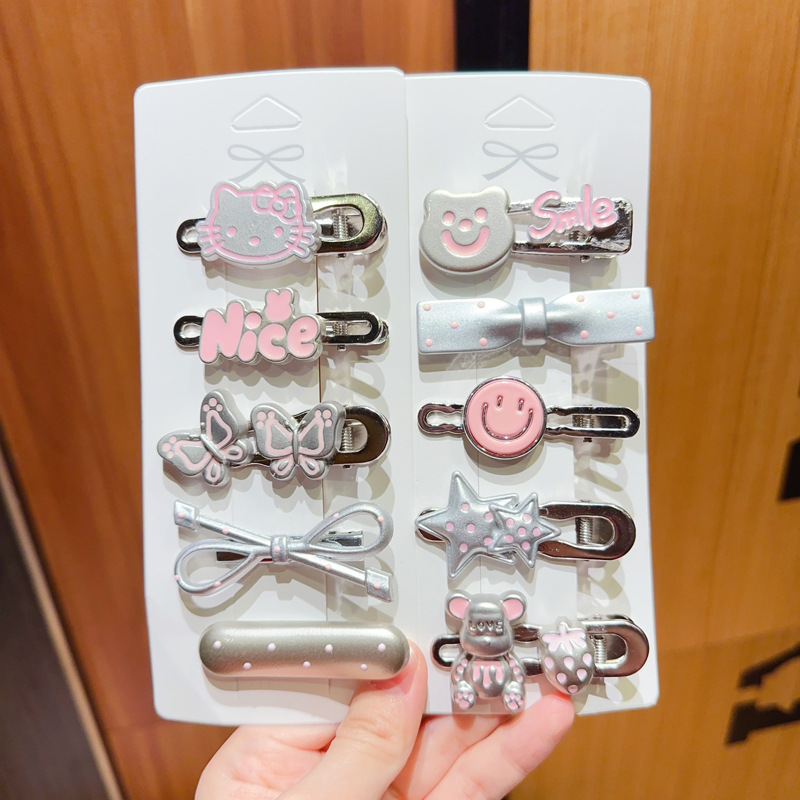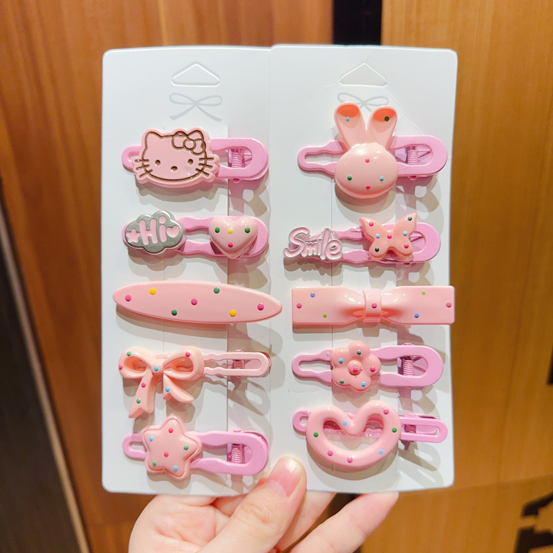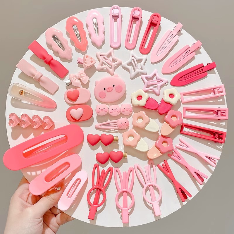 50개 앞머리 클립 세트, 귀여운 머리핀, 일본식 핑크 하트 조합 머리핀, 달콤한 소녀 만화 모자