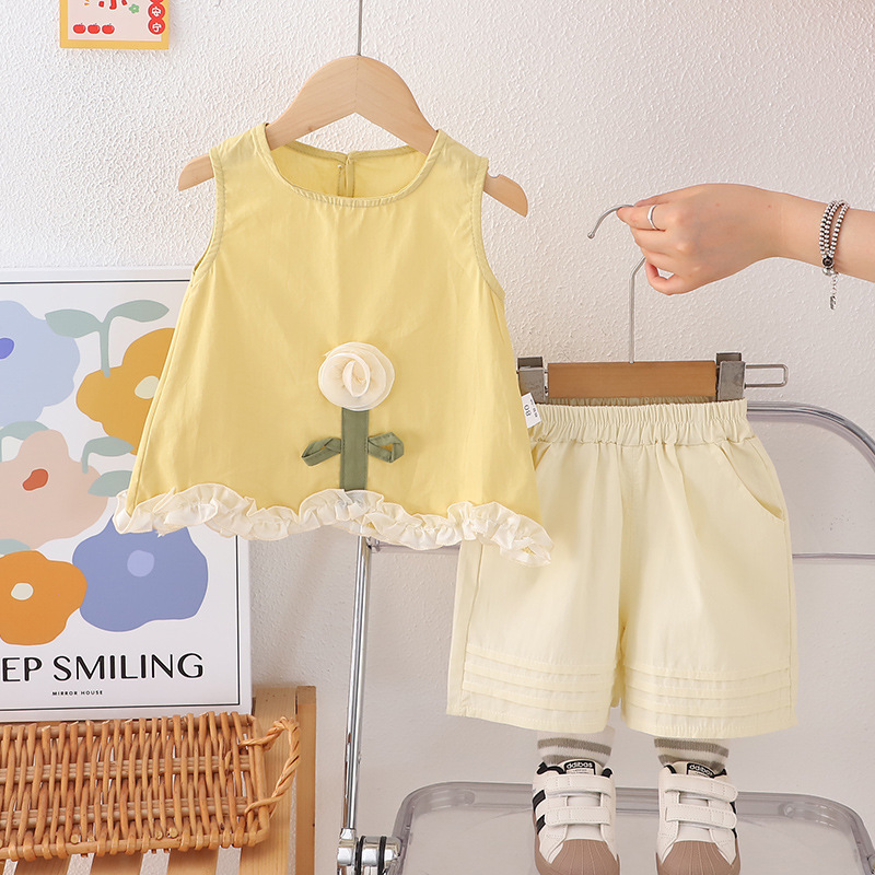 2025년 여름 신상 여아복, 패셔너블하고 스타일리시한 인터넷 연예인 입체 꽃 슈트, 여아 여름 아동복스토어 가기