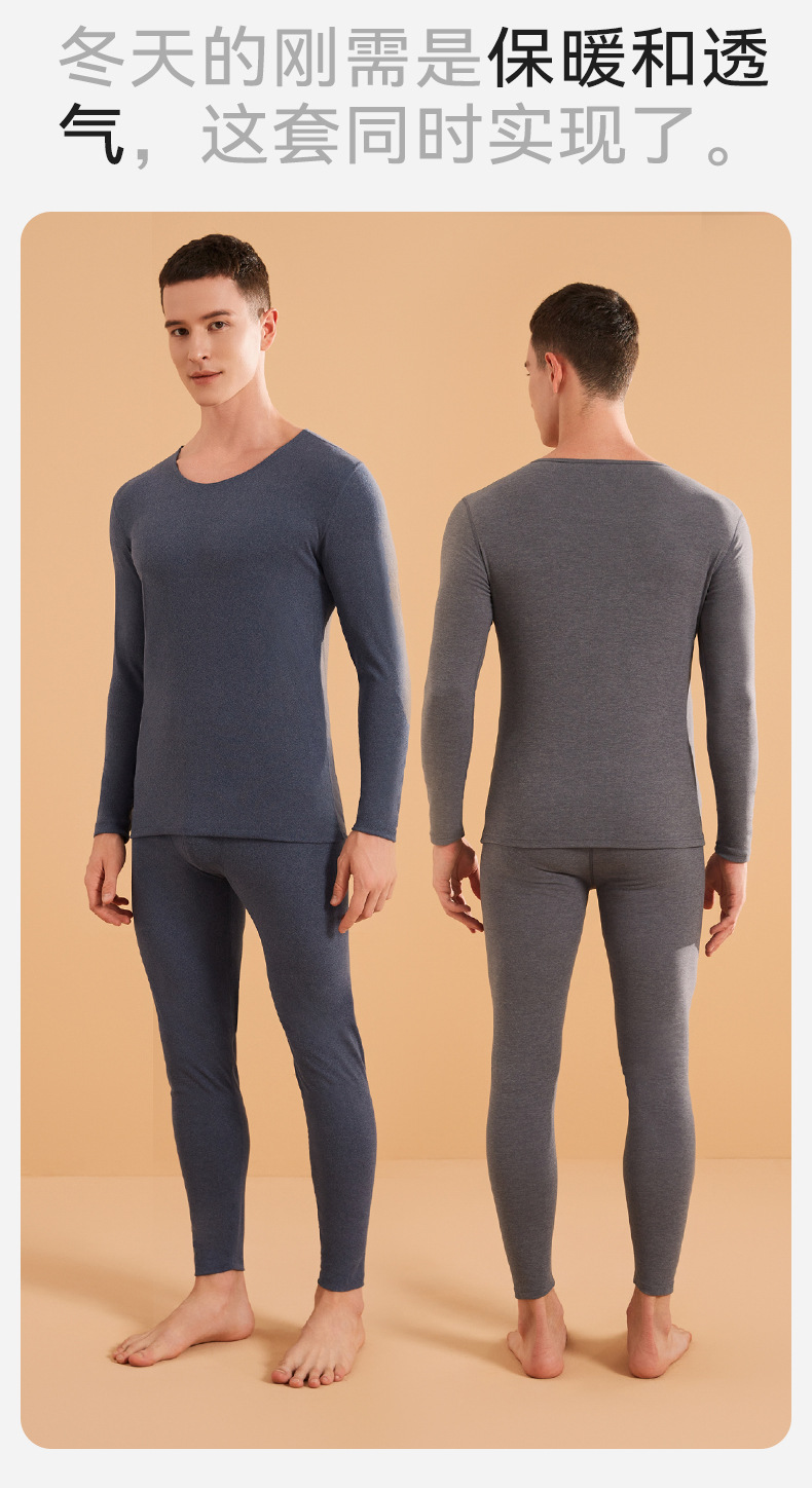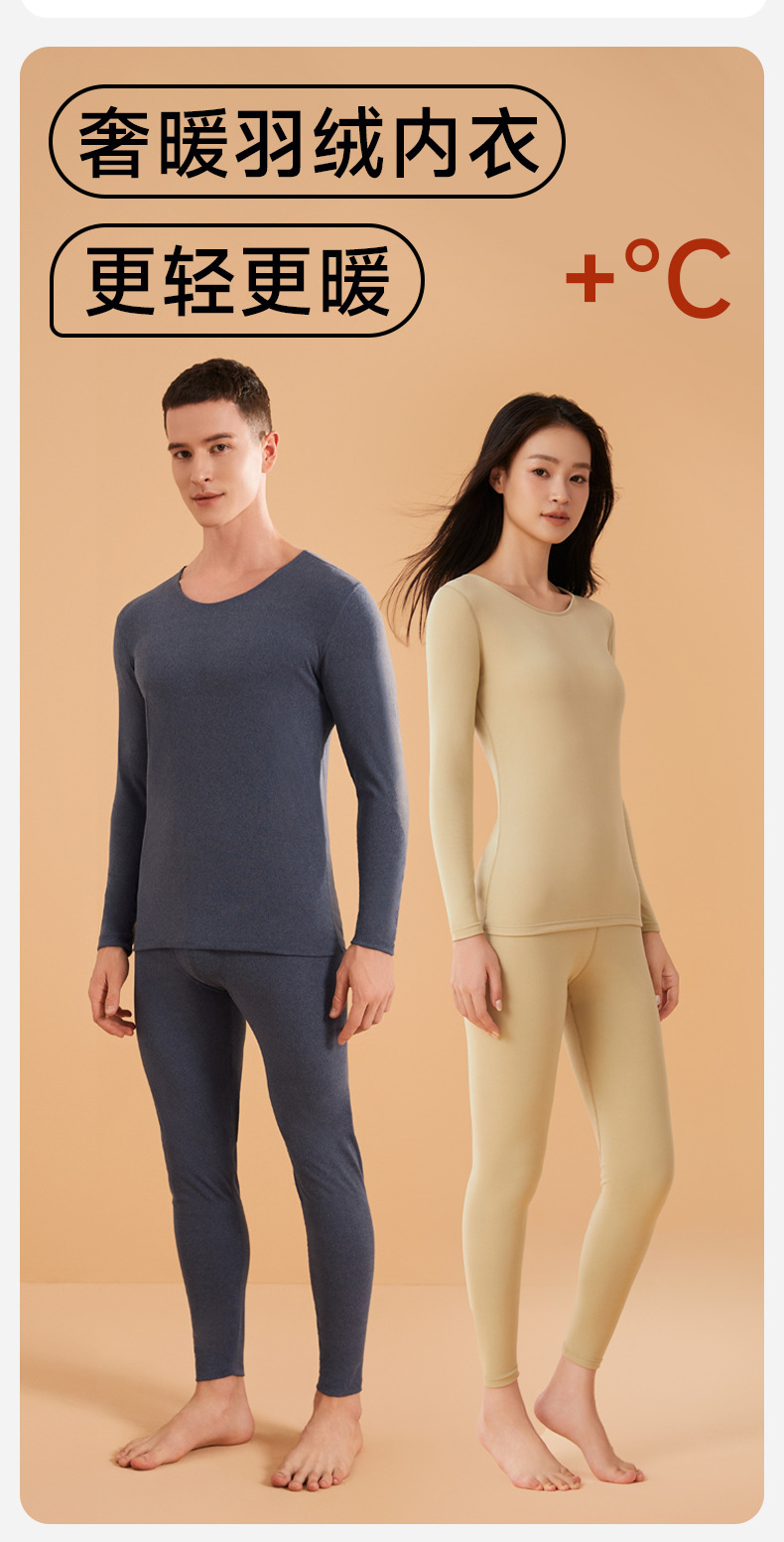 가을 겨울 피부에 영양을 공급하는 가벼운 따뜻한 보온 속옷 세트, 가을 옷과 긴 바지, 라운드 넥 베이스를 가공하고 맞춤 제작한 다운 단백질 커플스토어 가기
