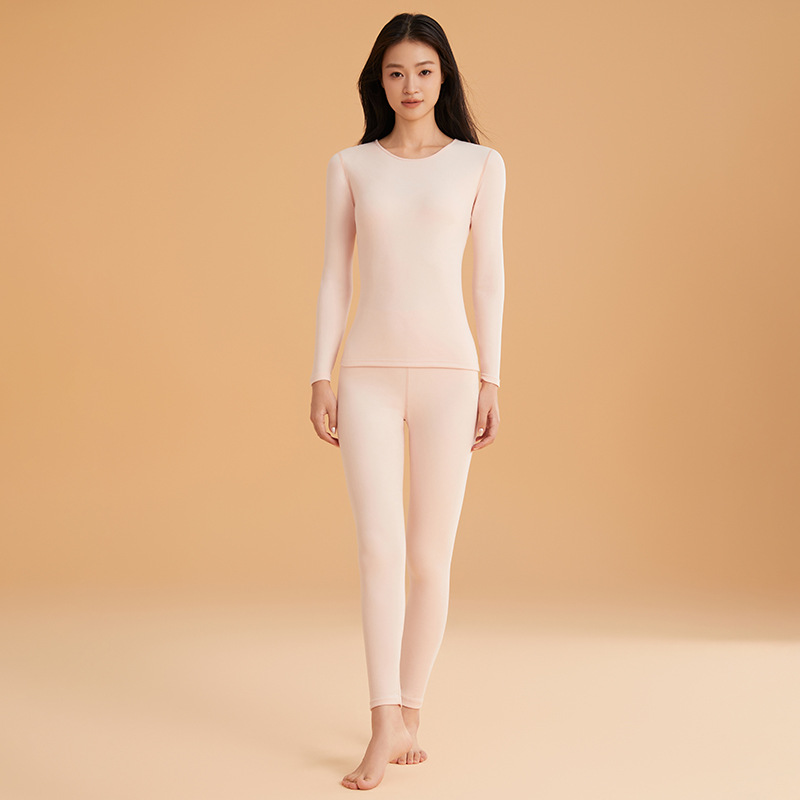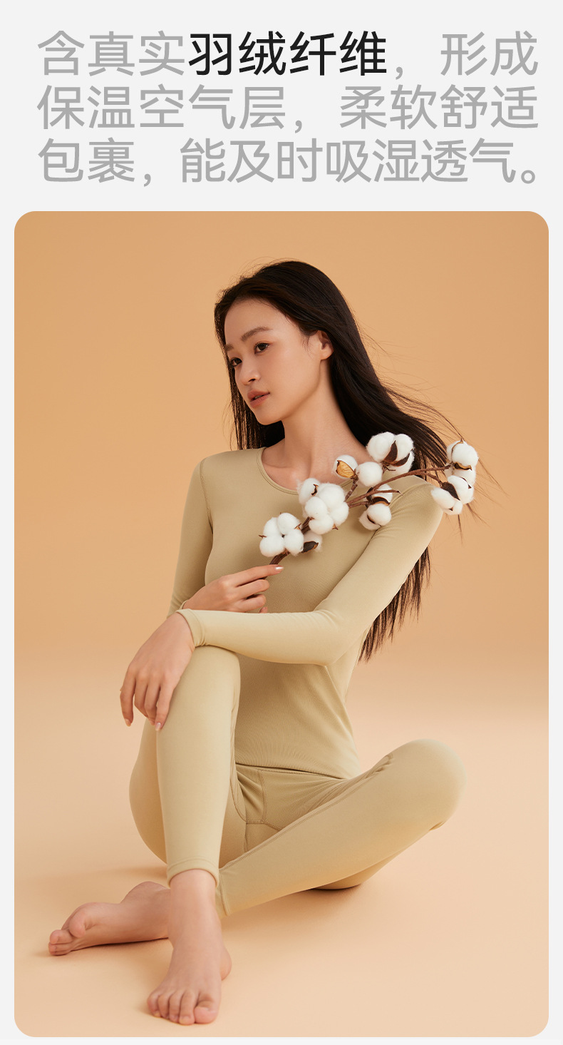 가을 겨울 피부에 영양을 공급하는 가벼운 따뜻한 보온 속옷 세트, 가을 옷과 긴 바지, 라운드 넥 베이스를 가공하고 맞춤 제작한 다운 단백질 커플