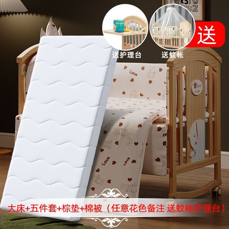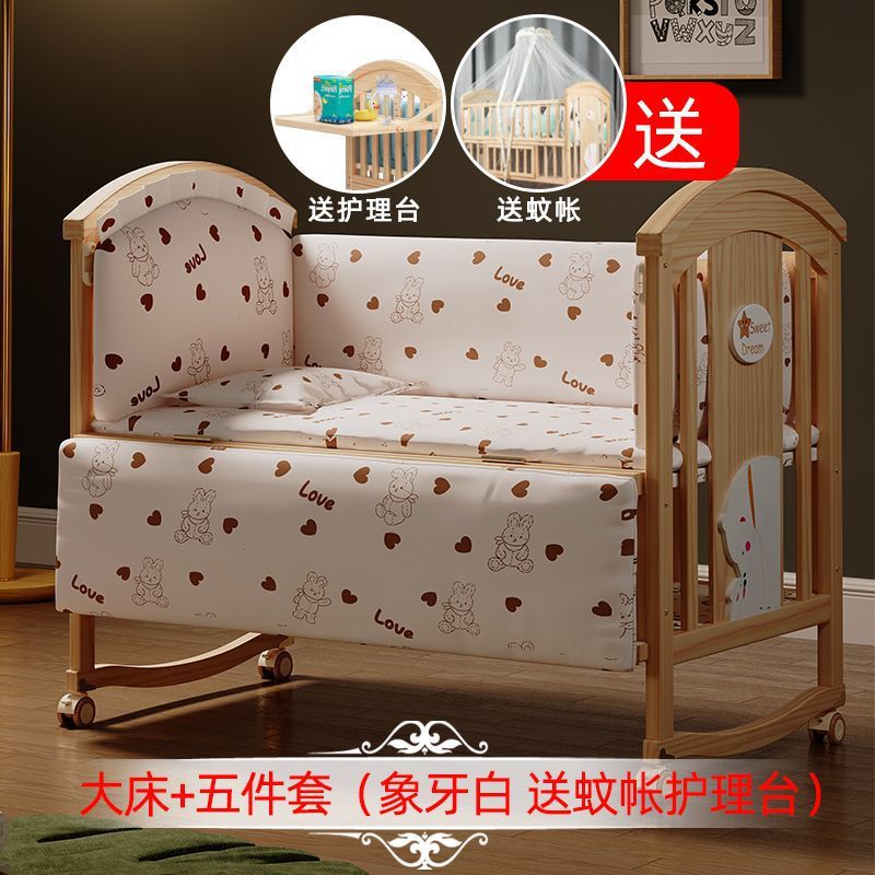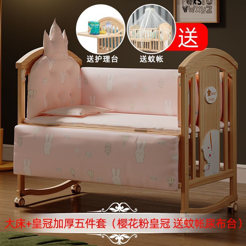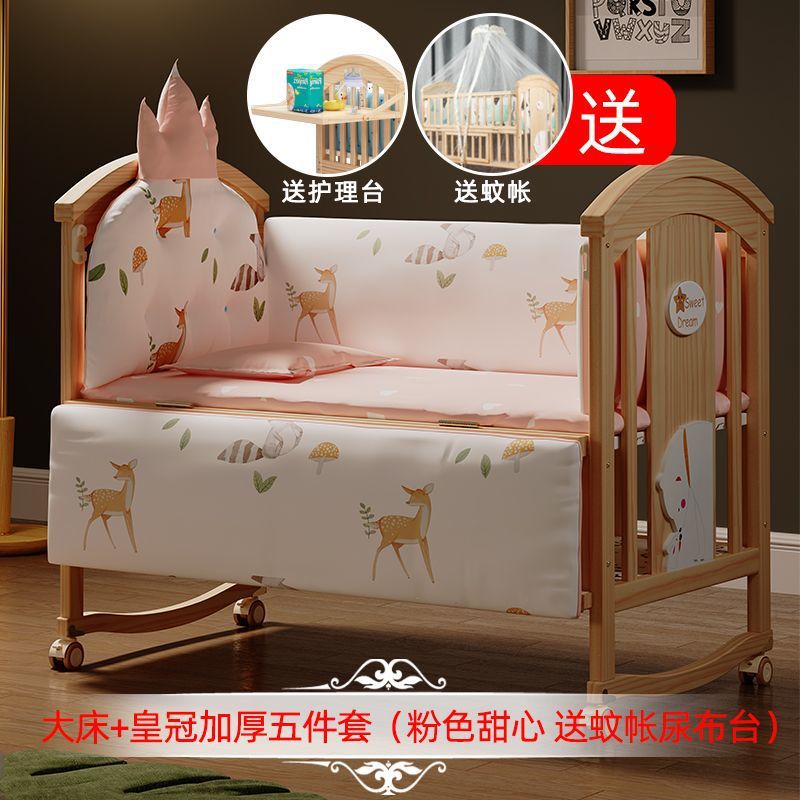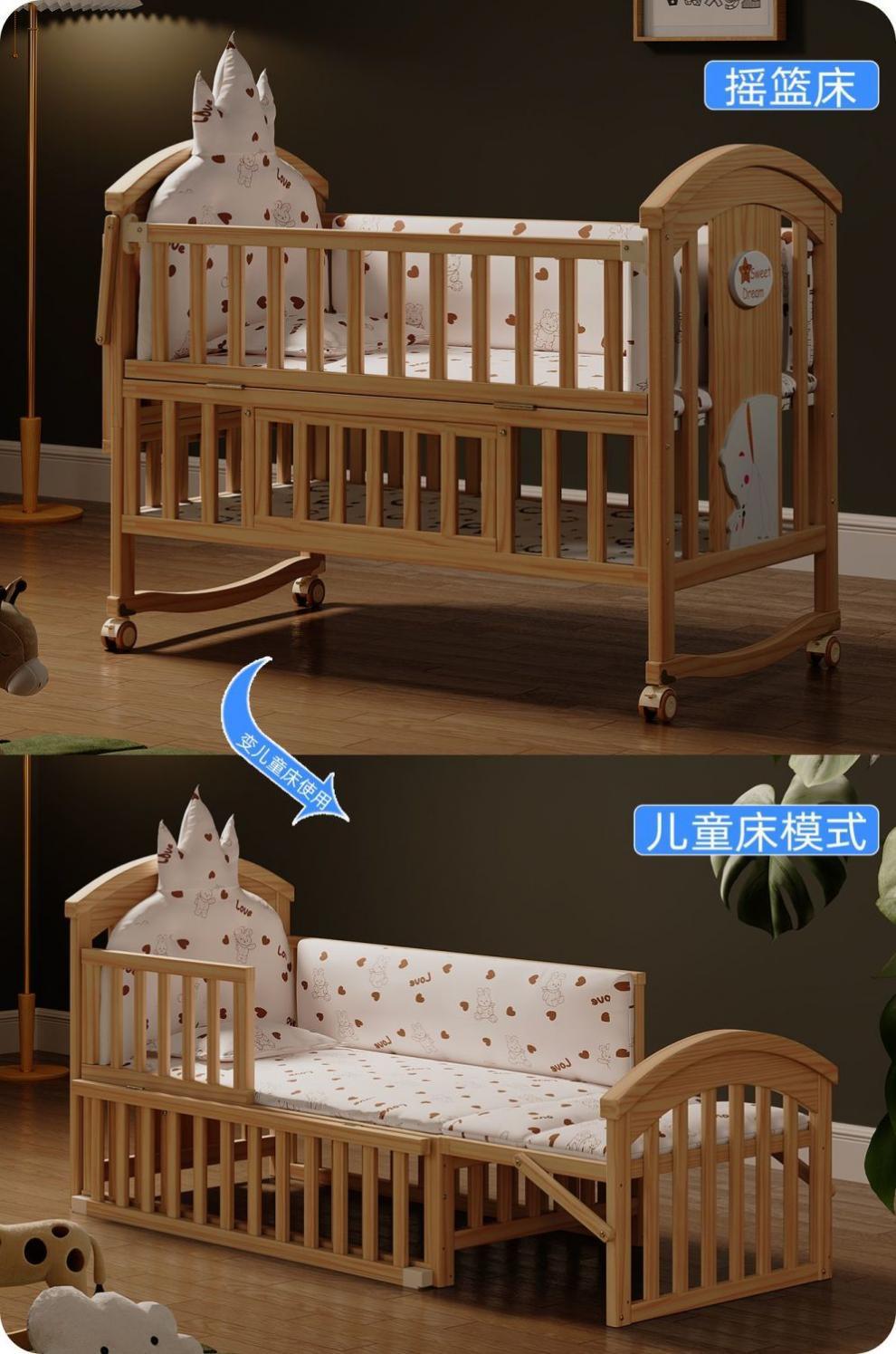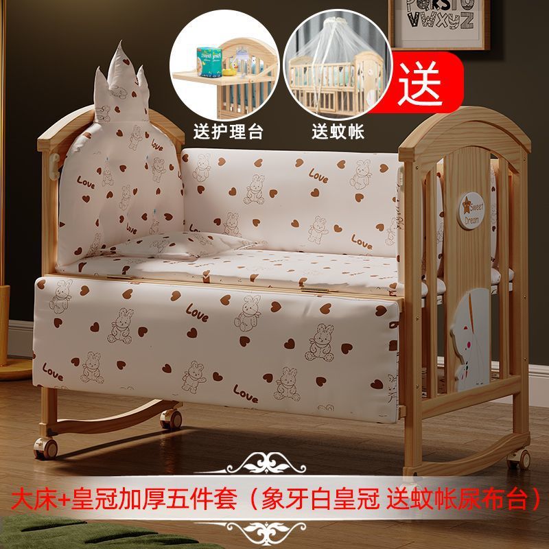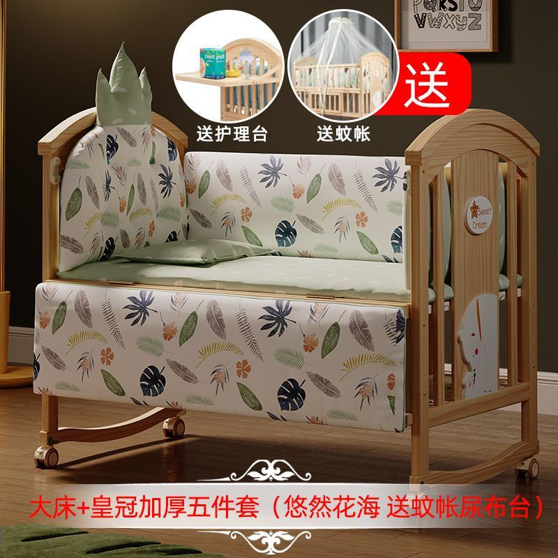 Jianmei 유아용 침대 단단한 나무 페인트가없는 요람 아기 침대 신생아 다기능 침대 어린이 접합 침대 이동식