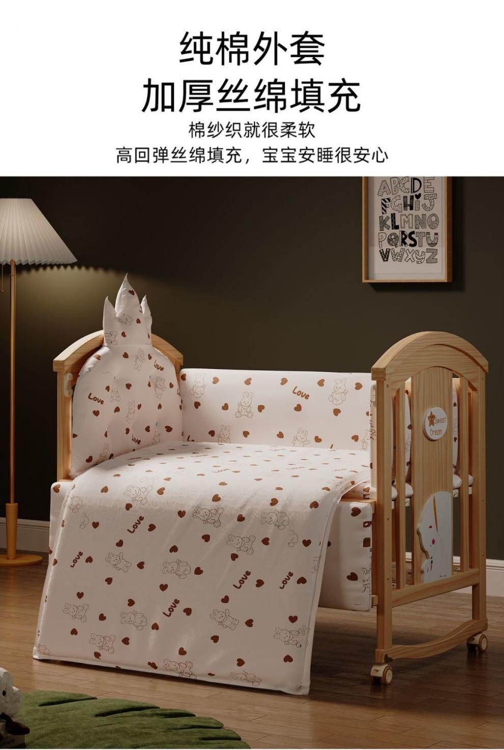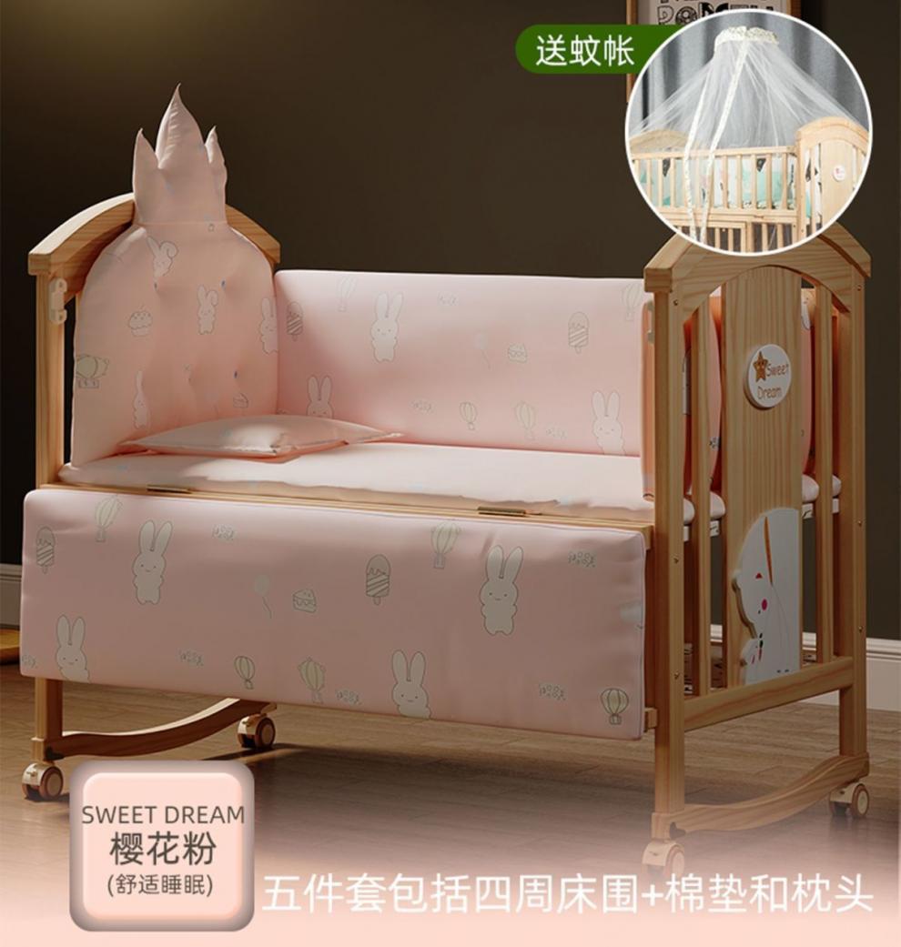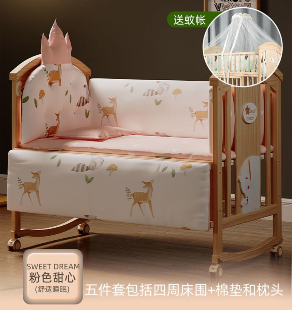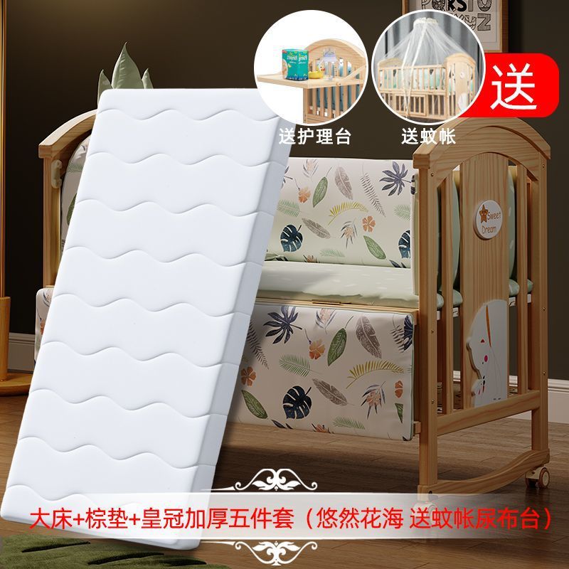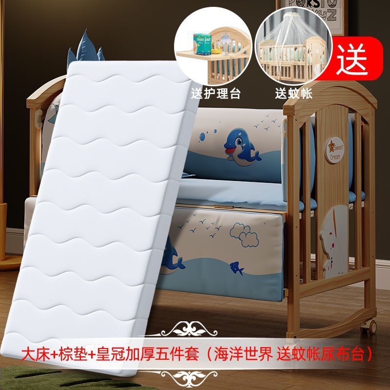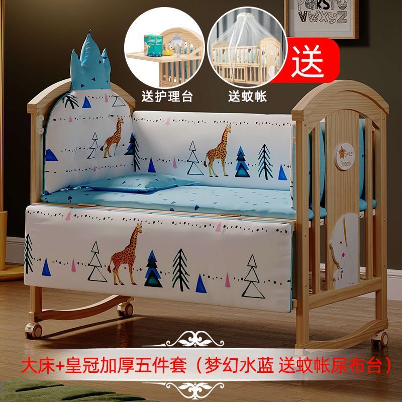 Jianmei 유아용 침대 단단한 나무 페인트가없는 요람 아기 침대 신생아 다기능 침대 어린이 접합 침대 이동식