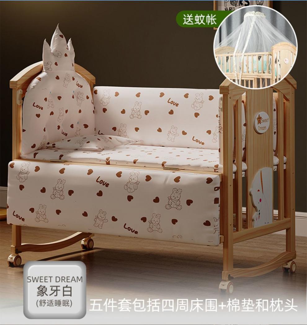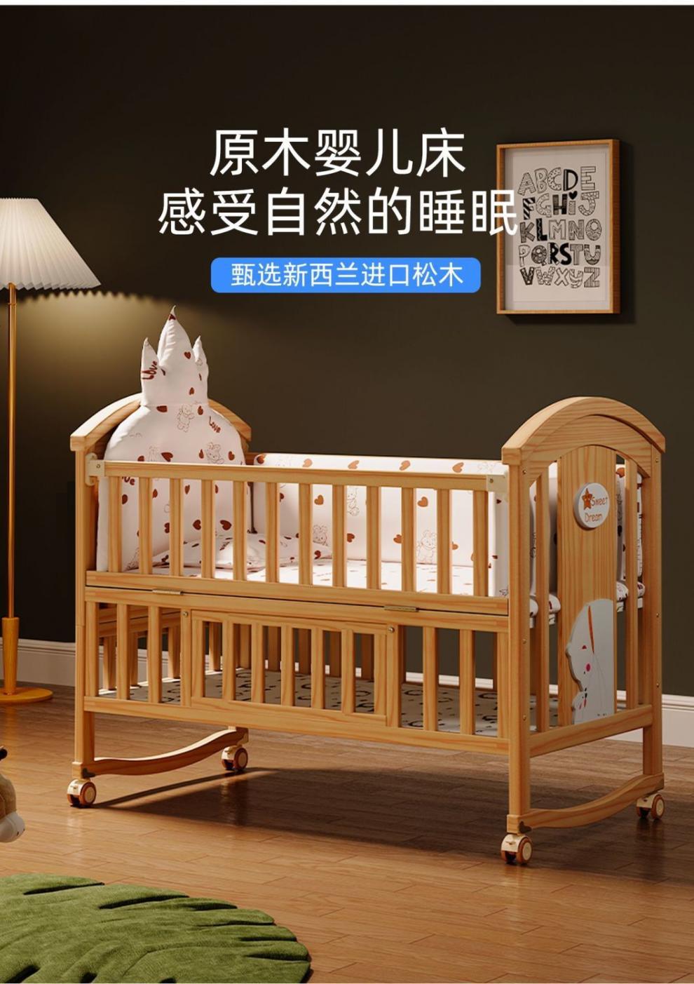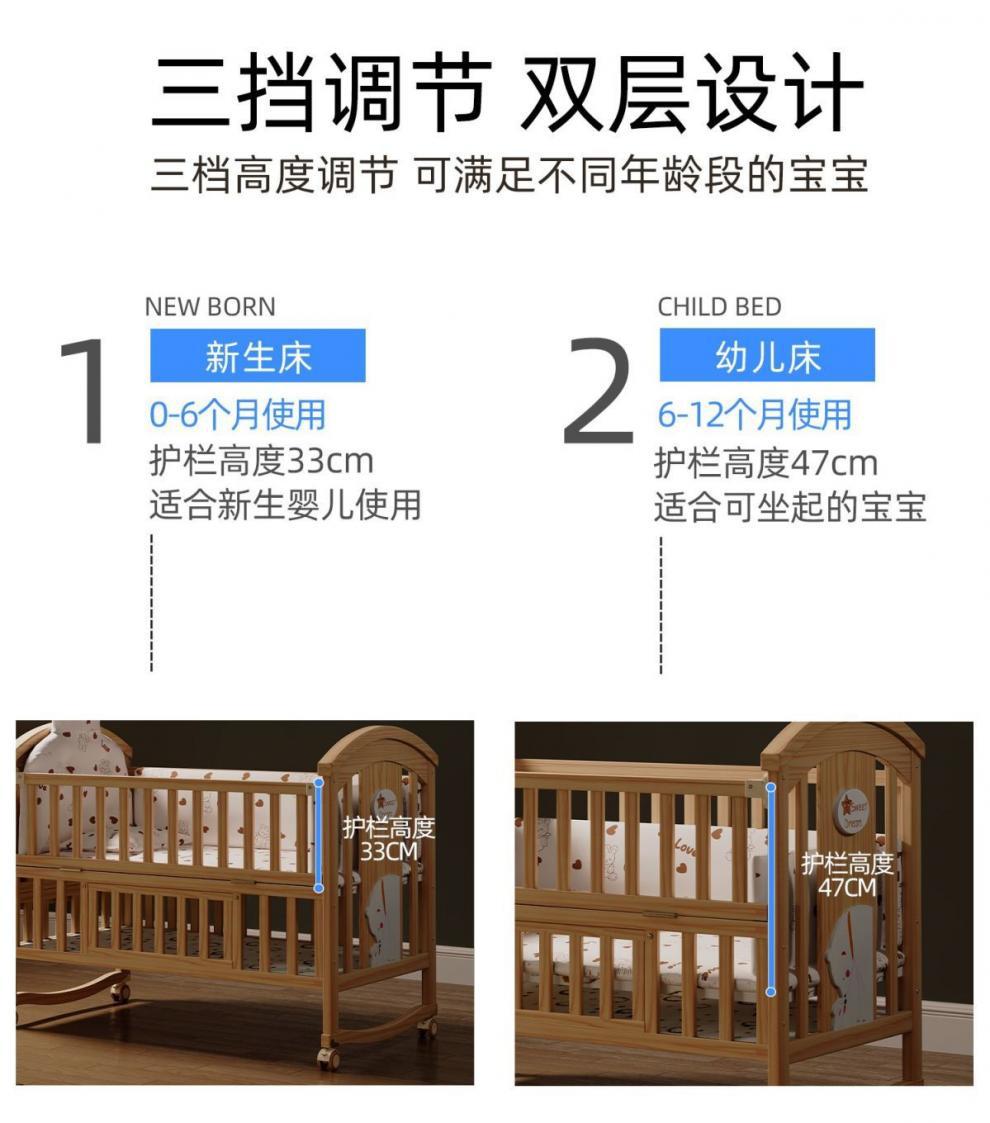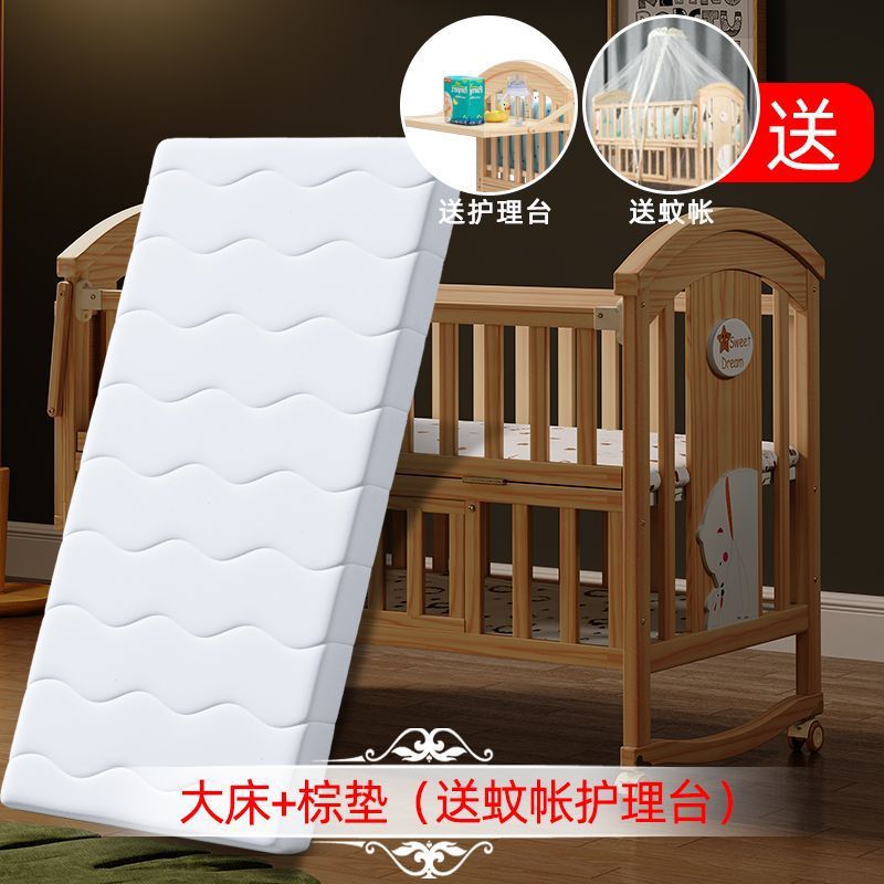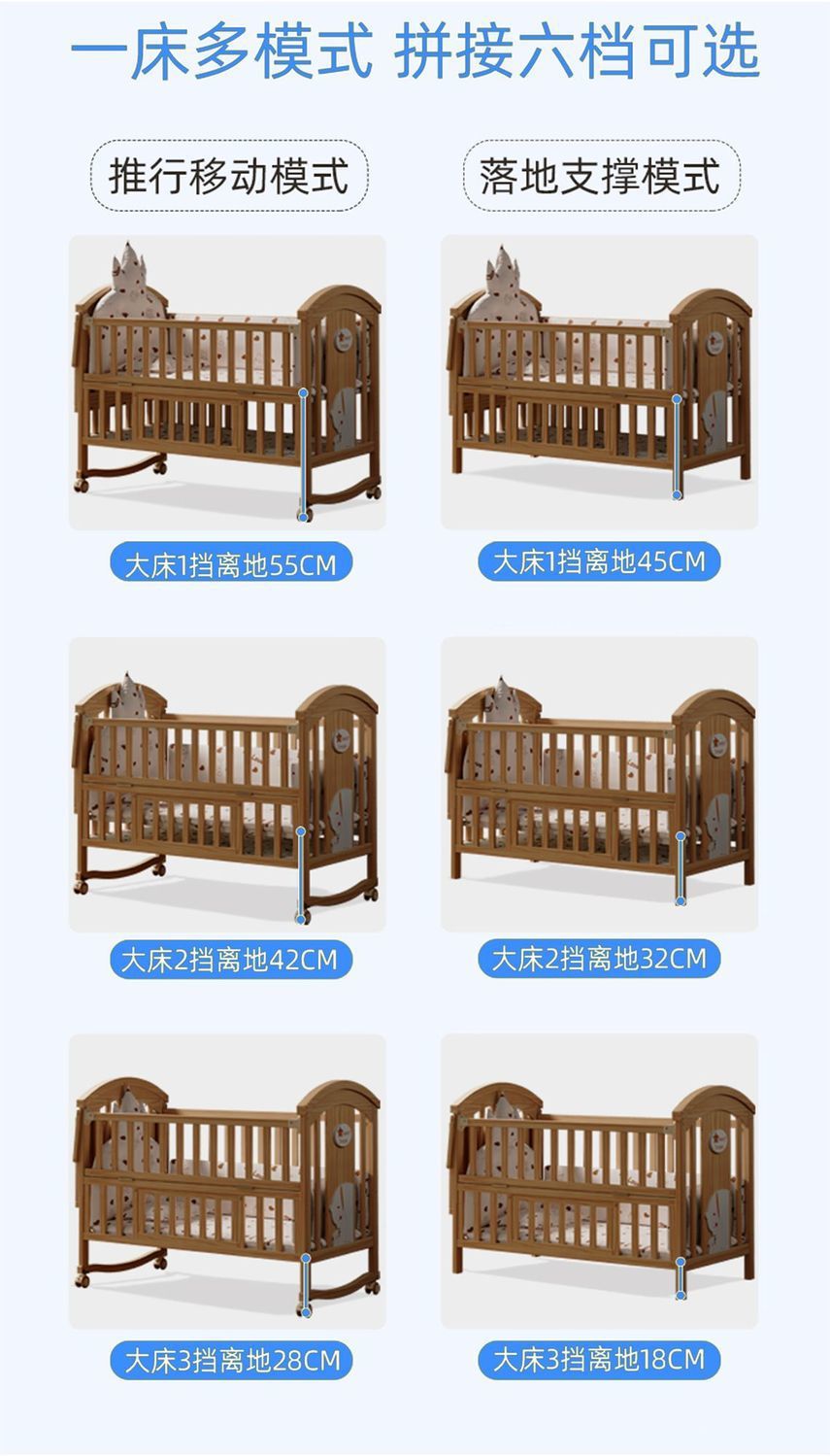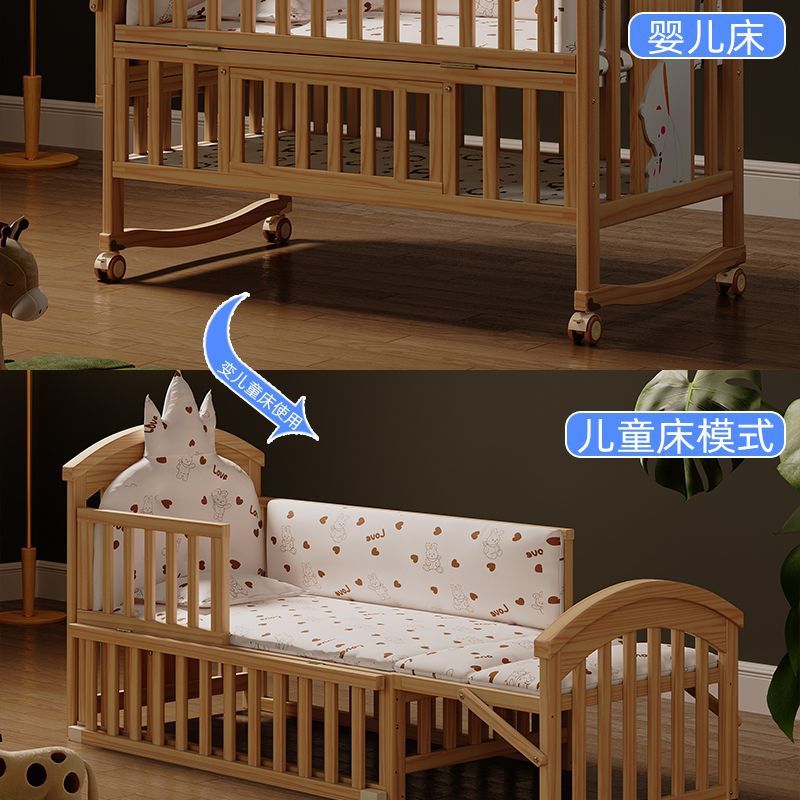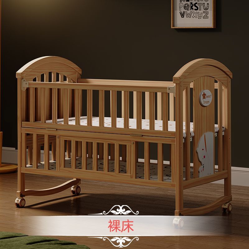 Jianmei 유아용 침대 단단한 나무 페인트가없는 요람 아기 침대 신생아 다기능 침대 어린이 접합 침대 이동식스토어 가기