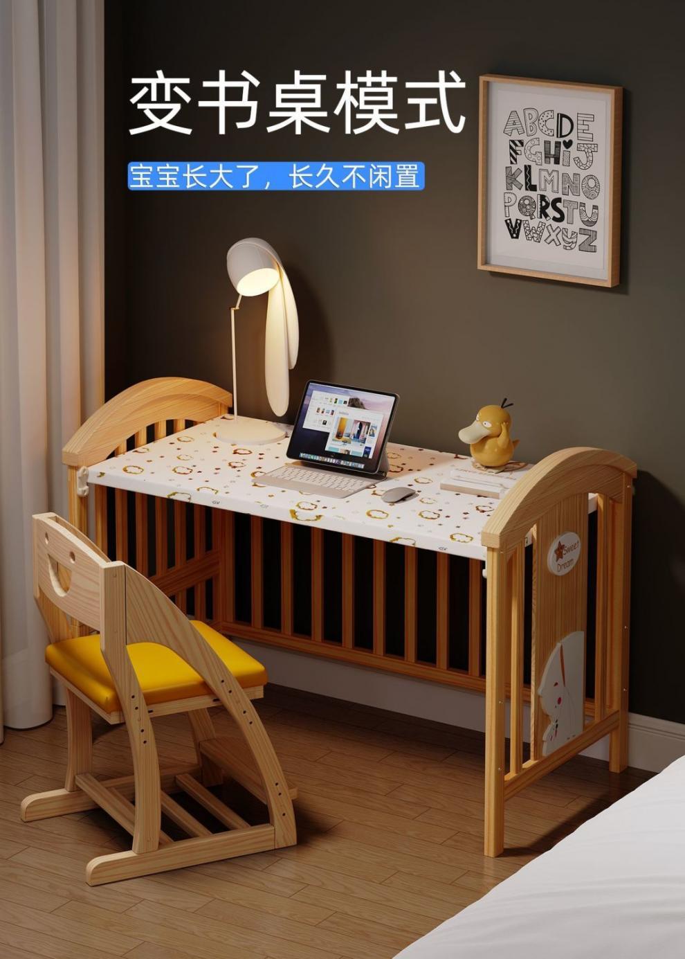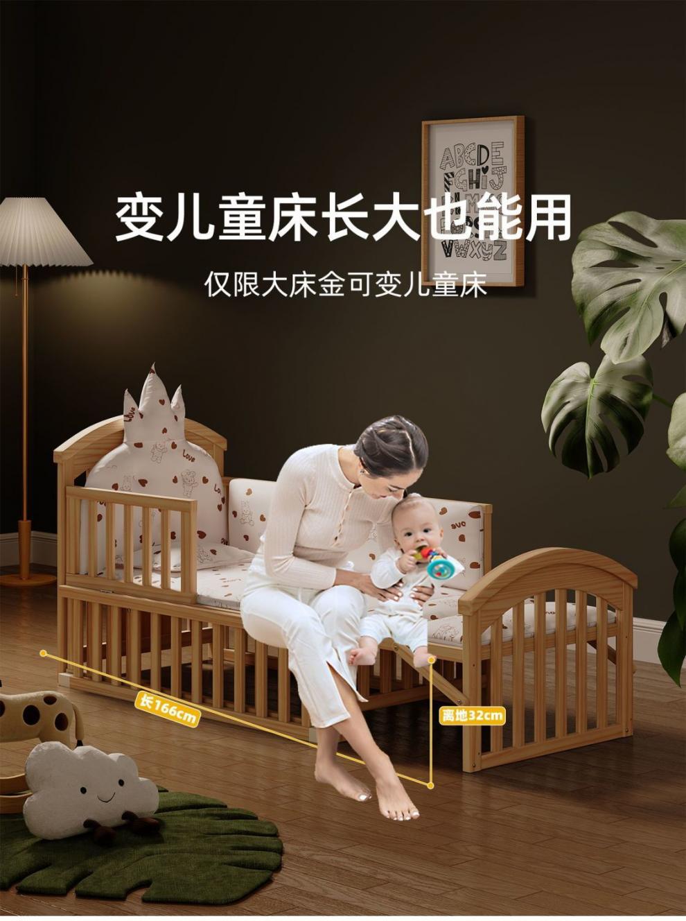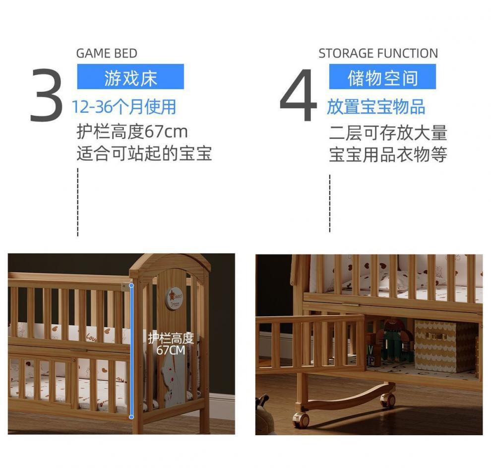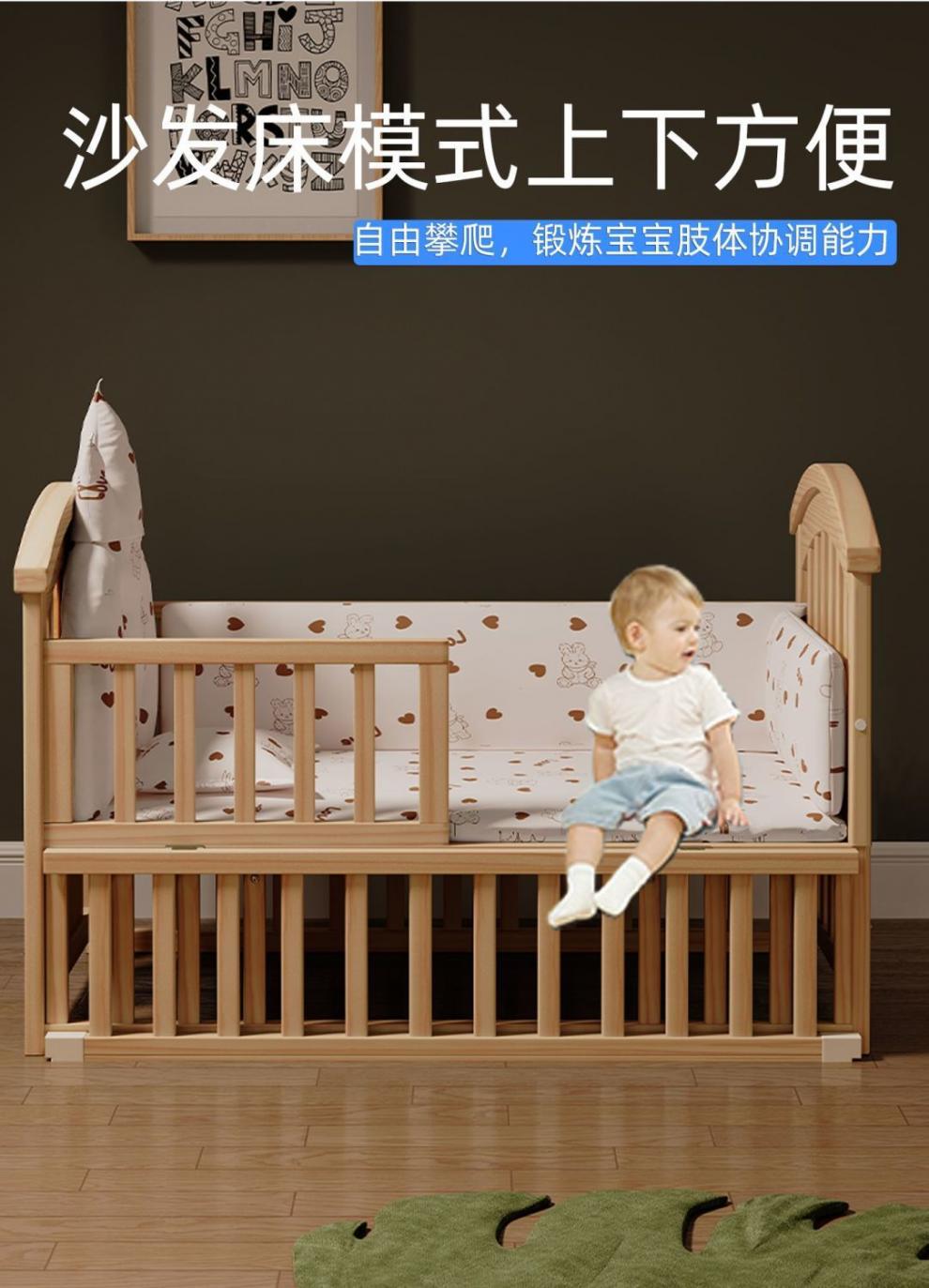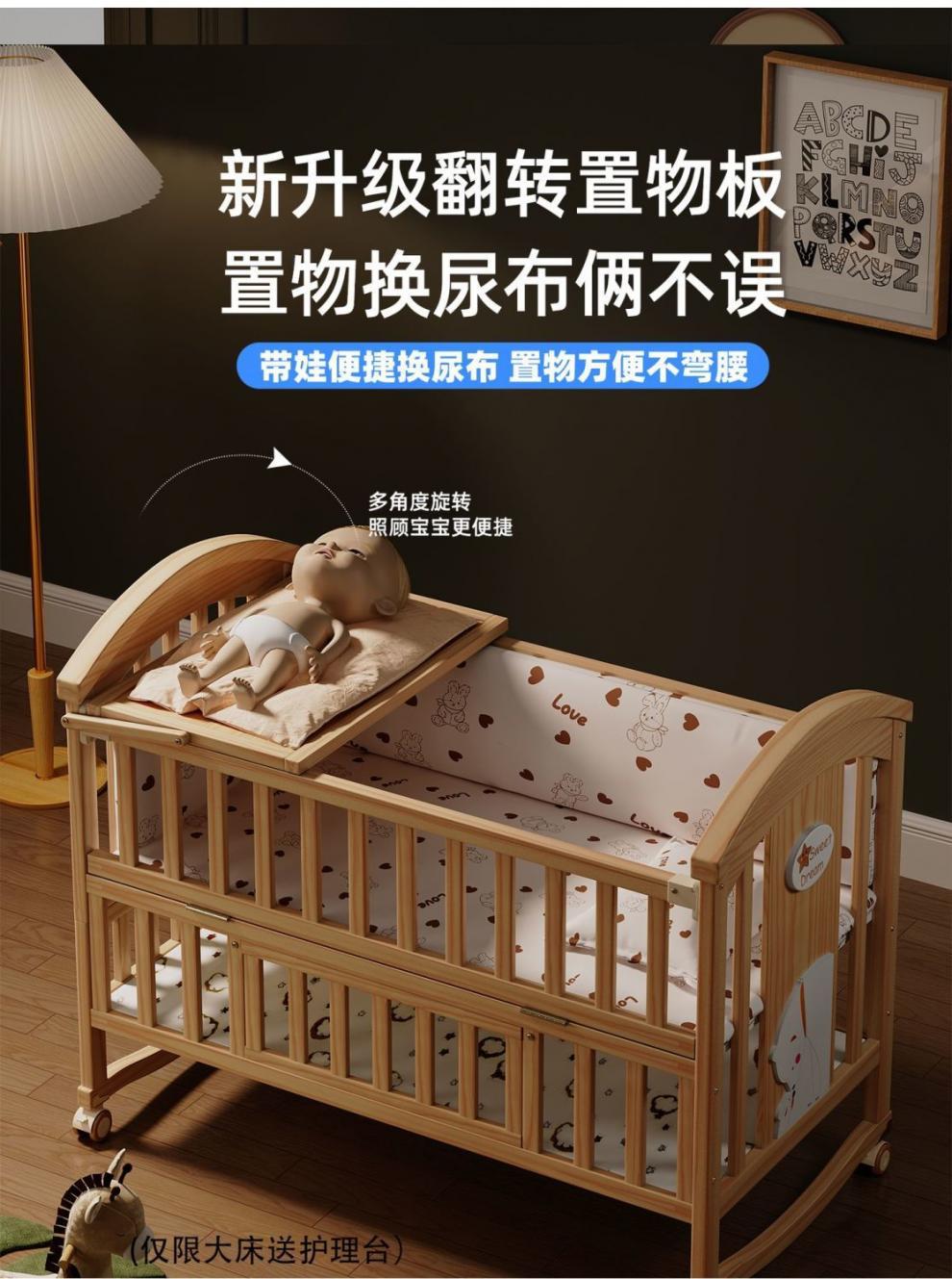 Jianmei 유아용 침대 단단한 나무 페인트가없는 요람 아기 침대 신생아 다기능 침대 어린이 접합 침대 이동식스토어 가기