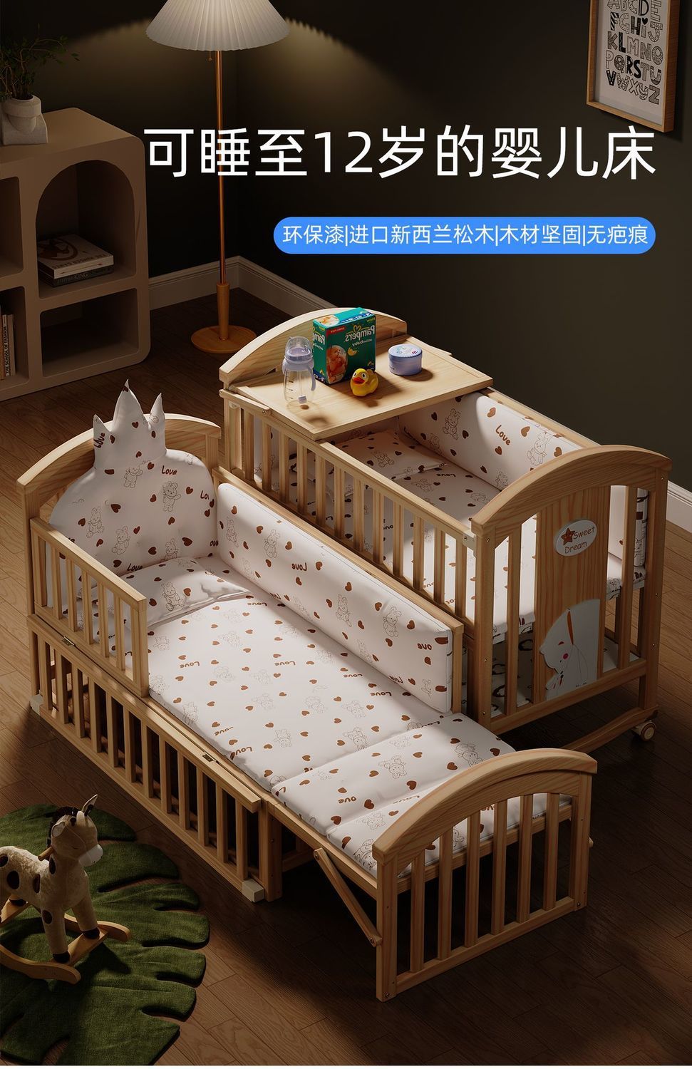• 침대+크라운 두꺼워진 5종 세트(아이보리 화이트 크라운에는 모기장 기저귀 교환대 포함)