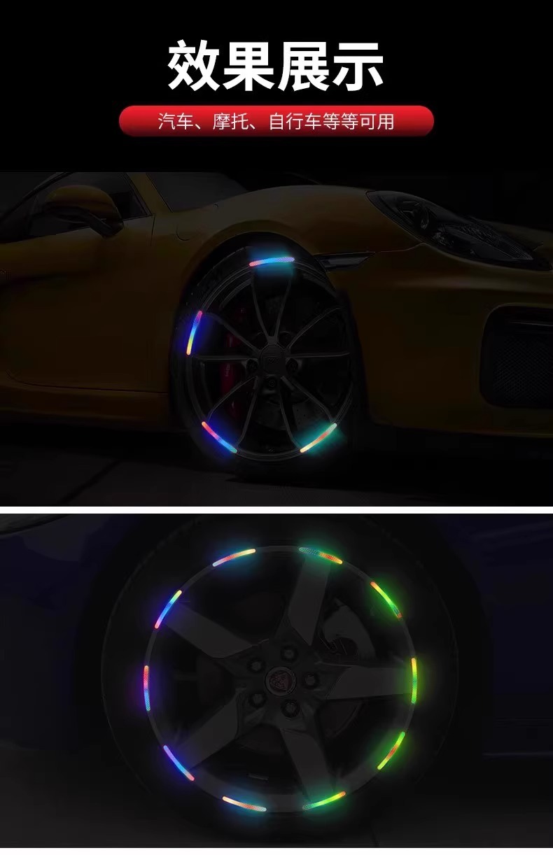 야간 반사 스트립 휠 허브 반사 스티커 전기 어린이 자전거 균형 자동차 자체 접착 경고 스티커 휠 장식