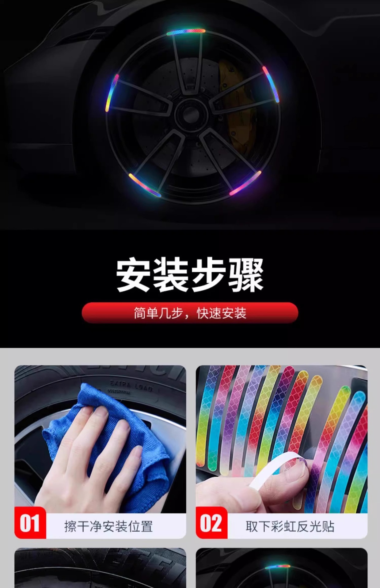 야간 반사 스트립 휠 허브 반사 스티커 전기 어린이 자전거 균형 자동차 자체 접착 경고 스티커 휠 장식스토어 가기