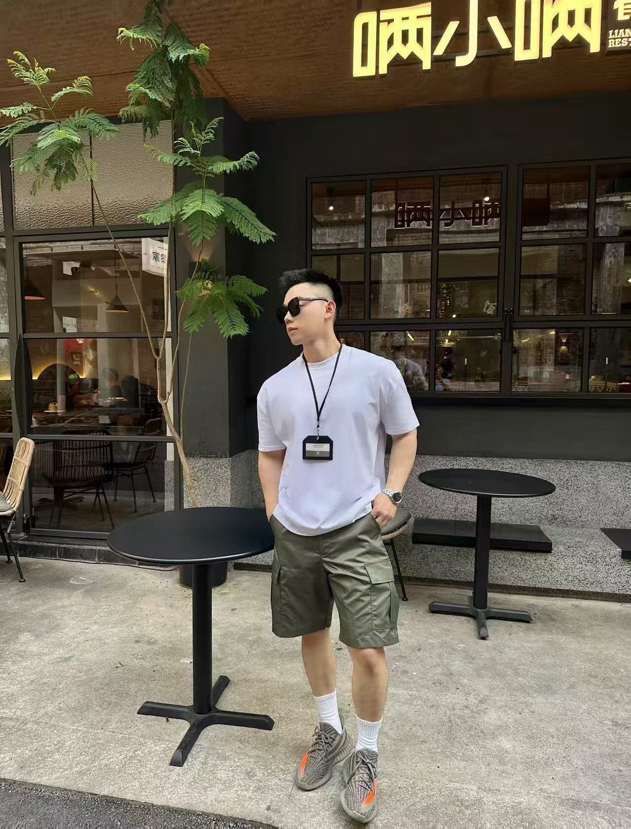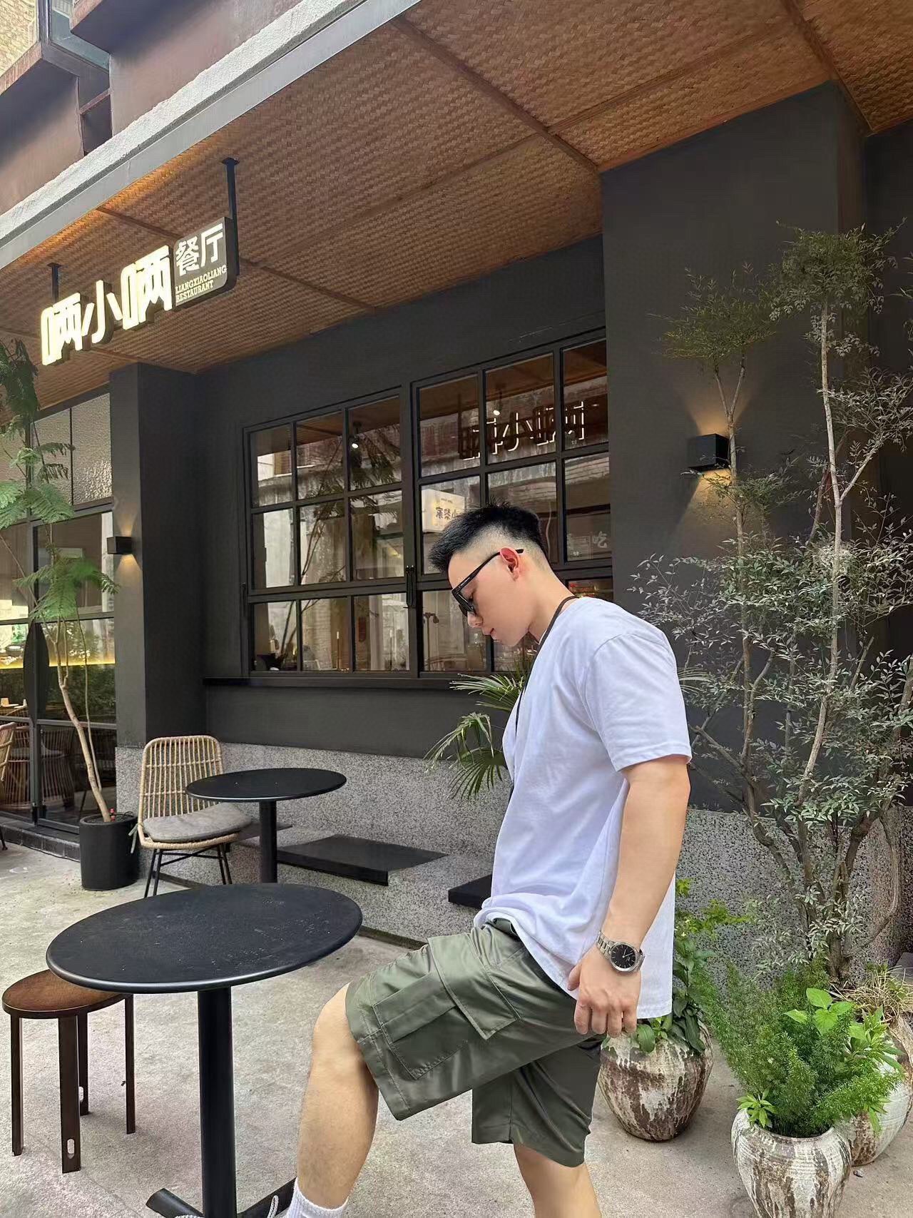 소스 제조업체 여름 삼각형 로고 나일론 더블 포켓 카고 반바지 남성과 여성 다용도 캐주얼 루즈 스트레이트 팬츠스토어 가기