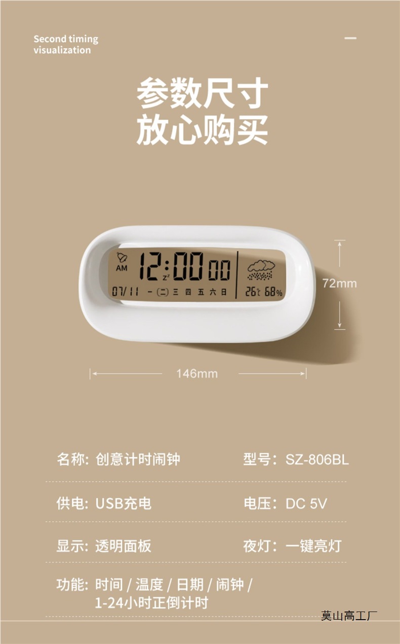 • 야간 조명이 포함된 충전 모델 - 흰색 [알람 + 온도 및 습도 + 양]