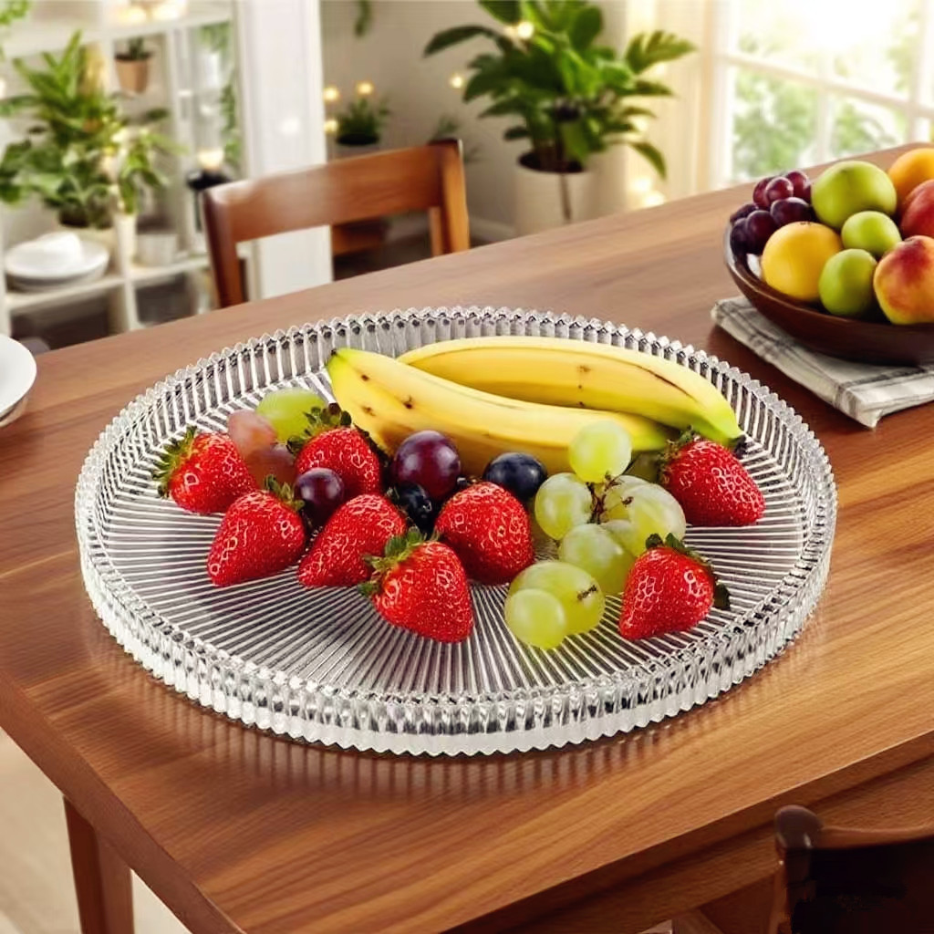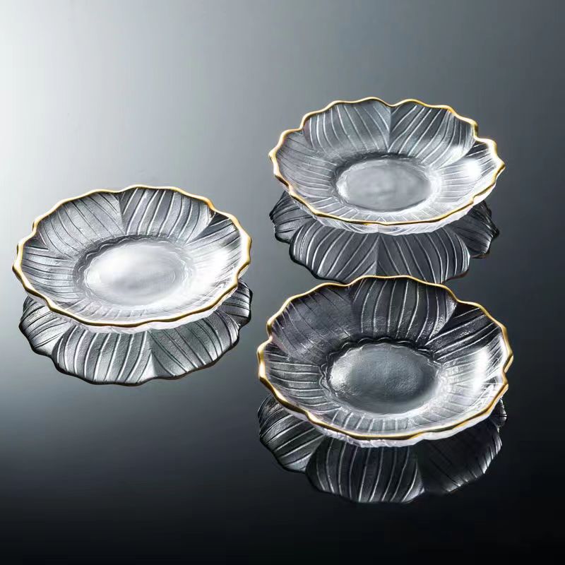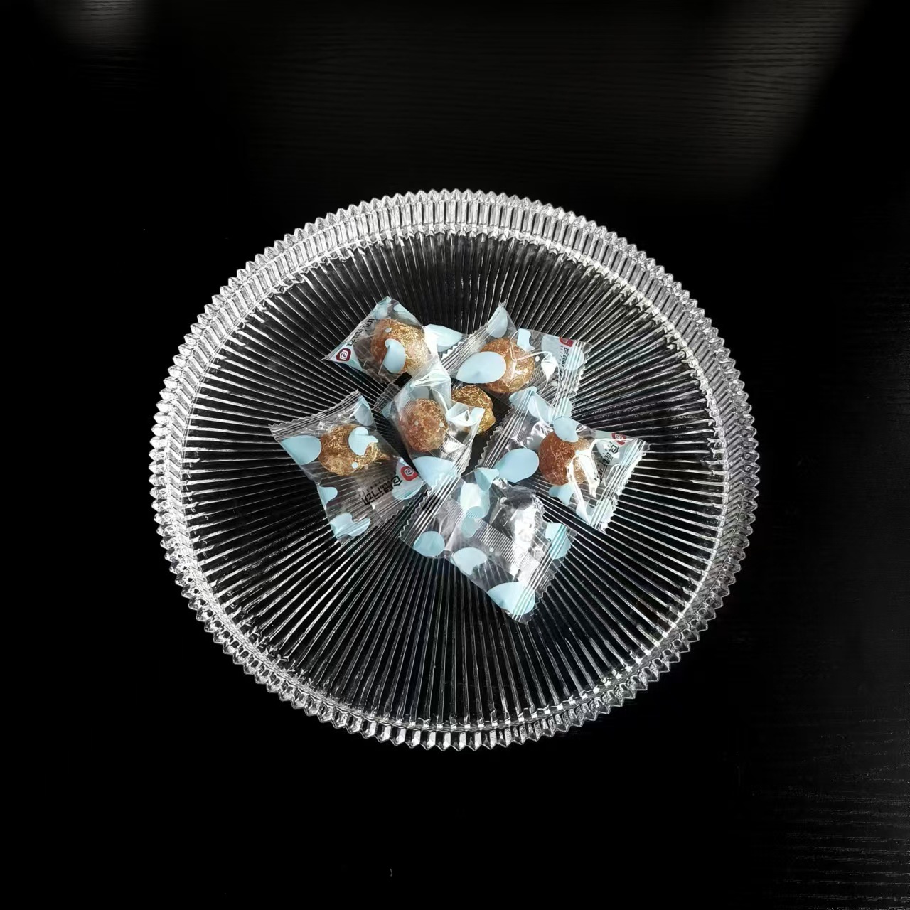 일본식 크리스탈 유리 과일 접시 원형 케이크 타워 접시 가정용 트레이 디저트 접시 바 물컵 접시 도매 차 접시