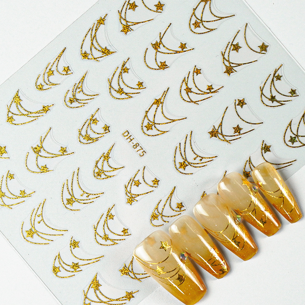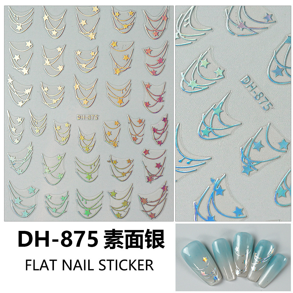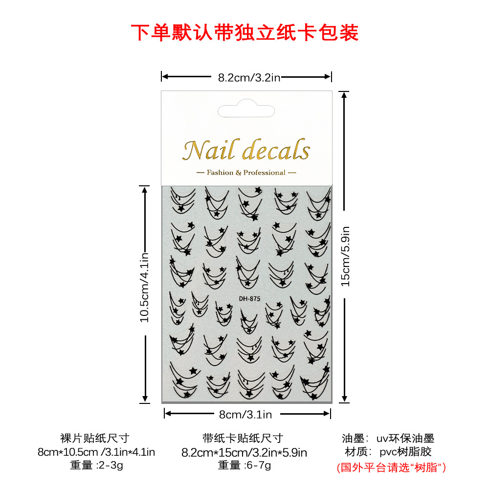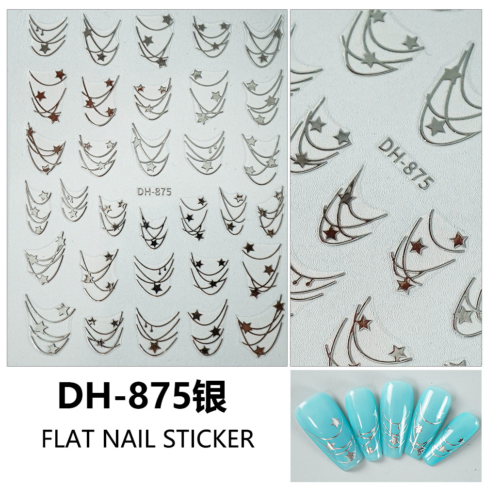 Redanco 새로운 3D 평면 인기 네일 아트 스티커 diy 프랑스 다섯개 별 네일 데칼 DH-875스토어 가기