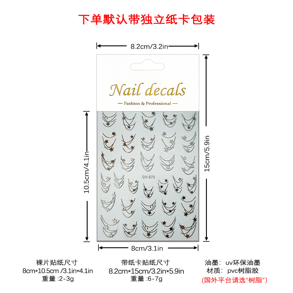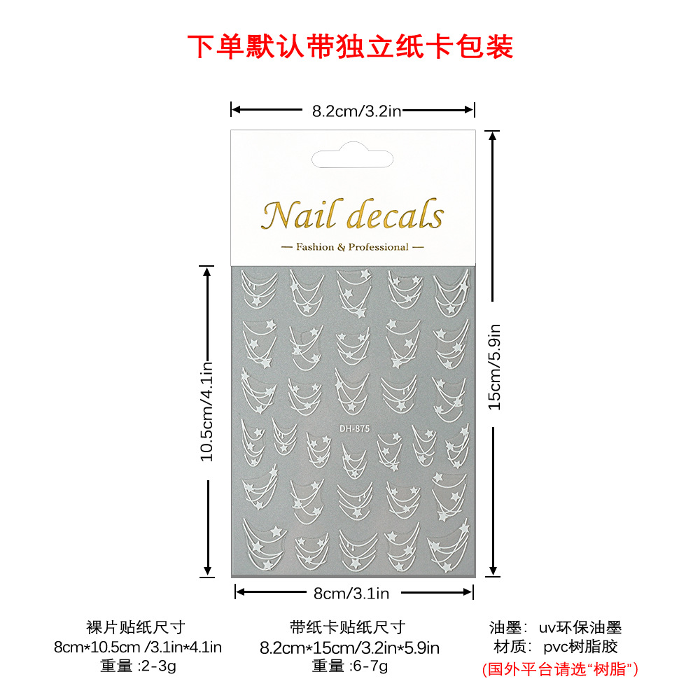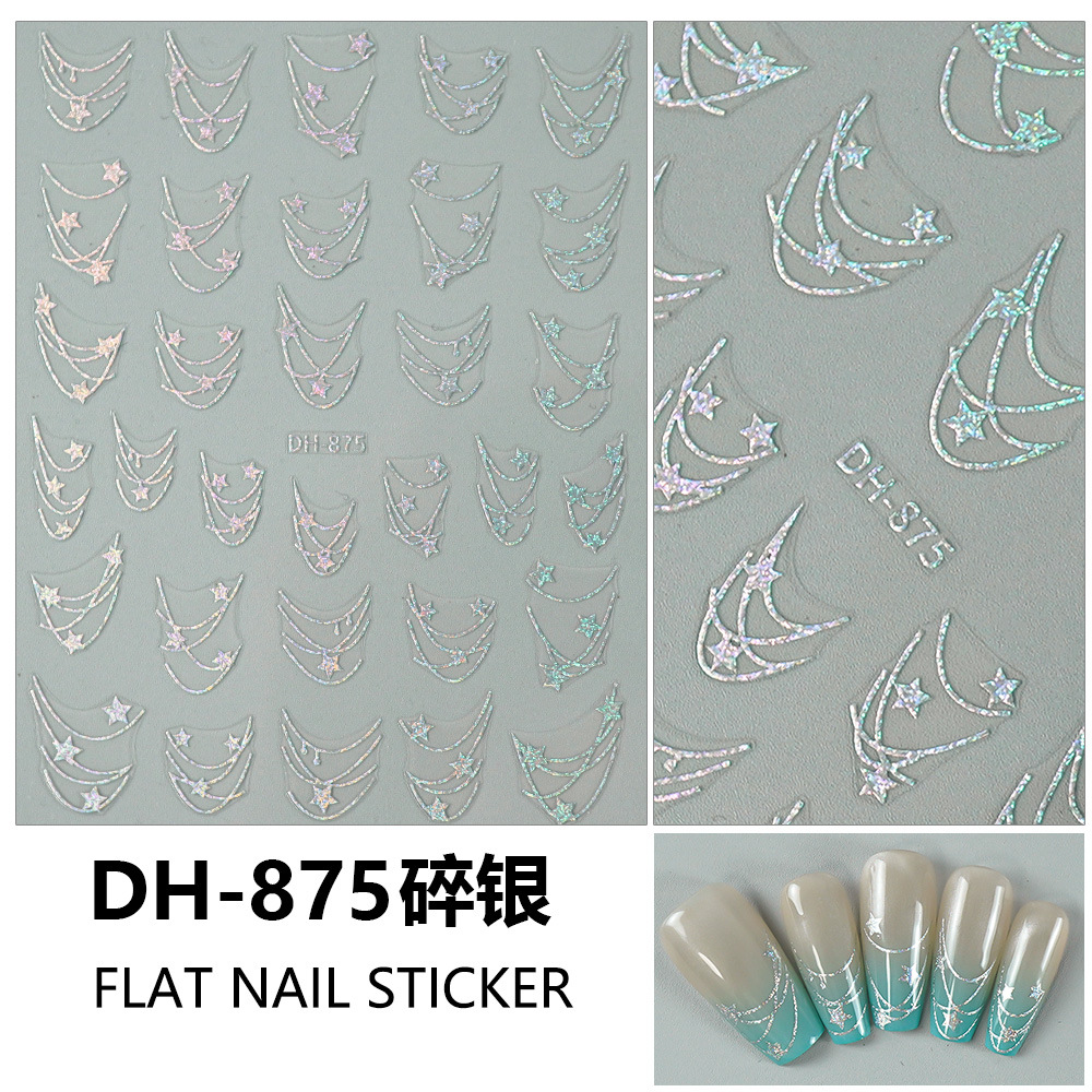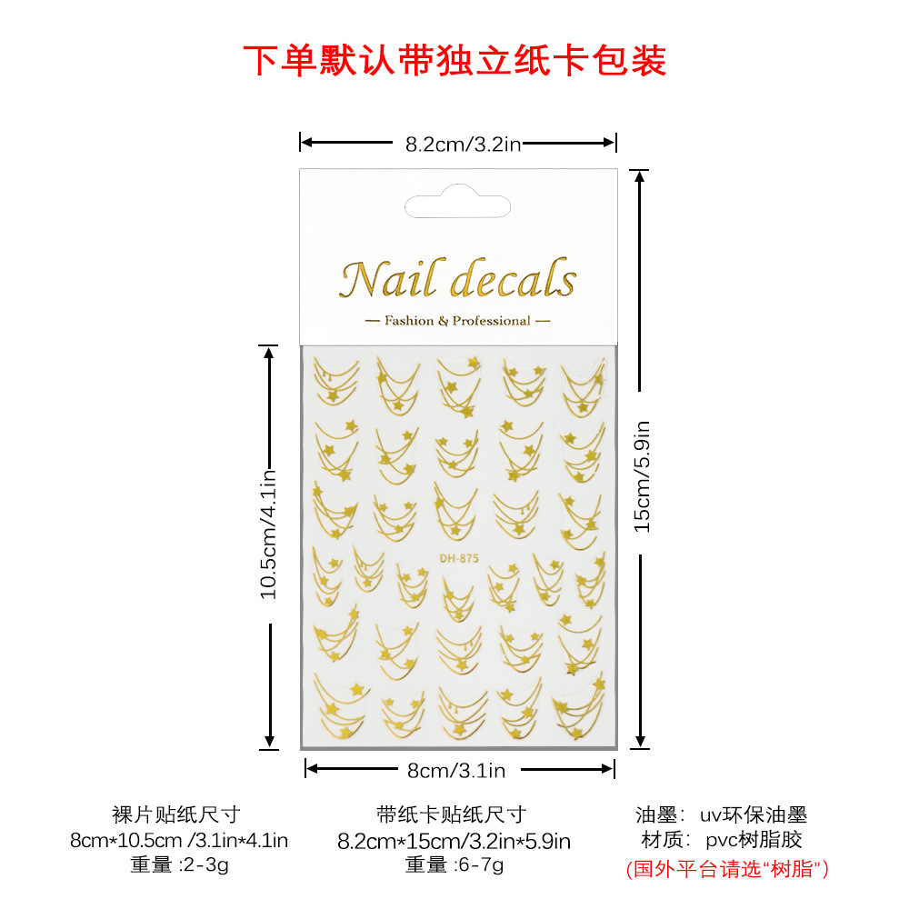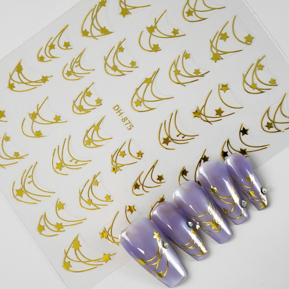 Redanco 새로운 3D 평면 인기 네일 아트 스티커 diy 프랑스 다섯개 별 네일 데칼 DH-875스토어 가기