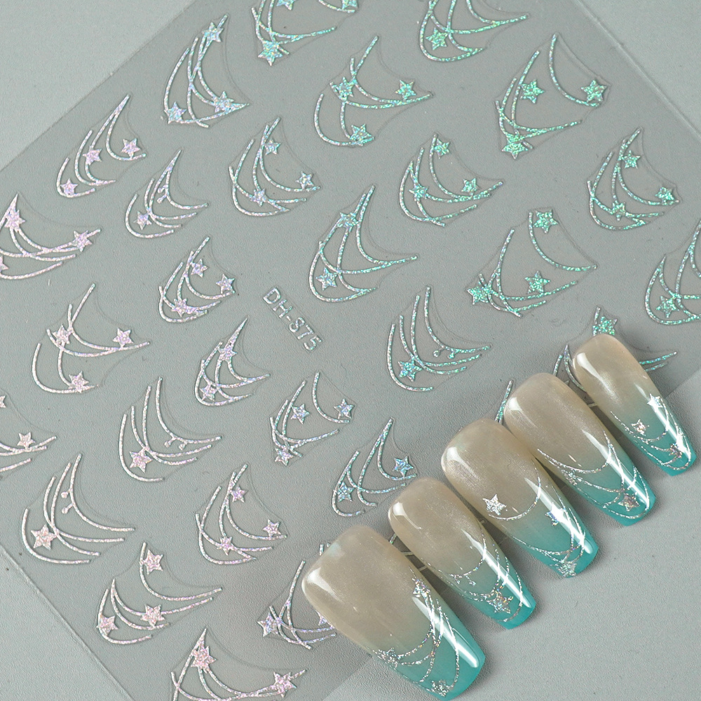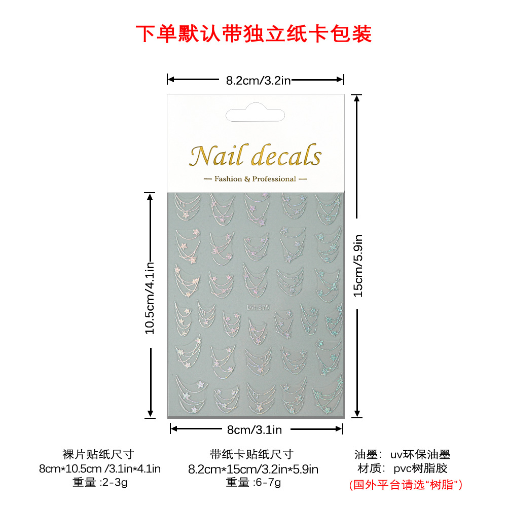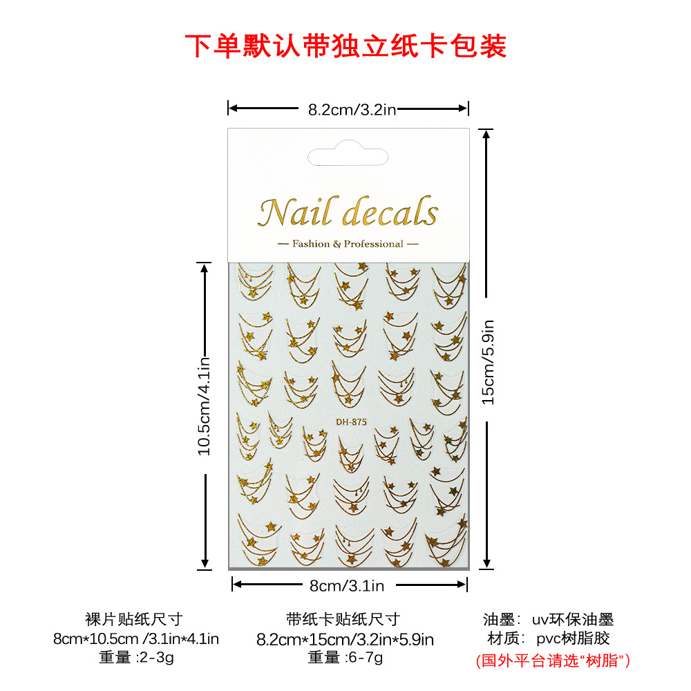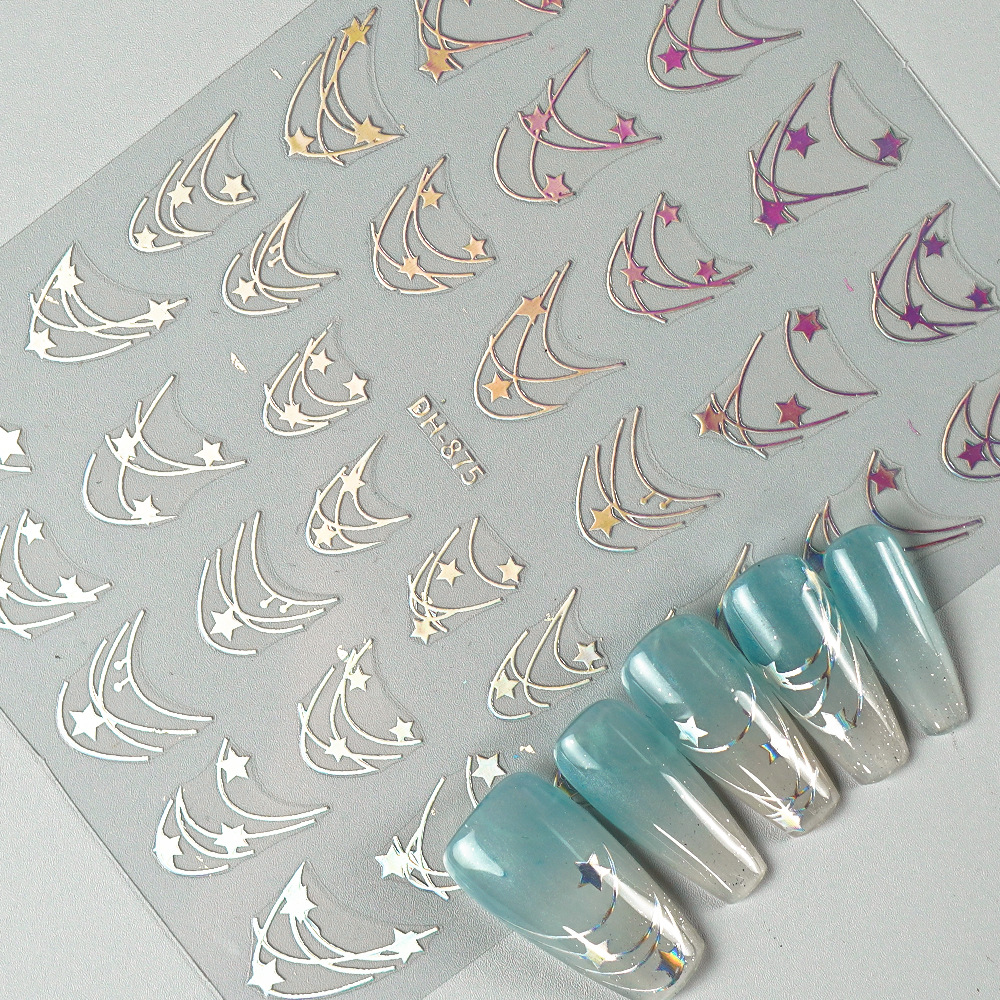 Redanco 새로운 3D 평면 인기 네일 아트 스티커 diy 프랑스 다섯개 별 네일 데칼 DH-875스토어 가기