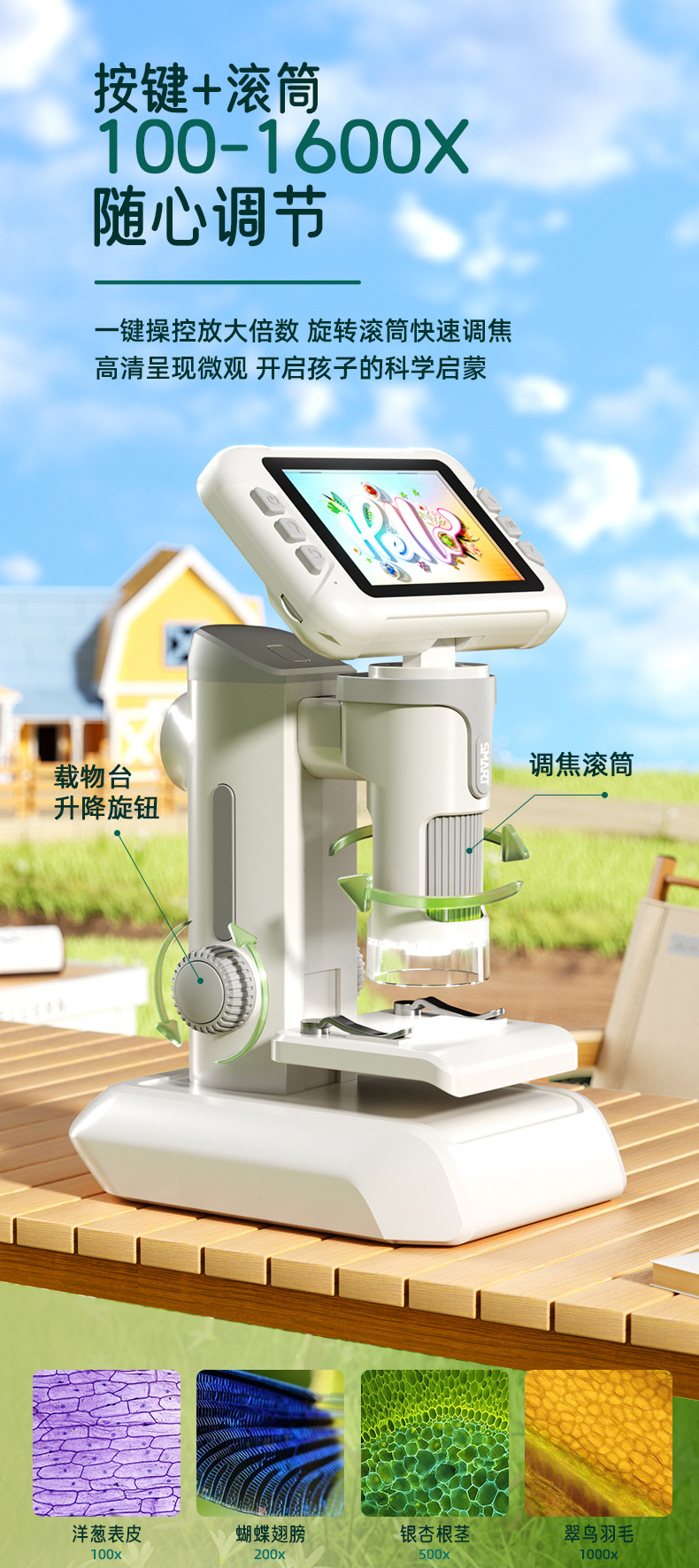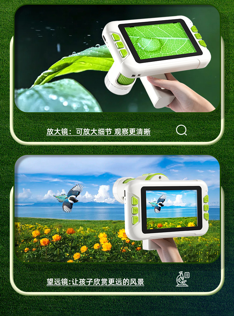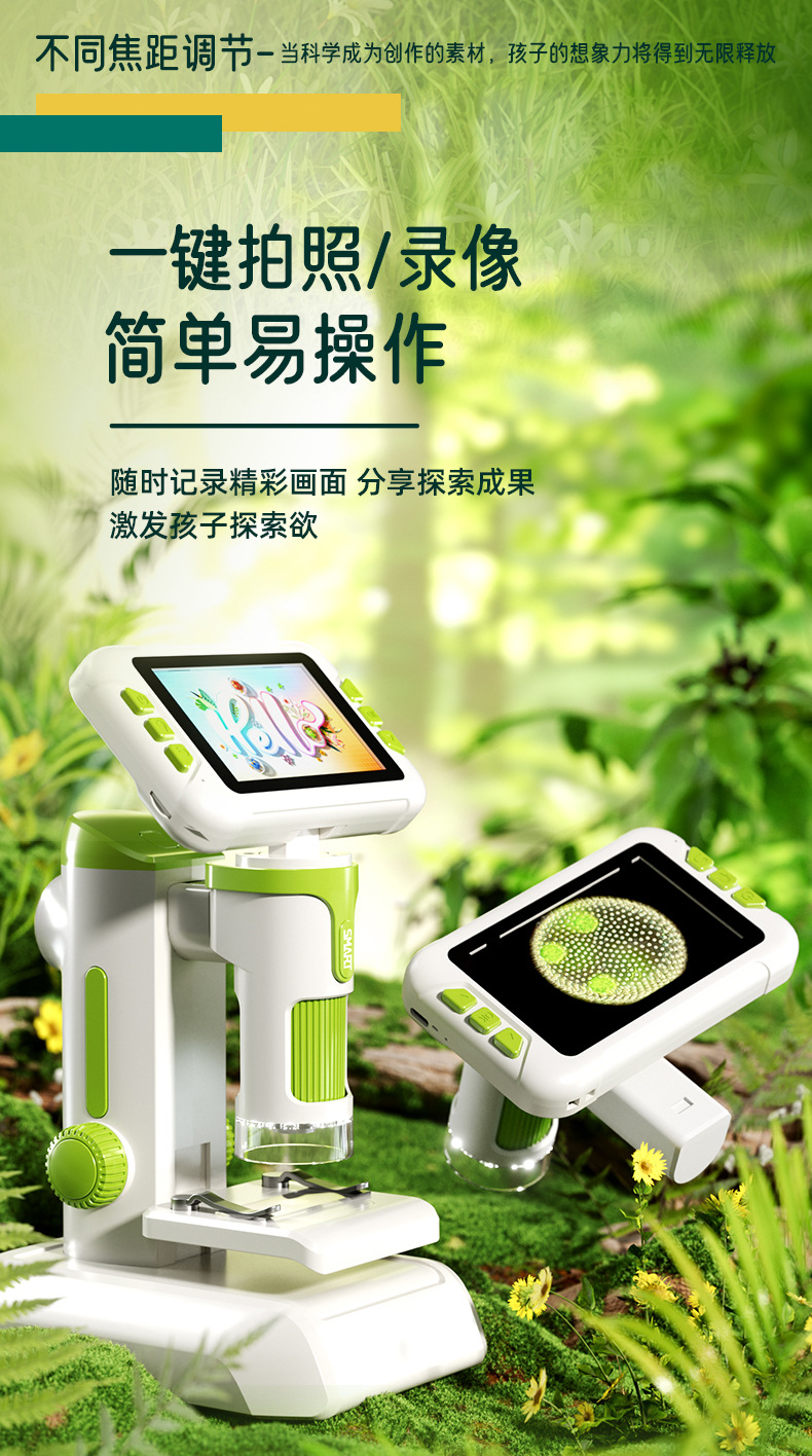 *Name: 4-inch high-definition large-screen children's digital microscope (handheld, desktop, hanging neck three-in-one)