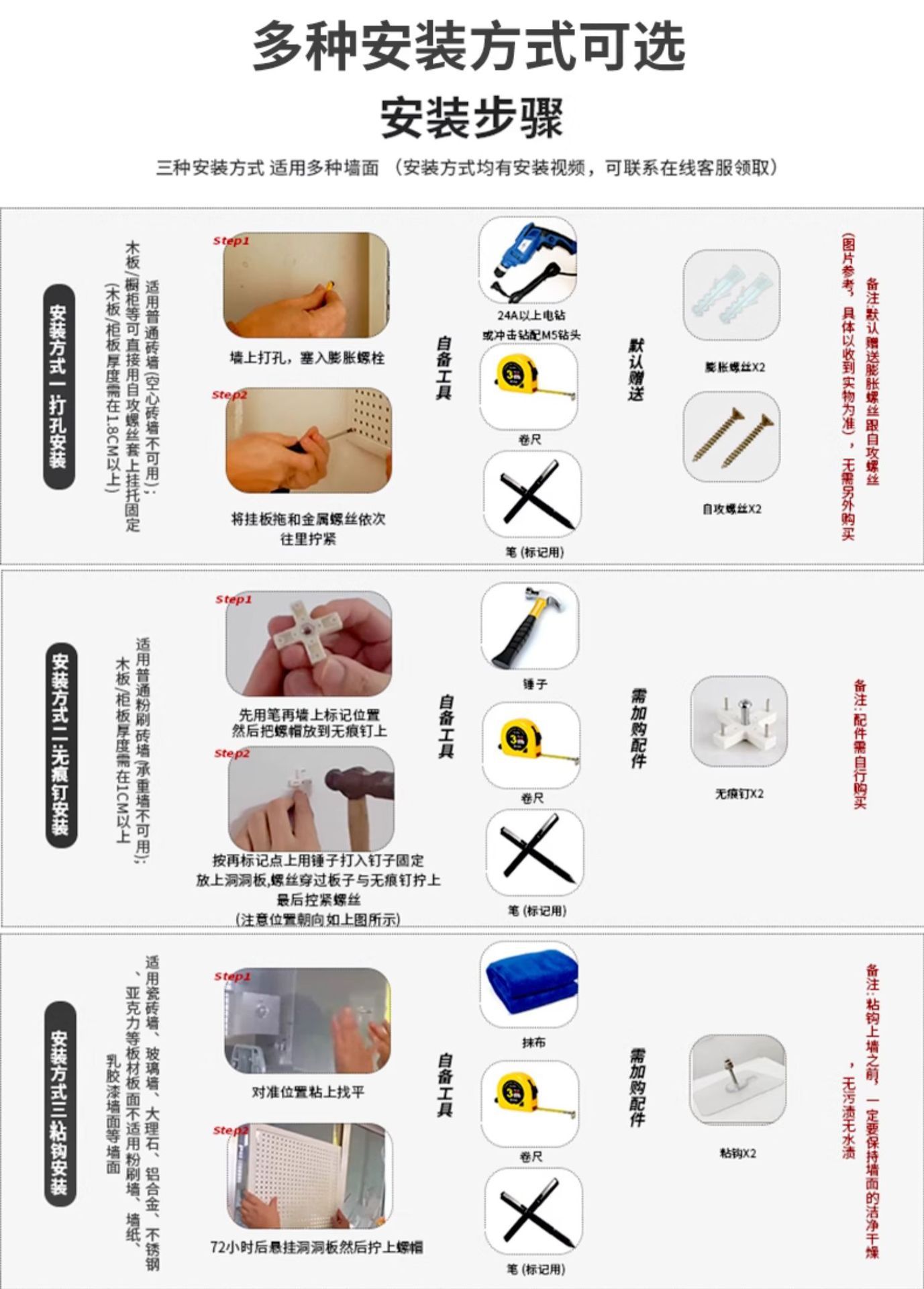 • [테두리가 있는 두꺼운 버전] 50×30cm-흰색★무료 금속 이중 후크