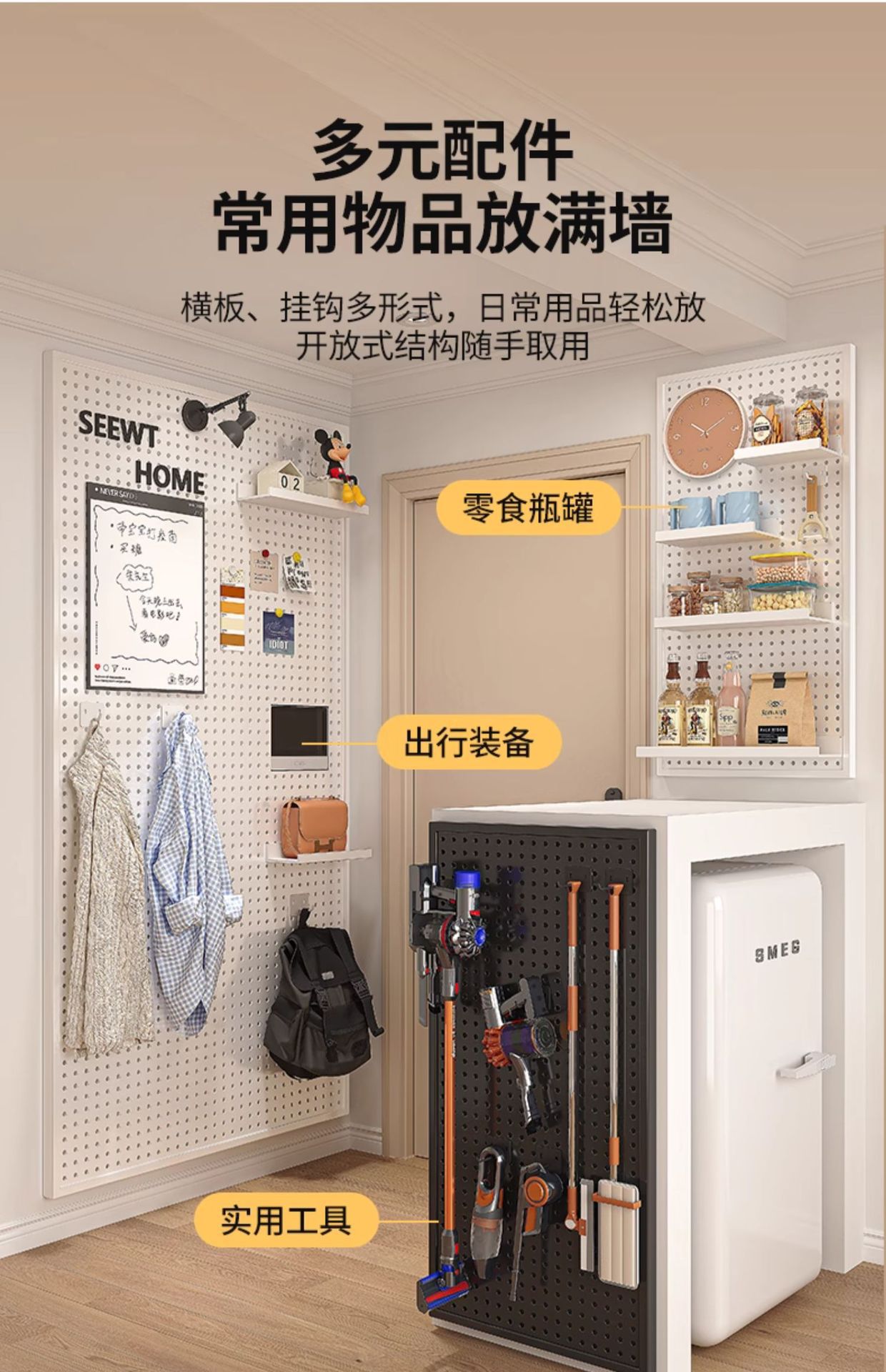 둥근 구멍이 있는 벽걸이형 선반, 스테인레스 스틸 디스플레이 보관 하드웨어 도구 범용 걸이형 벽걸이