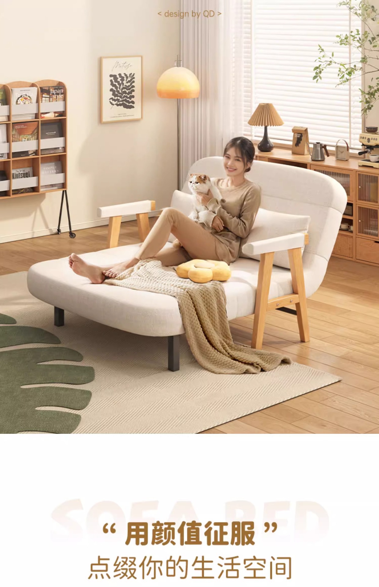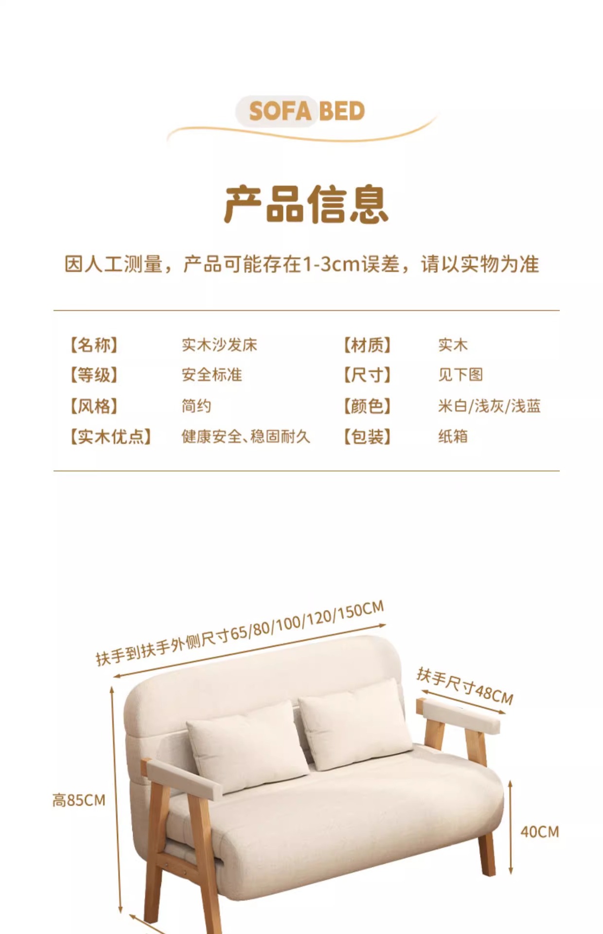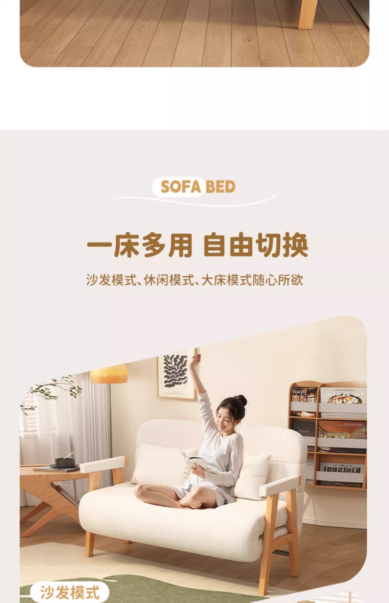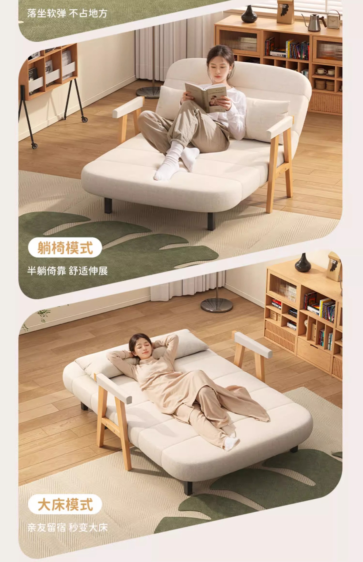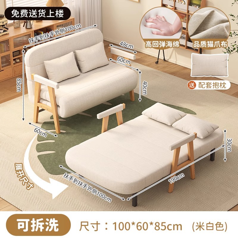 소형 가정용 원목 접이식 소파 베드, 일체형 이중 목적, 간단한 거실, 홈 싱글 다기능 침대스토어 가기