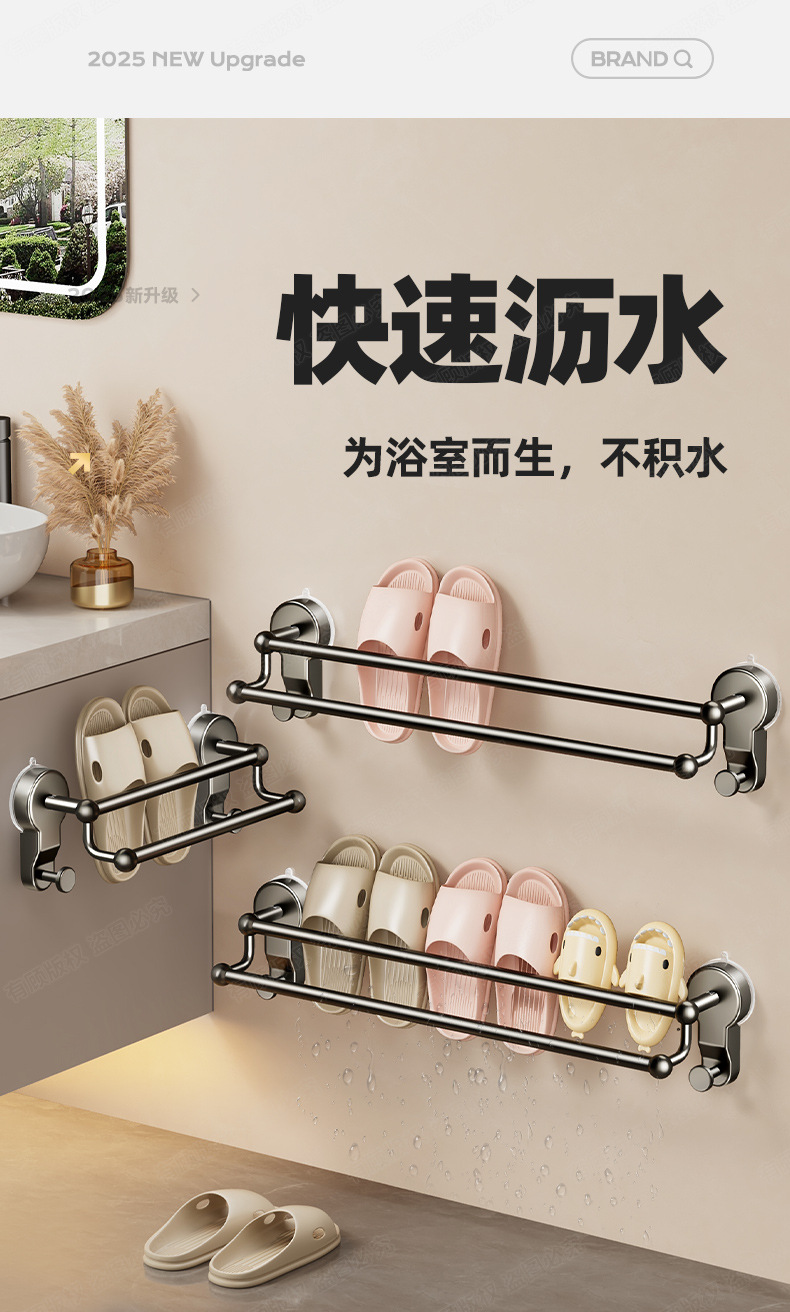 흡입 컵 다기능 슬리퍼 랙 욕실 펀치없는 욕실 보관 랙 신발 배수 보관 화장실 벽걸이 랙