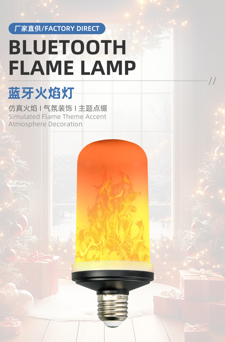맞춤형 국경 간 블루투스 불꽃 램프 시뮬레이션 동적 불꽃 램프 크리스마스 분위기 램프 유령의 집 검은 배경 횃불 램프