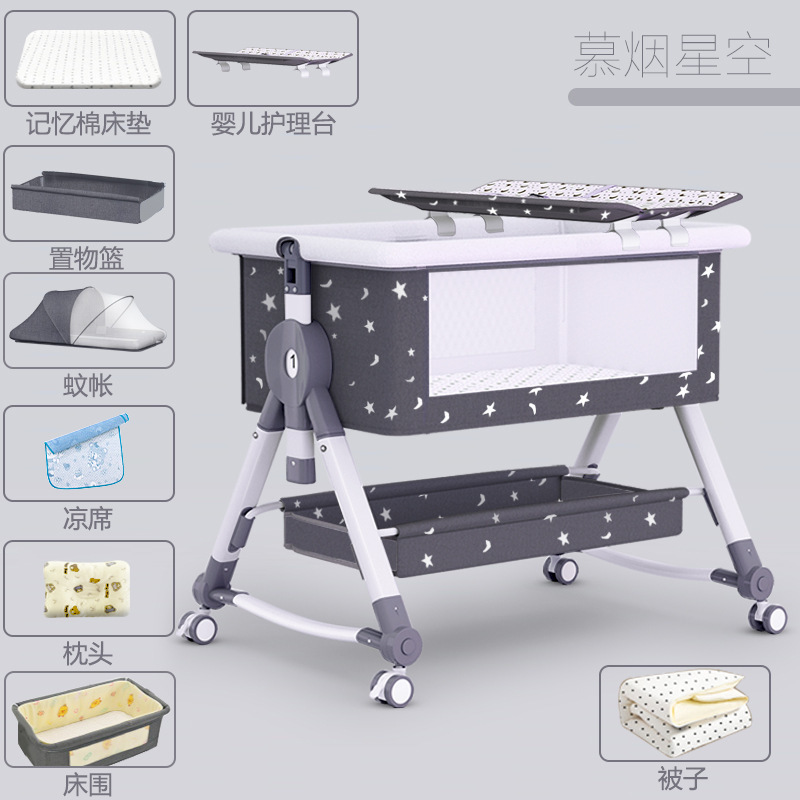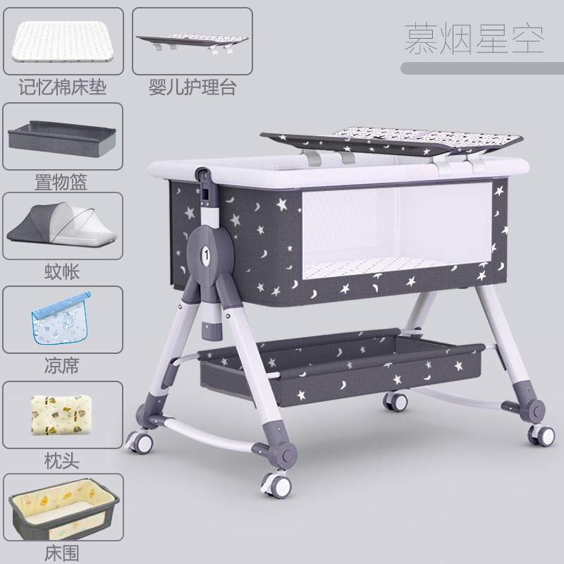 새로운 아기 침대 신생아 침대 접합 대형 침대 아기 요람 침대 어린이 침대 이동식 접이식 어린이 침대