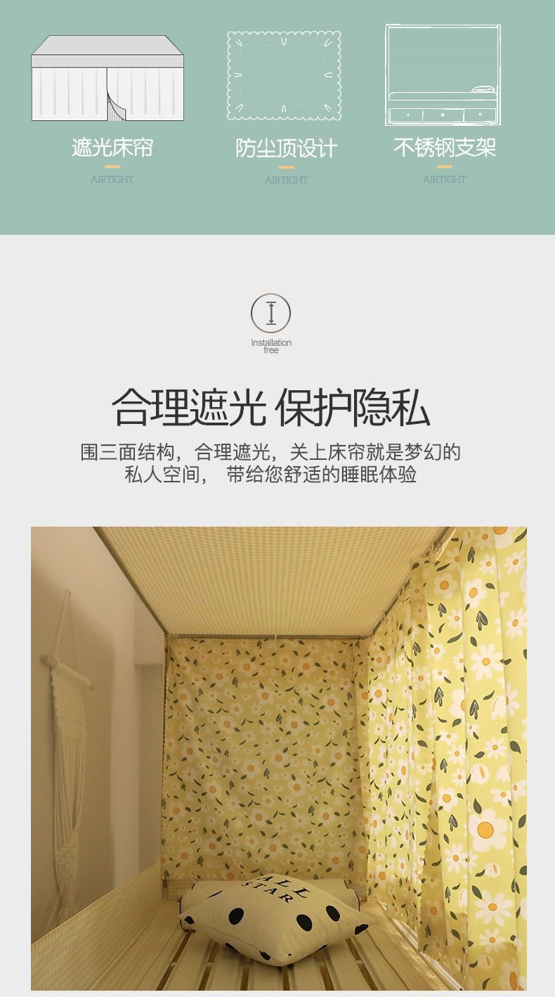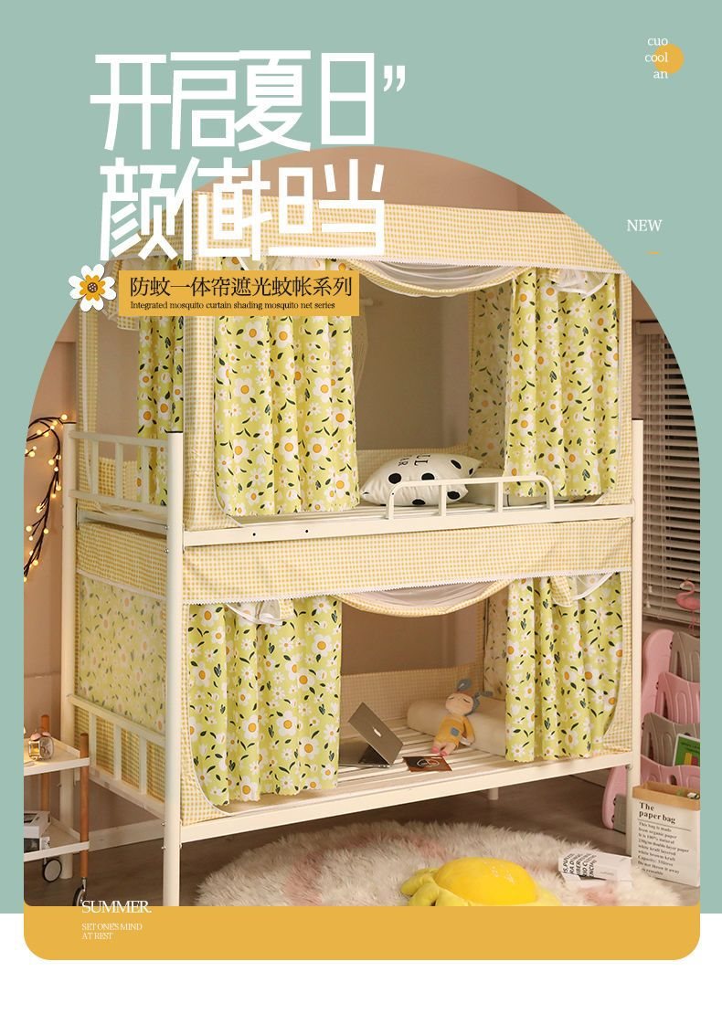 기숙사 학생 꽃무늬 침대 커튼 모기장 차광 일체형 지퍼 완전 밀폐형 이층 침대 여성 기숙사(스탠드 포함)스토어 가기