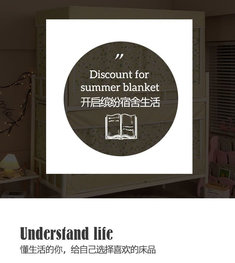 기숙사 학생 꽃무늬 침대 커튼 모기장 차광 일체형 지퍼 완전 밀폐형 이층 침대 여성 기숙사(스탠드 포함)