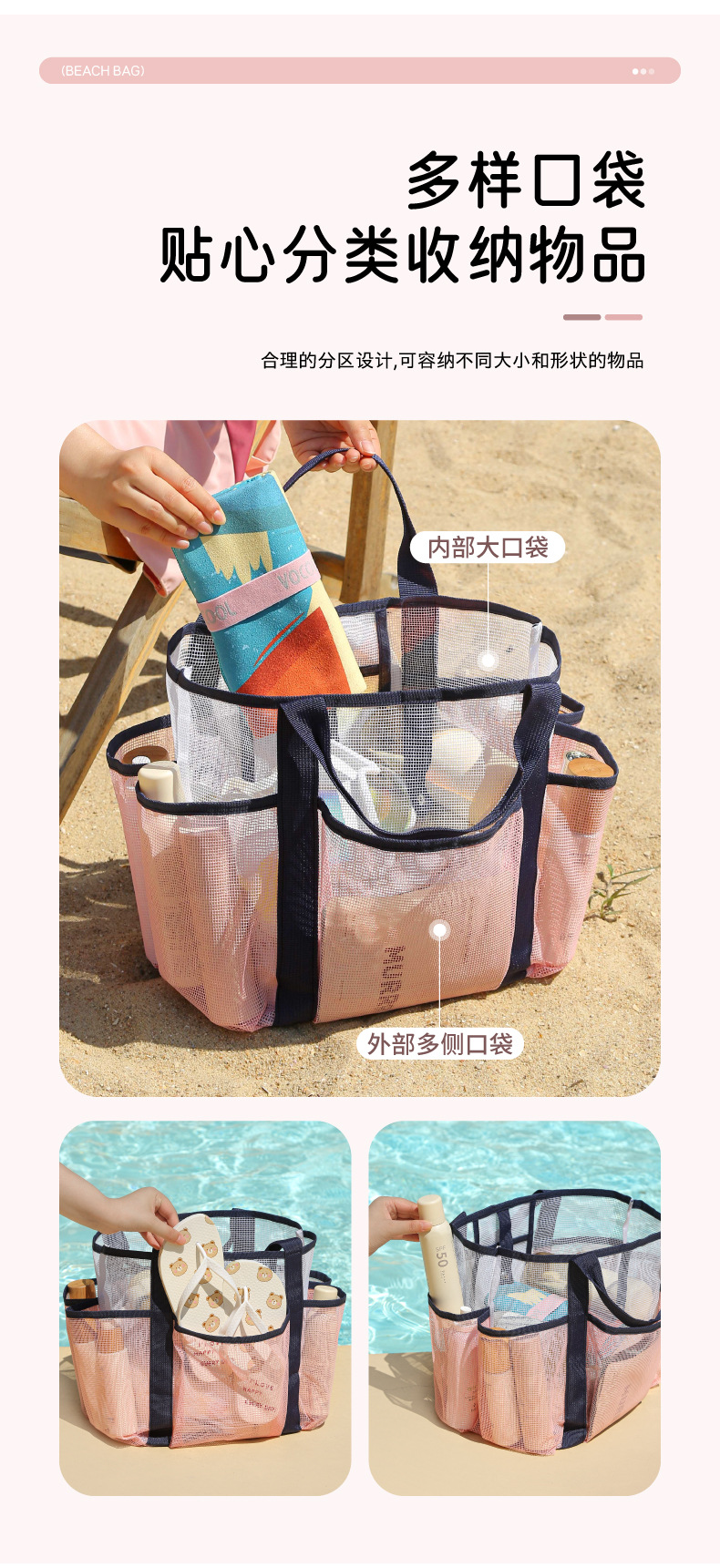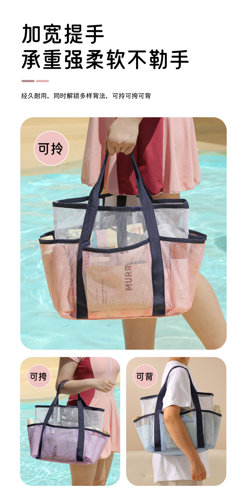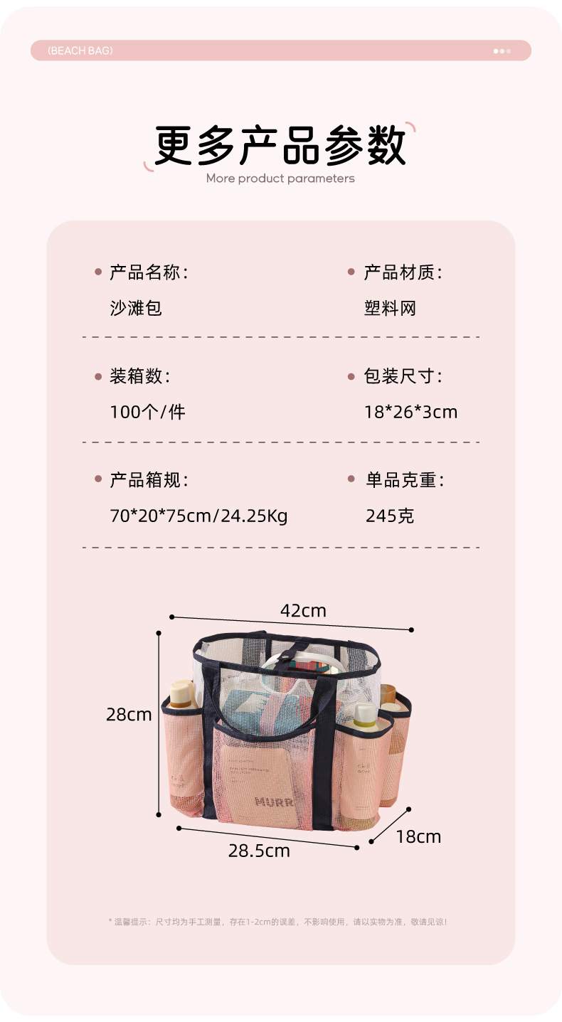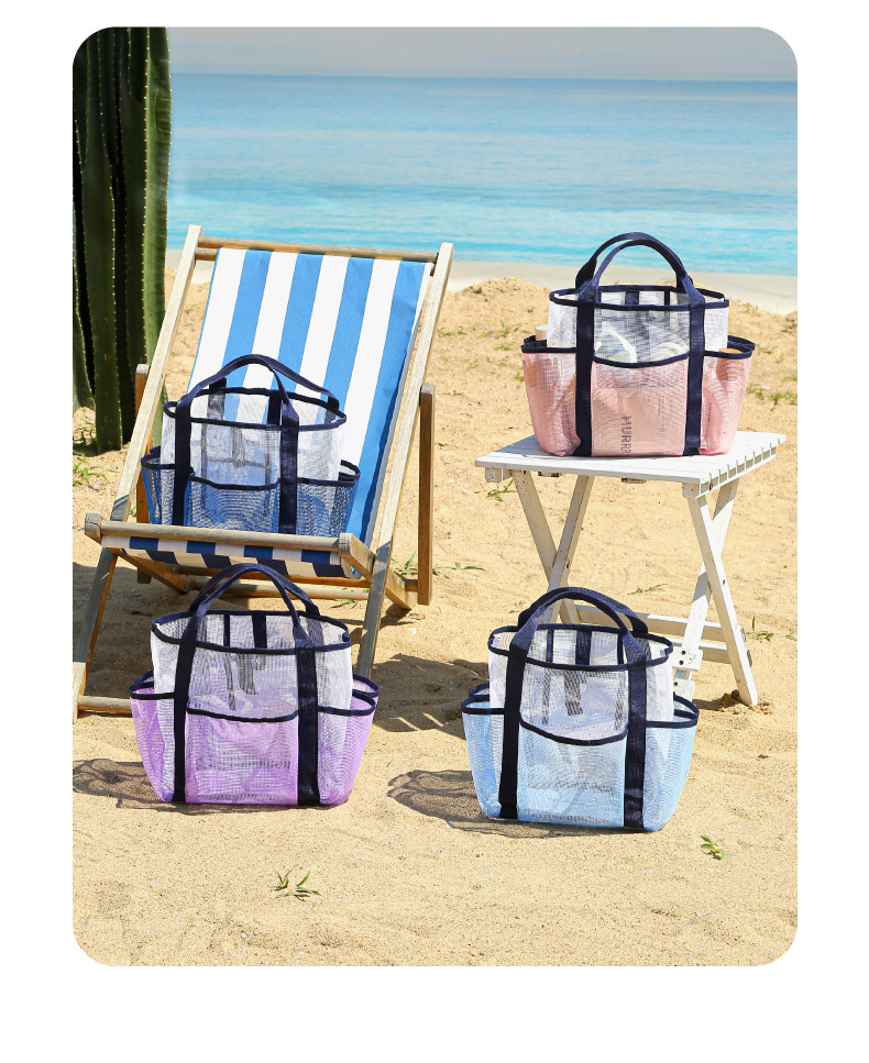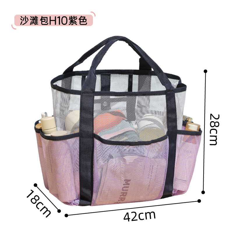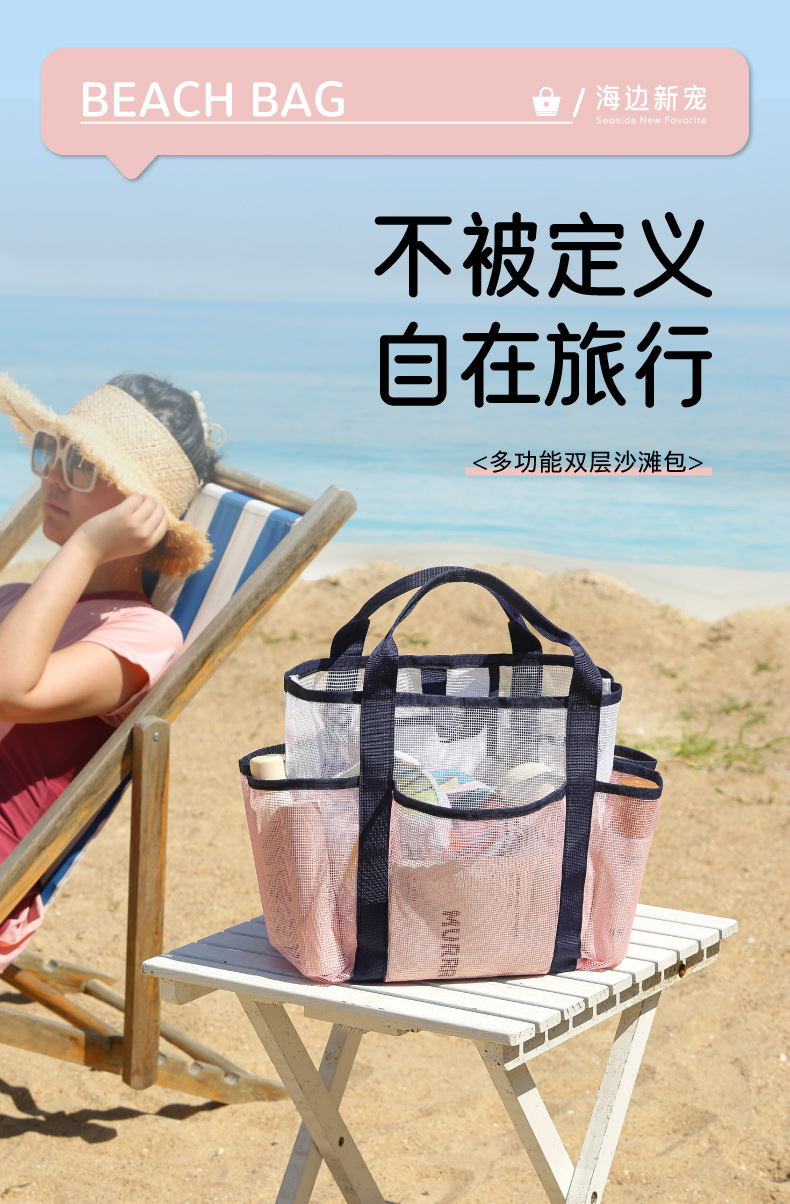 새로운 메쉬 멀티 포켓 비치 가방 해변 휴가 휴대용 다기능 세면 용품 가방 여행용 수납 가방