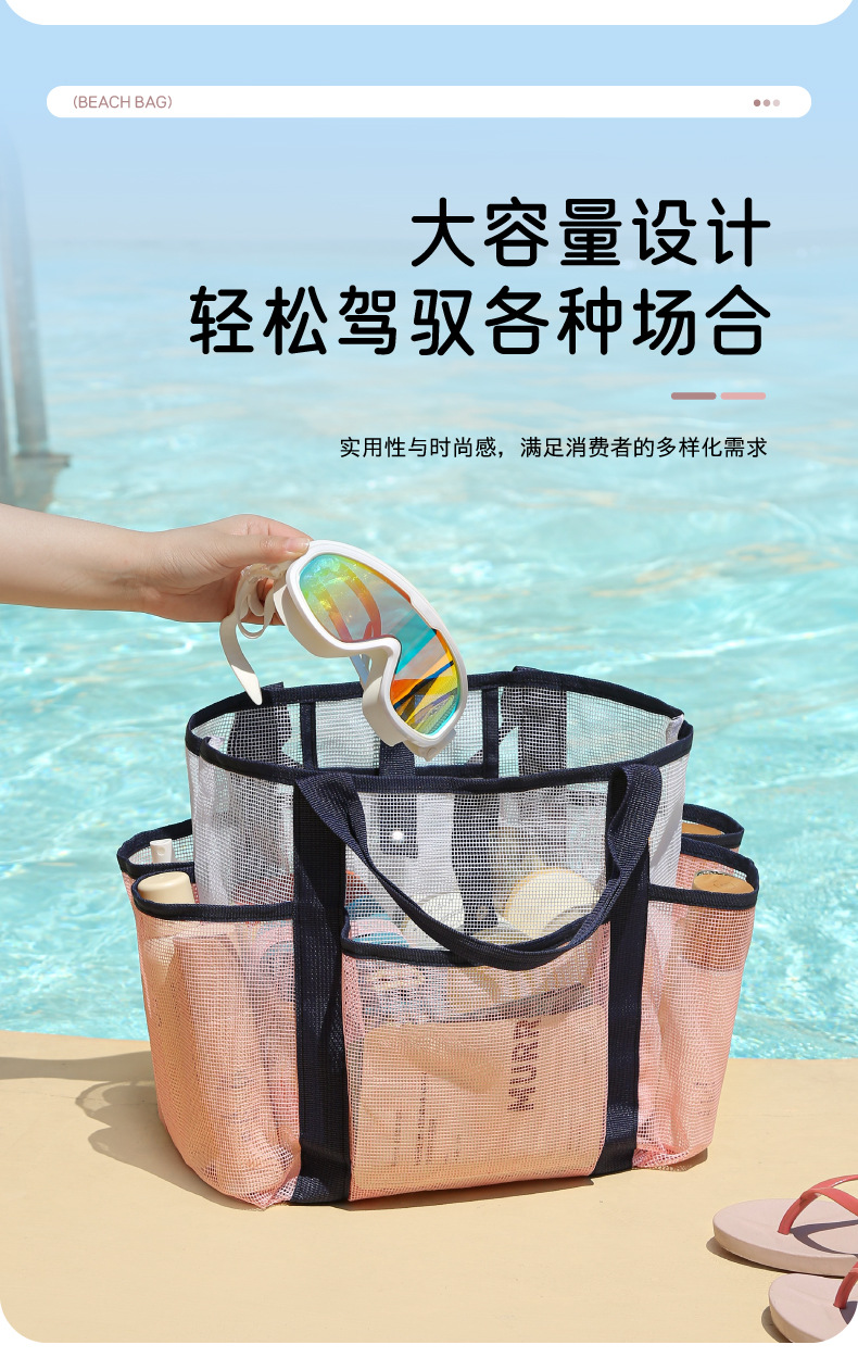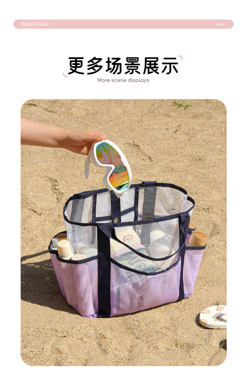새로운 메쉬 멀티 포켓 비치 가방 해변 휴가 휴대용 다기능 세면 용품 가방 여행용 수납 가방스토어 가기
