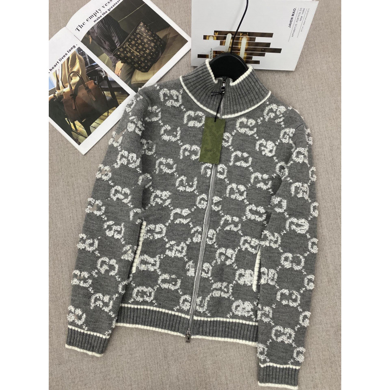 고급 버전 Nanyou G의 새로운 스타일 타월 자수 스탠드 칼라 지퍼 더블 G 풀 프린트 니트 울 가디건 여성용스토어 가기