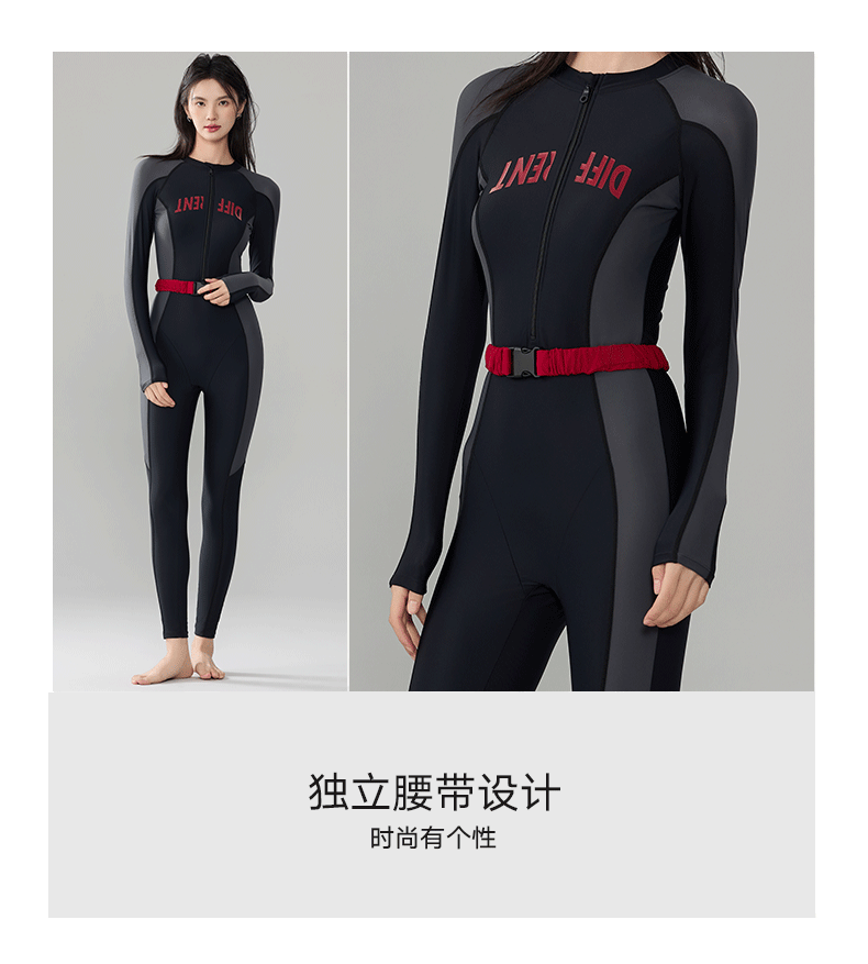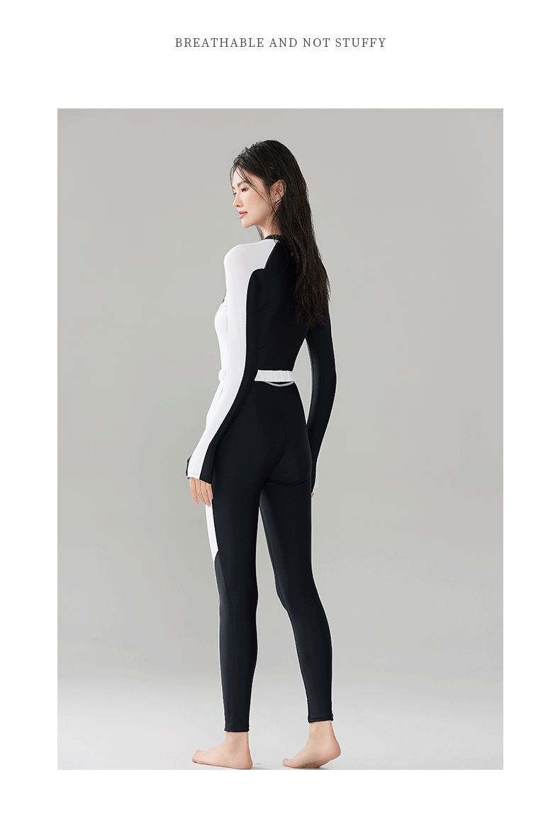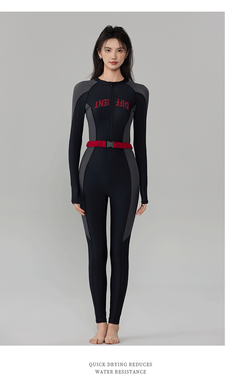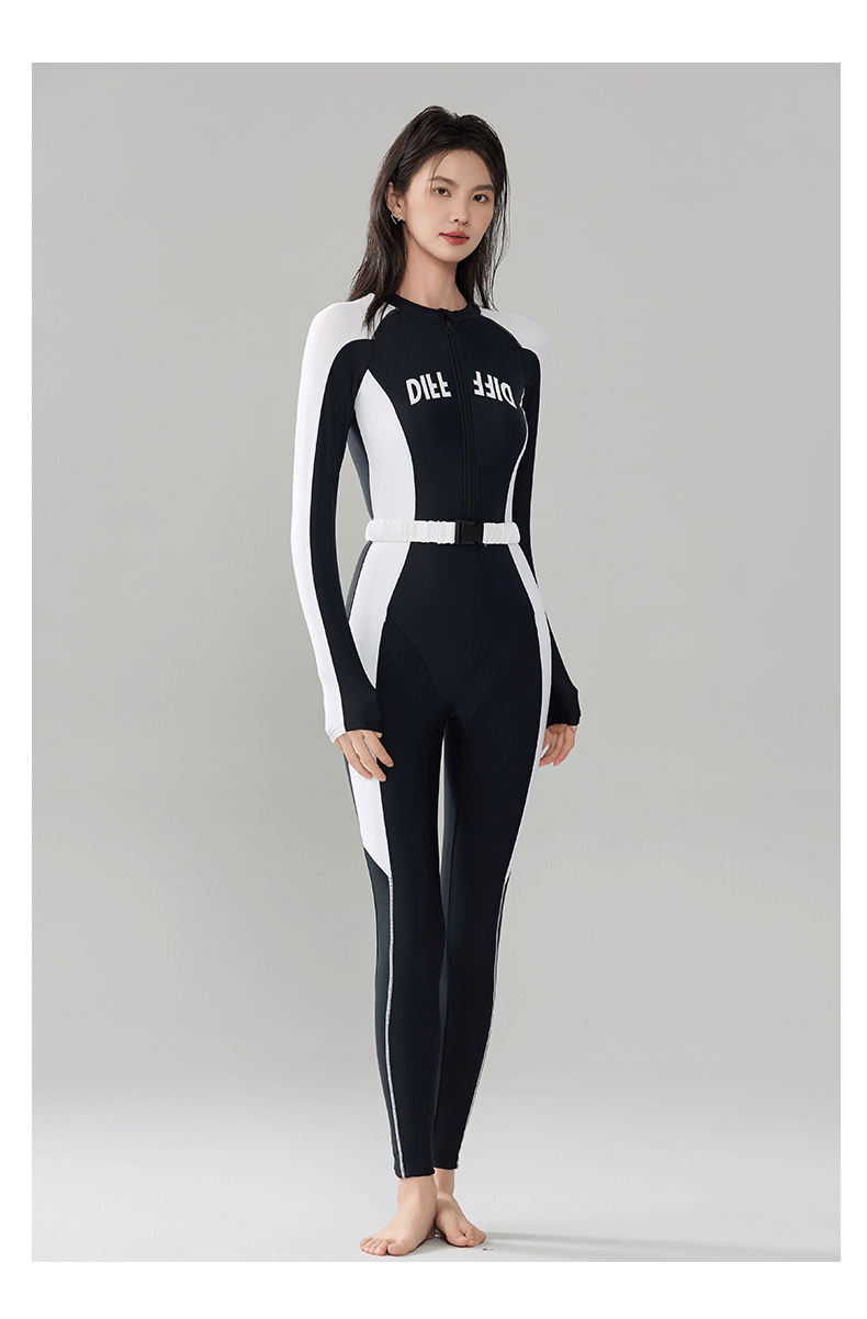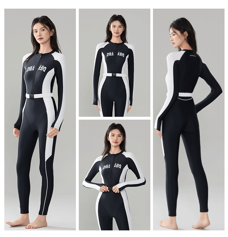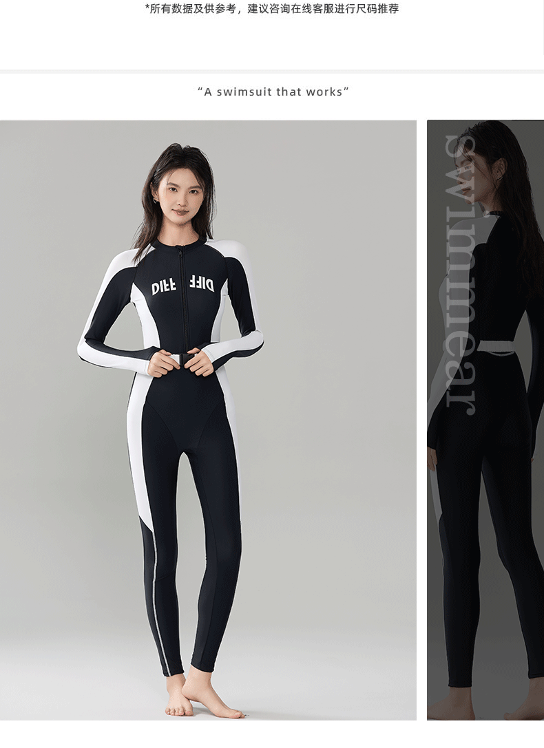 빅사이즈 원피스 수영복, 긴팔 긴바지 다이빙슈트, 슬림하고 단정한 스포츠 스노클링 서핑 수영복 원피스