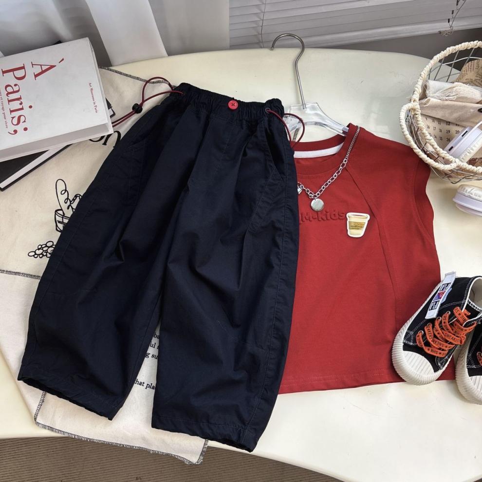 소년 여름 정장 2025 새로운 스타일 어린이 잘 생긴 유행 민소매 조끼 여름 얇은 모기 방지 바지스토어 가기