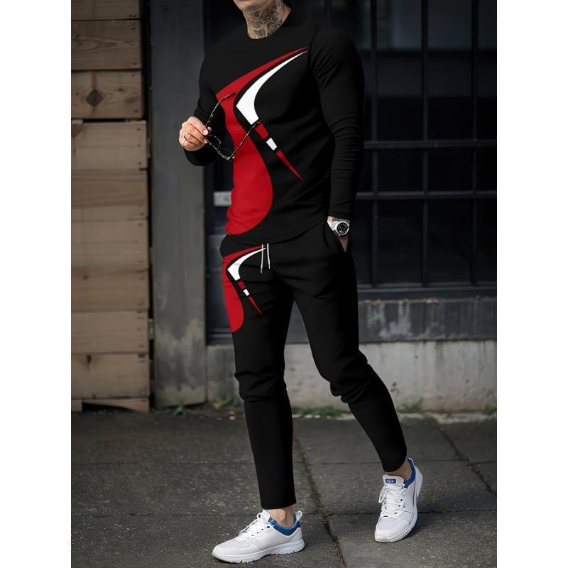 유럽과 미국의 대외 무역 캐주얼 스포츠 크로스보더 남성 운동복 프린트 슈트 temu AliExpress