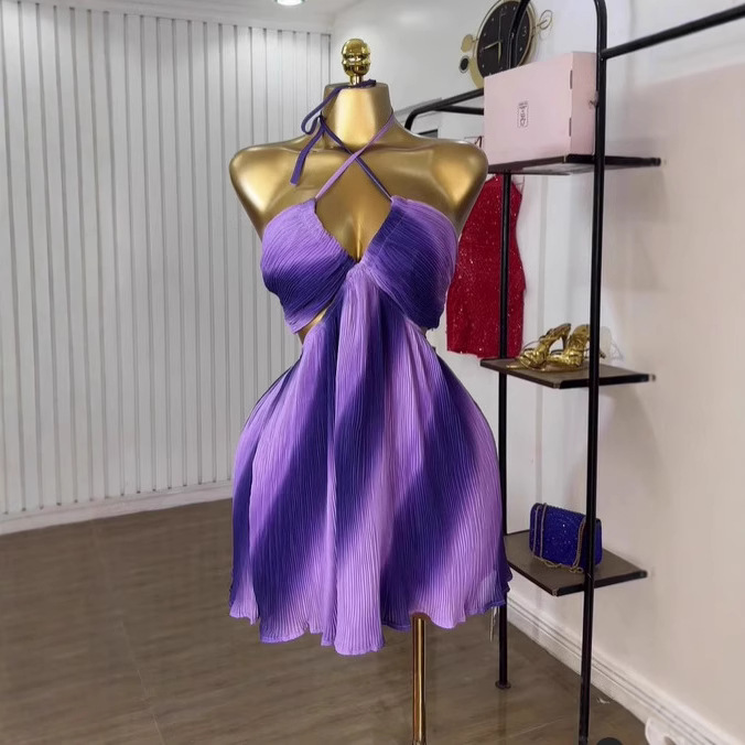 Spot 2025 새로운 여름 스타일 유럽과 미국의 국경 간 여성복 달콤하고 신선한 서스펜더 튜브 탑 레이스 업 플리츠 드레스