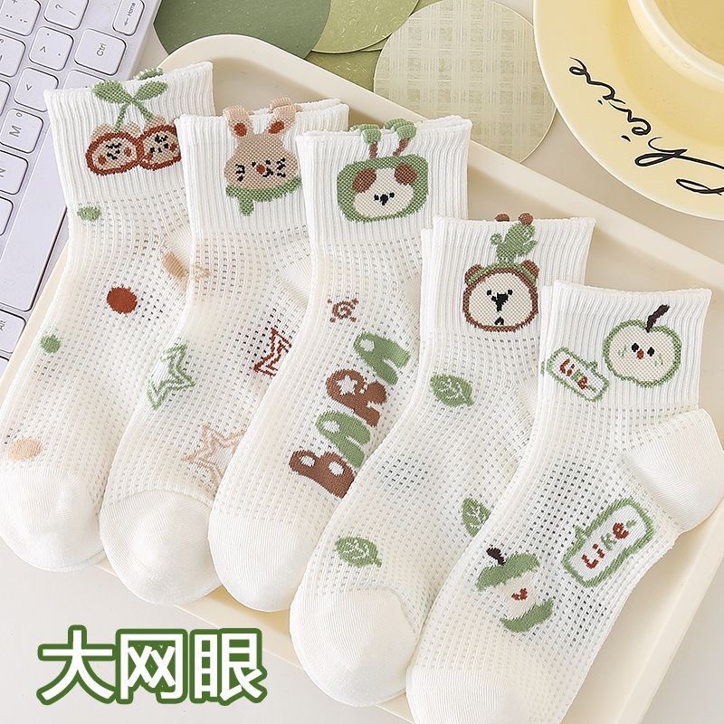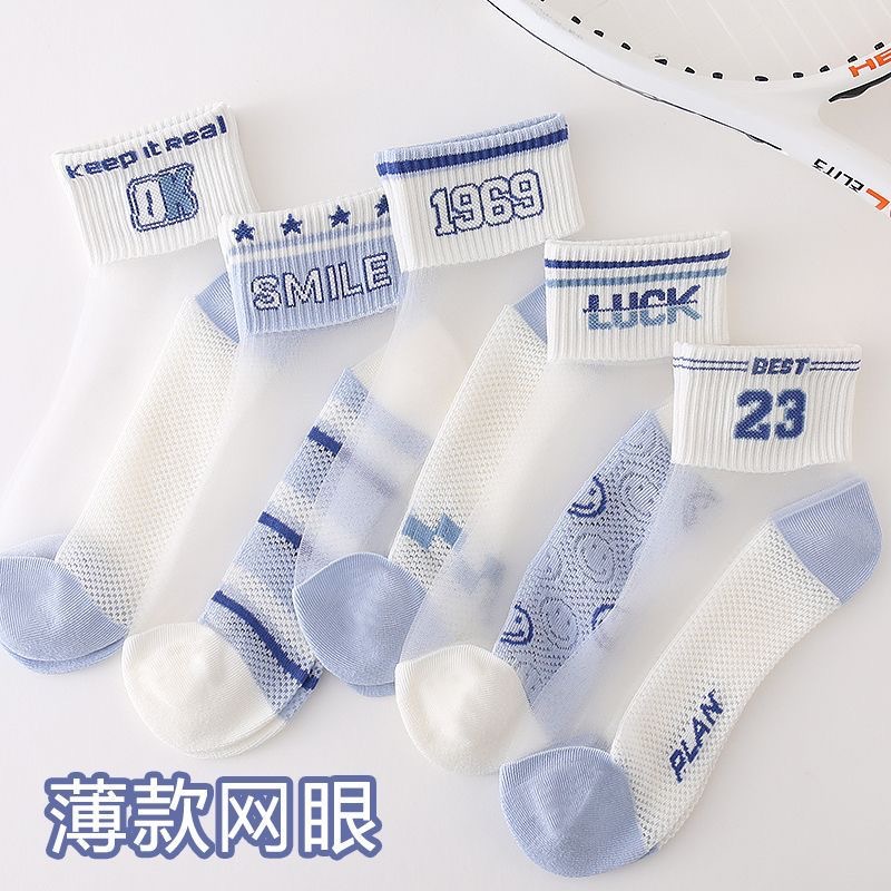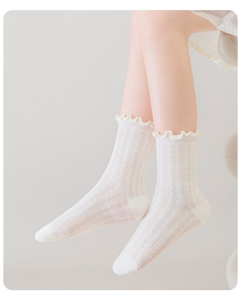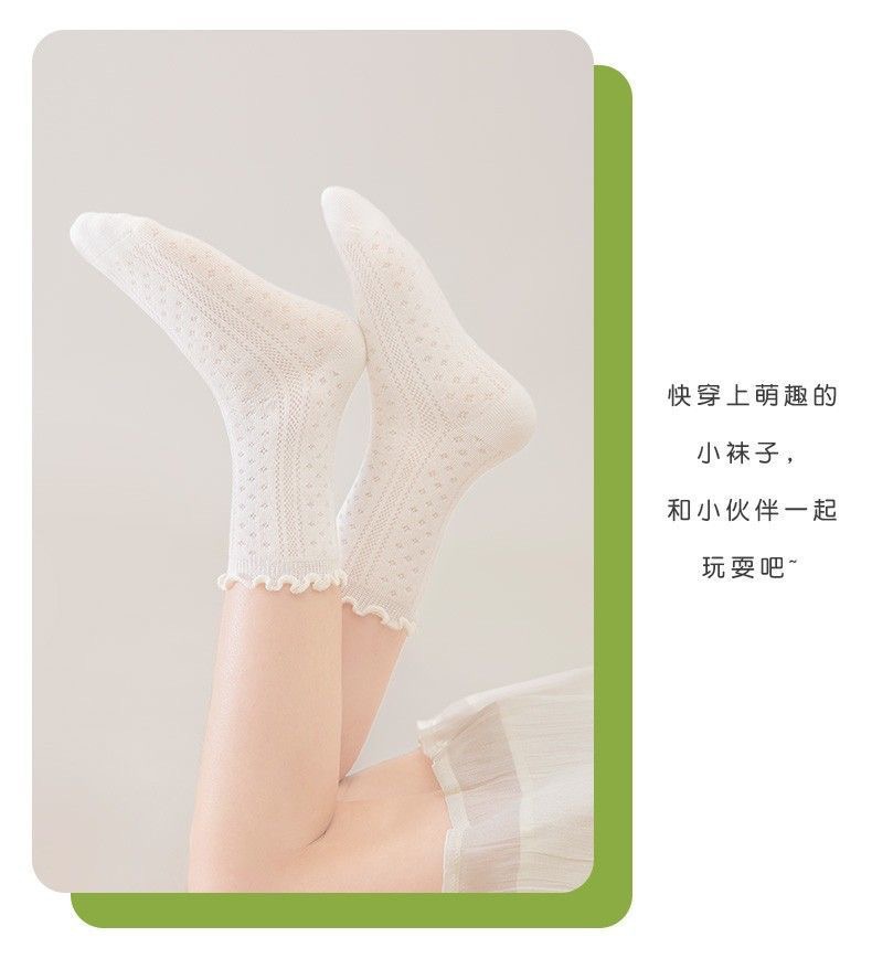 [가볍고 얇음] 소녀 흰색 양말 여름 얇은 흰색 양말 어린 소녀 공주 통기성 메쉬 레이스 양말