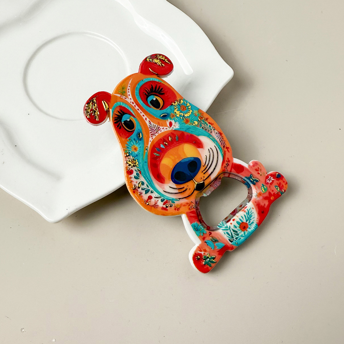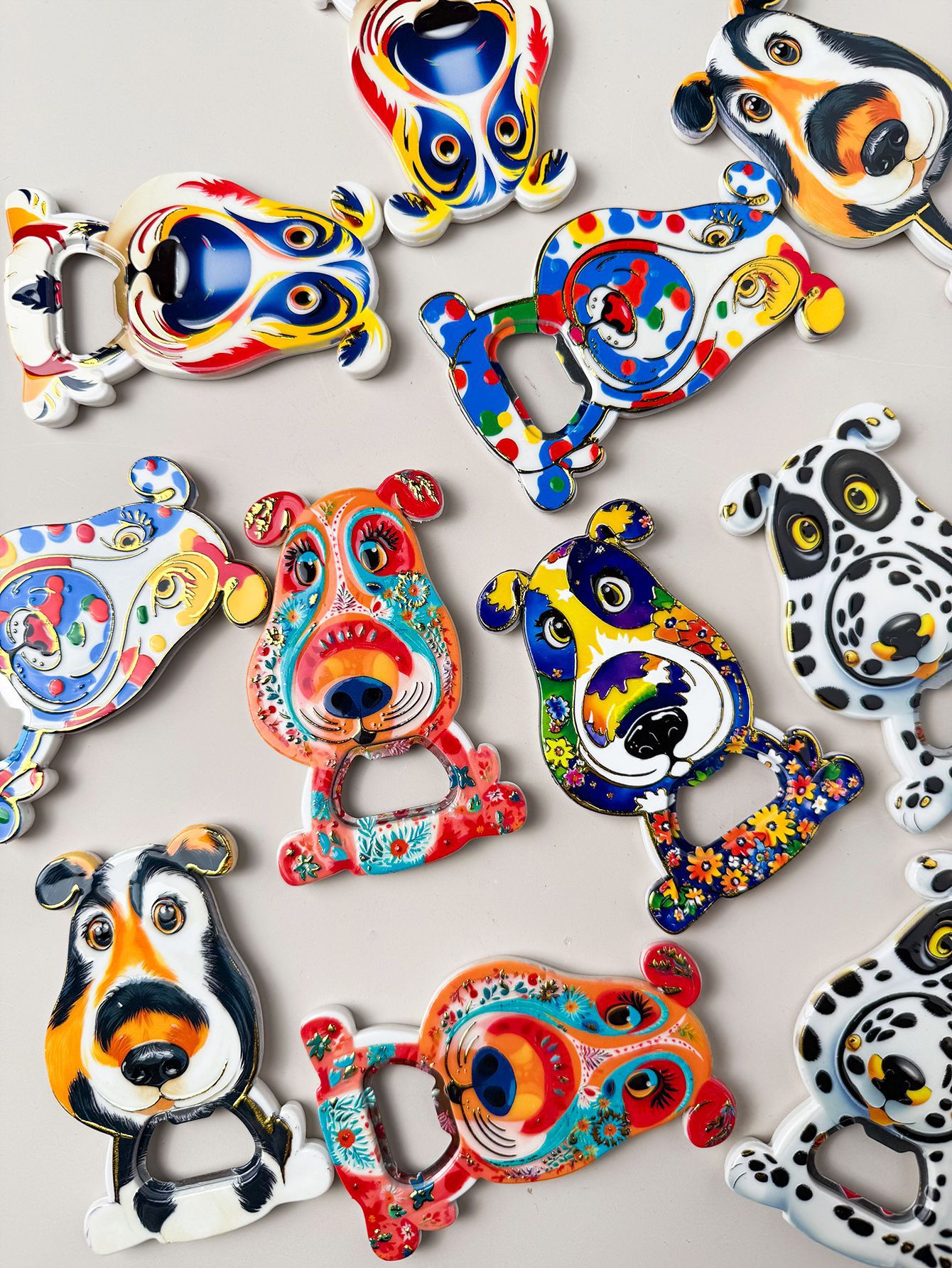 귀엽고 다채로운 맞춤형 개 핫 스탬핑 및 양각 공예 냉장고 자석 병따개 큰 눈 귀여운 개 대외 무역 이중 목적 자석스토어 가기