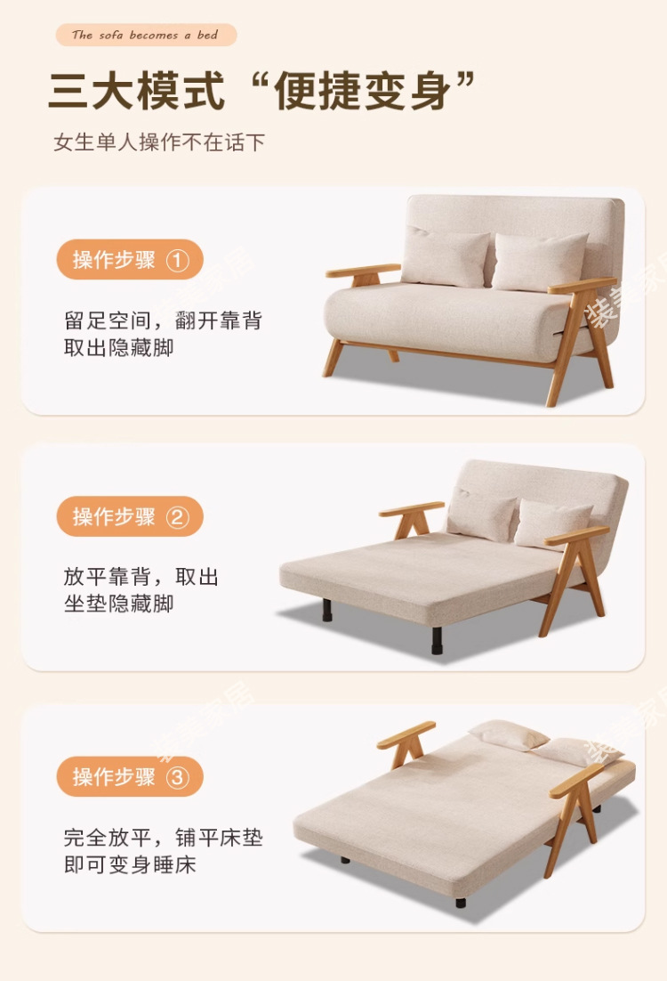 단단한 나무 소파 침대 접이식 이중 목적 침실 다기능 소파 의자 작은 아파트 거실 수면 및 리클라이닝 접이식 침대스토어 가기