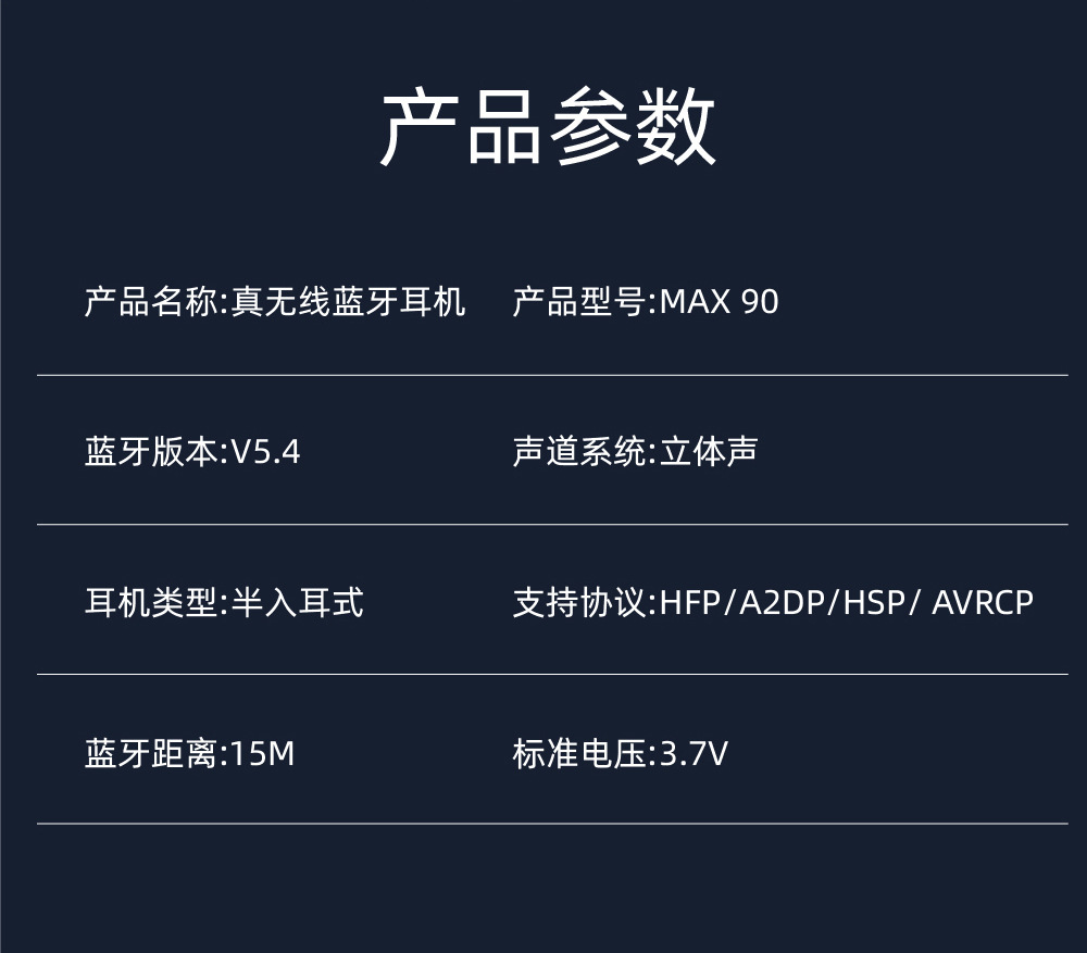 MAX90 블루투스 헤드셋 진정한 무선 미니 세미 인 이어 고품질 소음 감소 러닝 스포츠 매우 긴 배터리 수명
