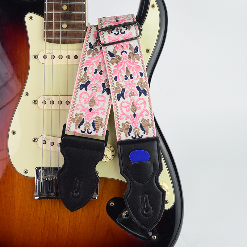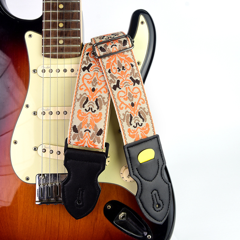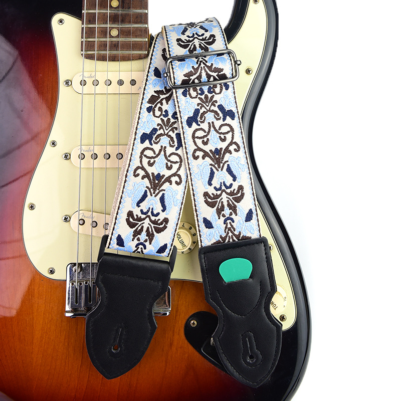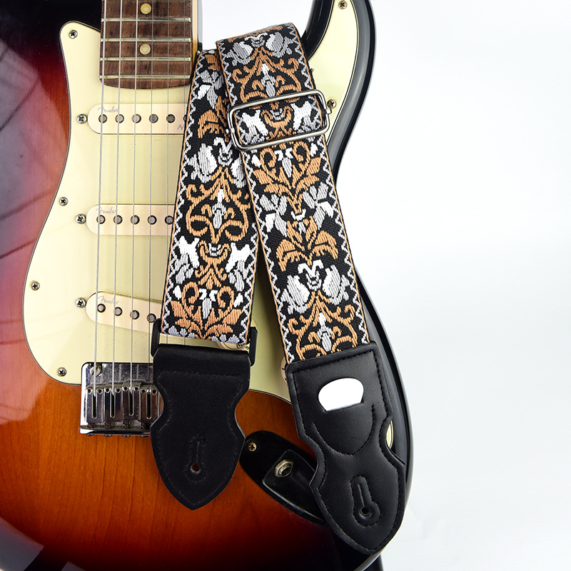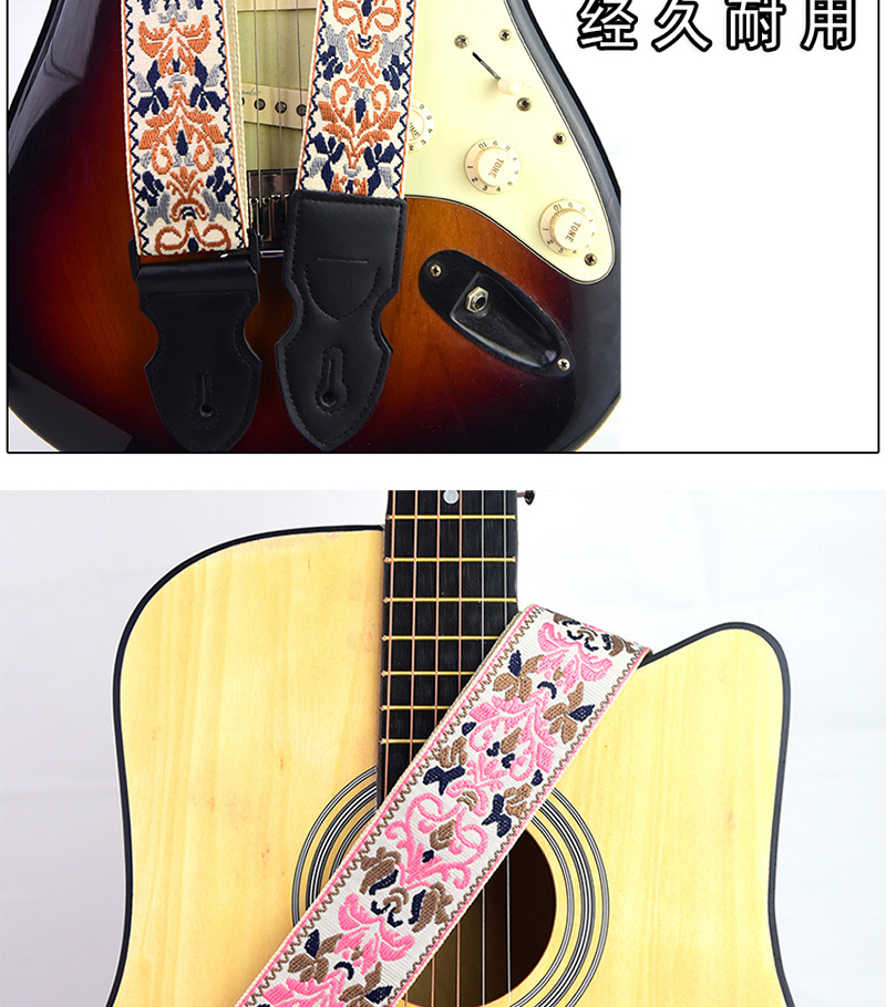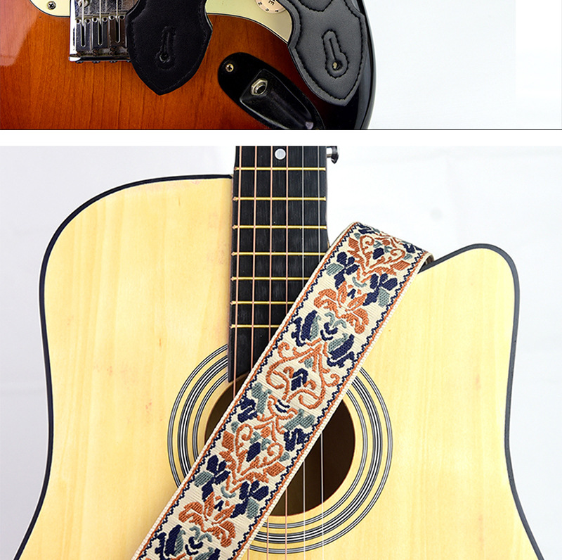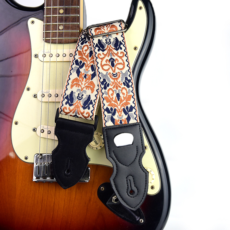 [맞춤형 지원] 국경 간 창의적 자수 기타 스트랩 가죽 포크 기타 스트랩 목재 일렉트릭 기타 스트랩