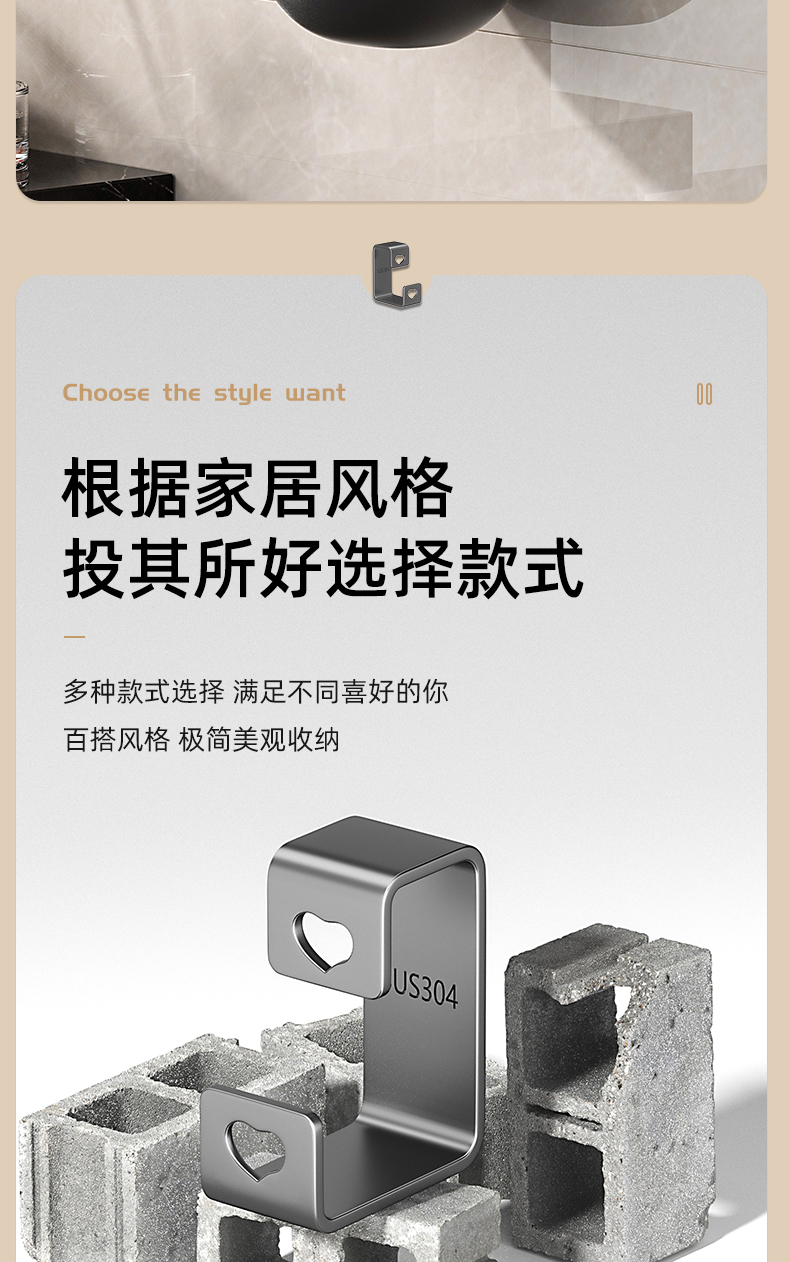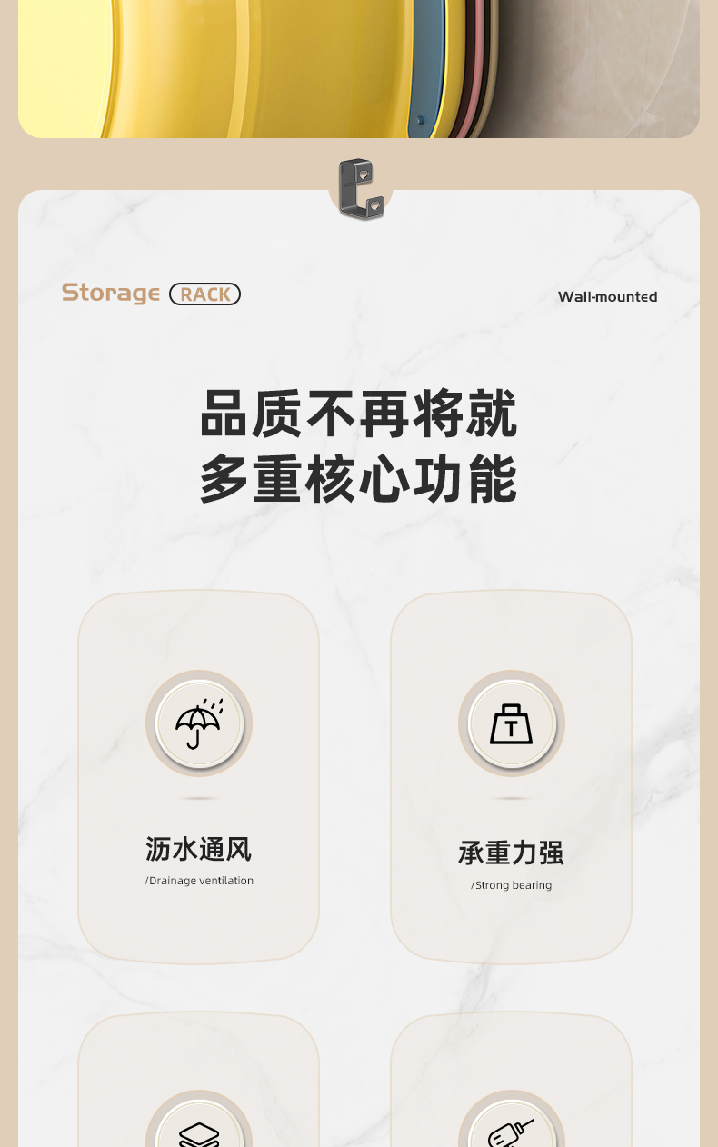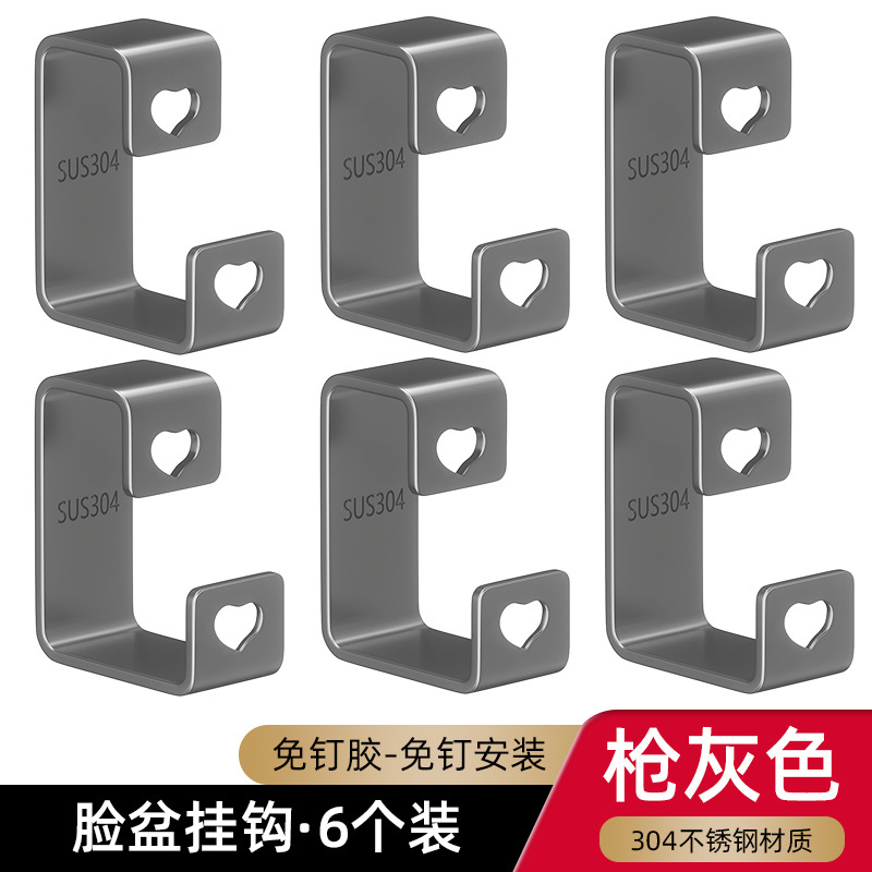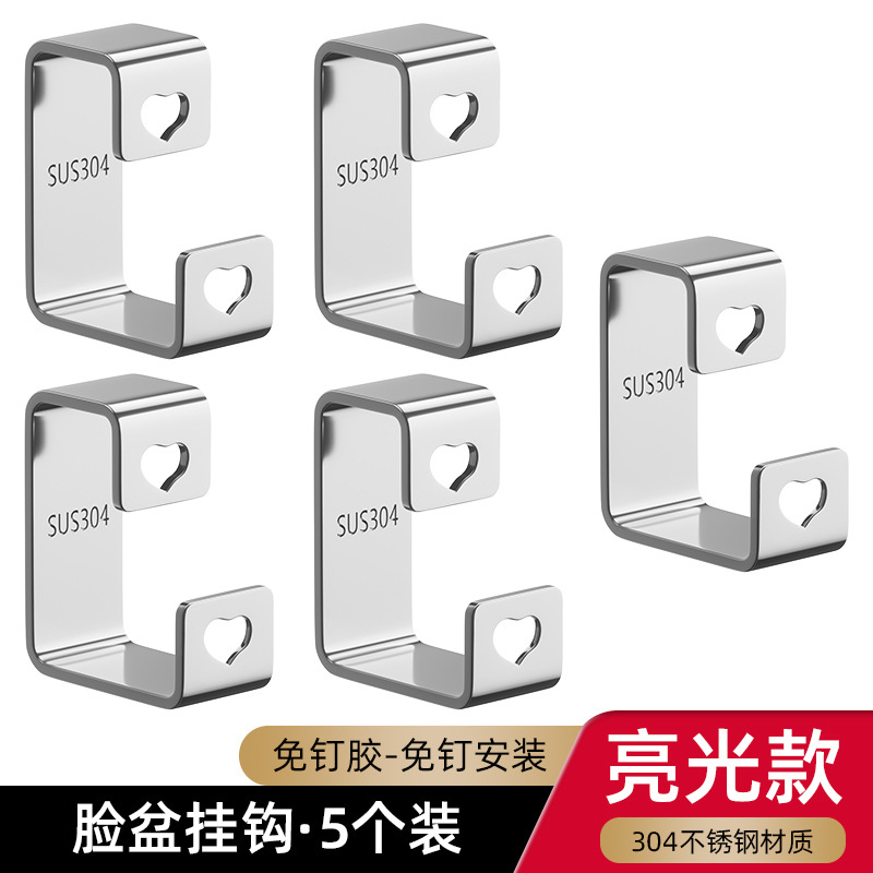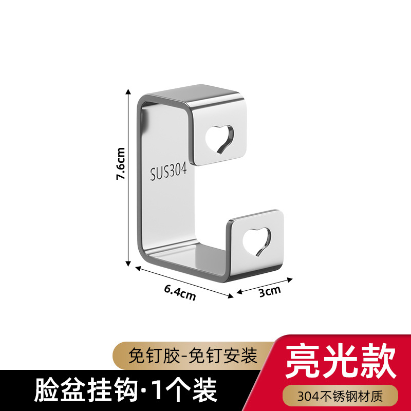구멍이 없는 세면대 수납선반, 욕실, 스테인레스 스틸 벽걸이 수납선반, 세면대 후크 Shao Yi스토어 가기