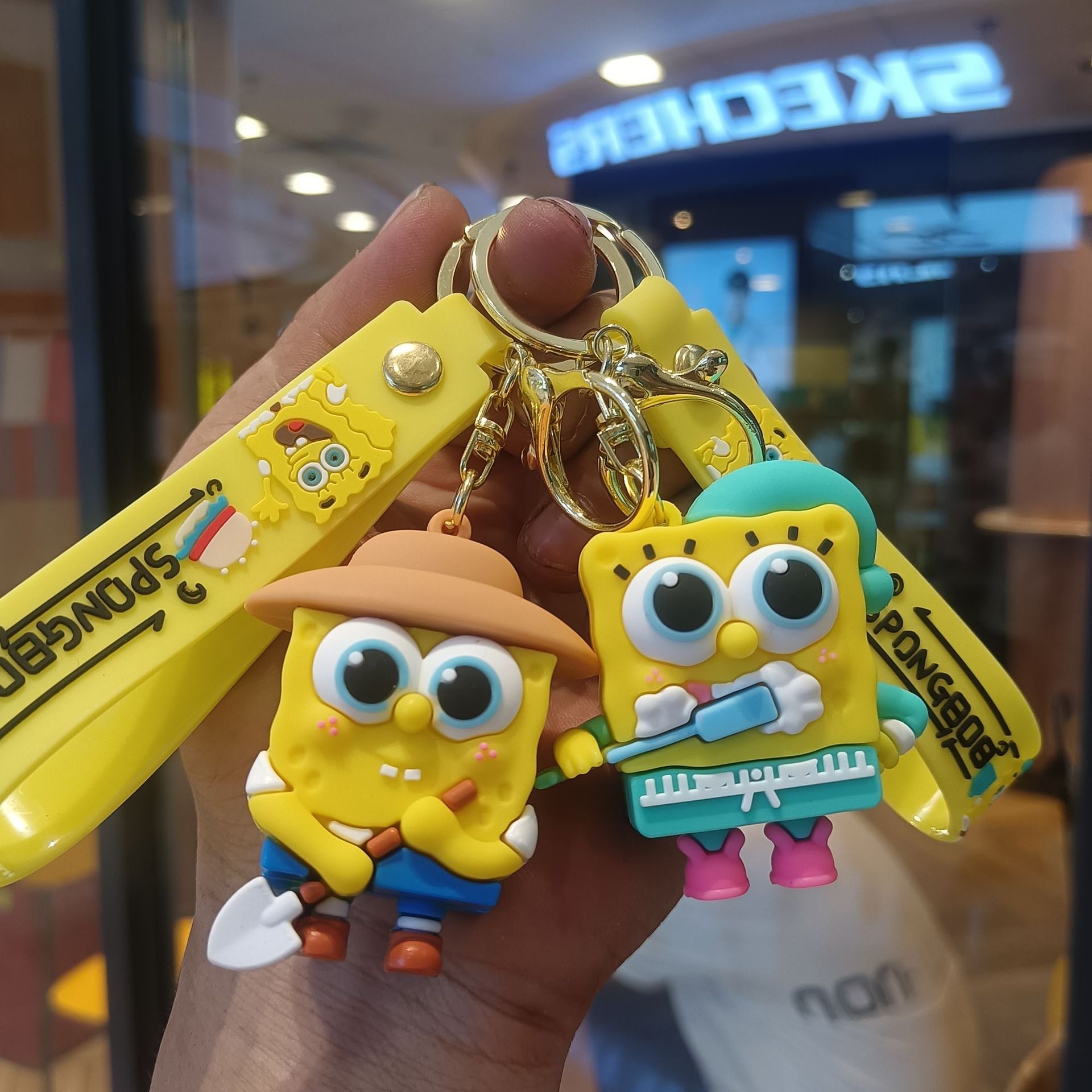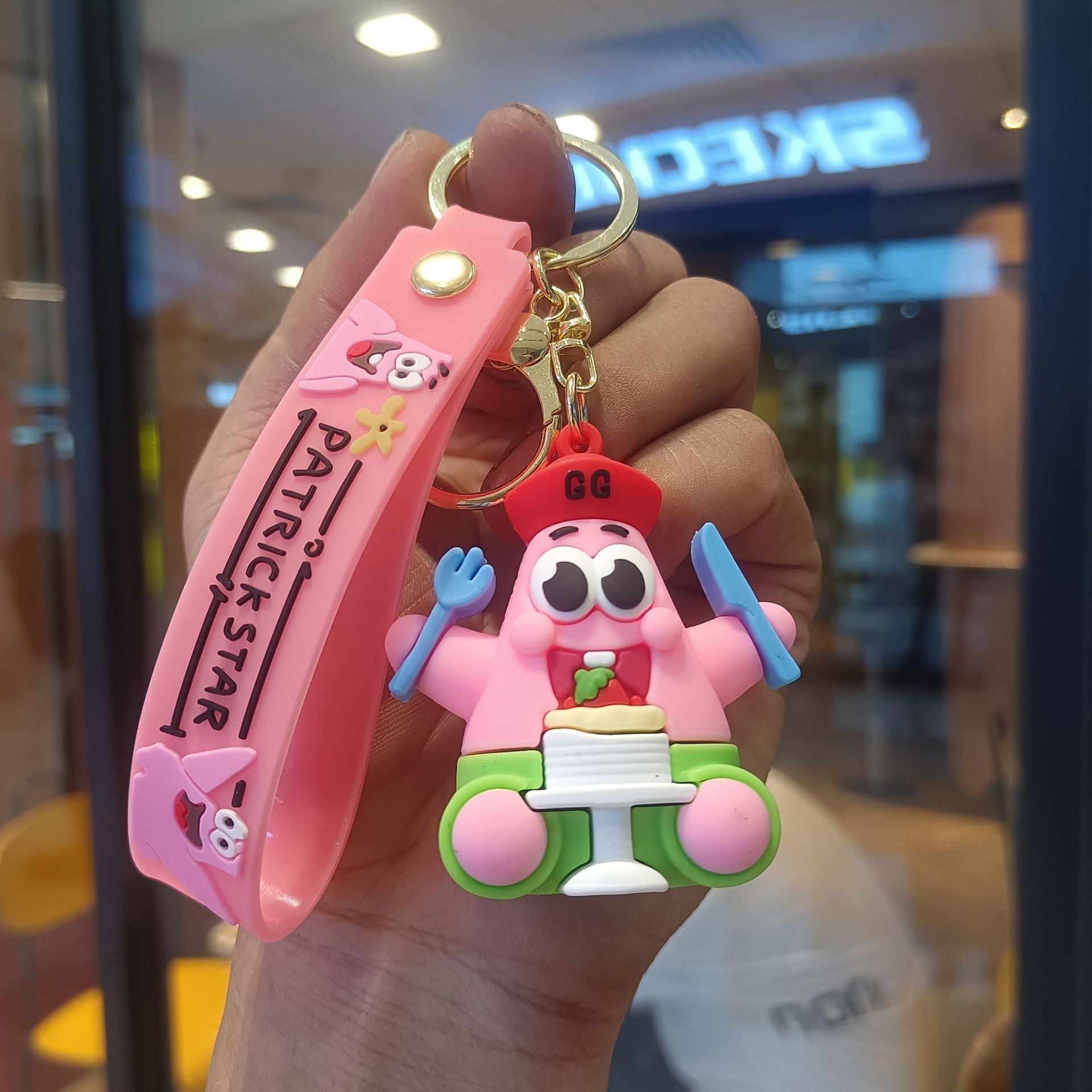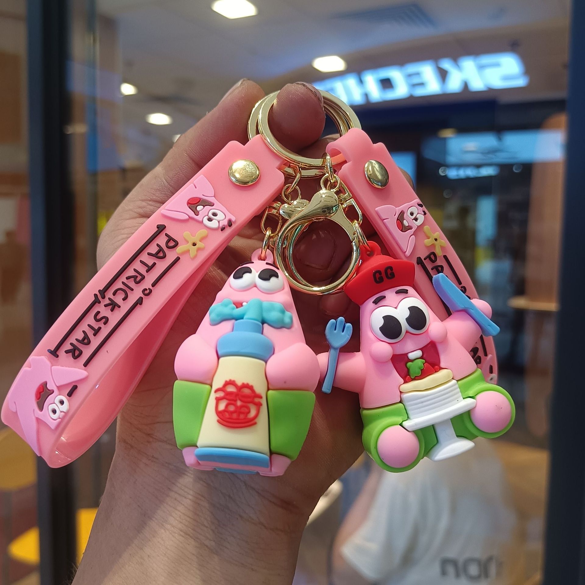 만화 스폰지 밥 키 체인 펜던트 귀여운 스타 인형 인형 가방 펜던트 작은 선물 열쇠 고리스토어 가기