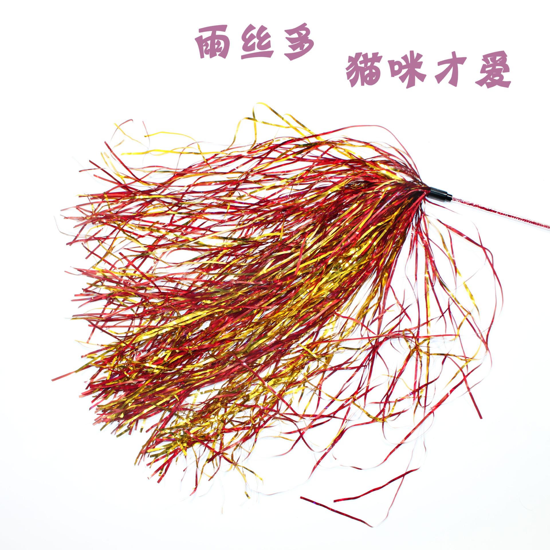 크리스마스 컬러 레인 실크 스트립 고양이 스틱 자체 즐거움과 지루함 해소 장난감 재고 있음 도매 고양이 인터랙티브 미니