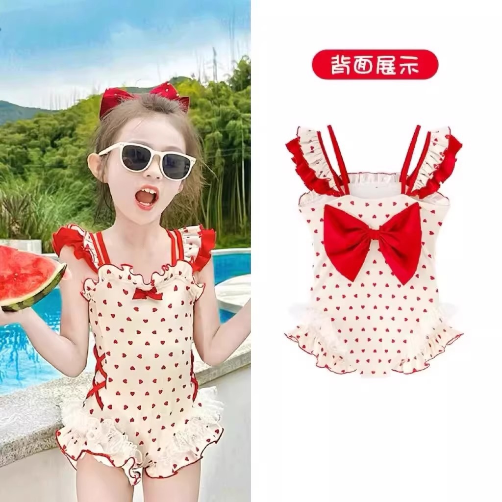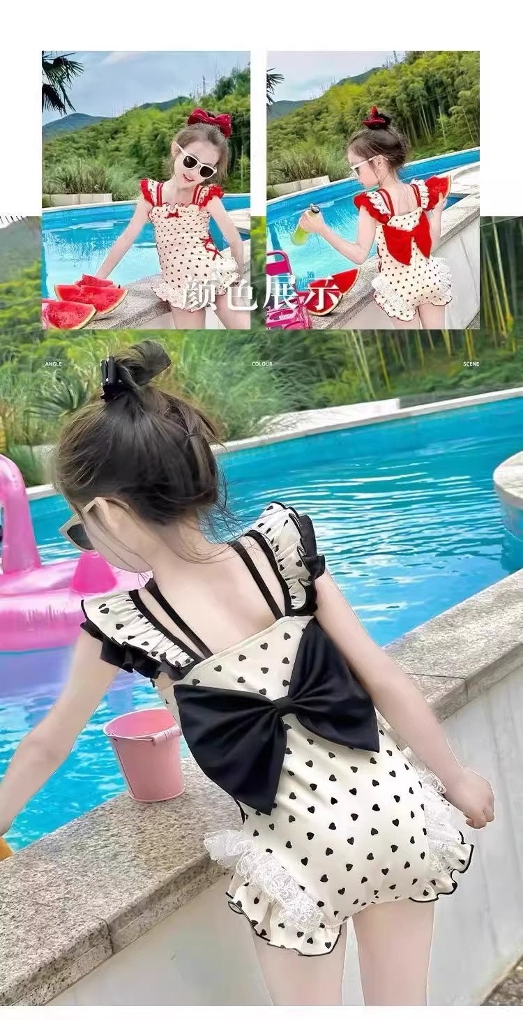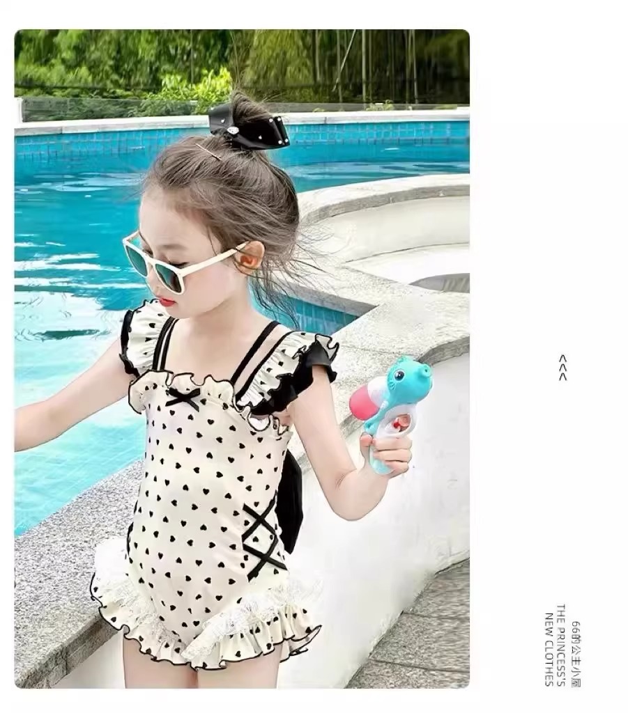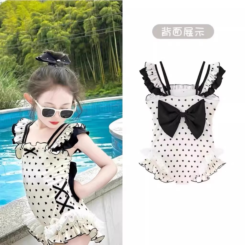 새로운 여자 수영복 검은 복숭아 하트 나비 어린이 원피스 비키니 속건성 아기 수영복 세트