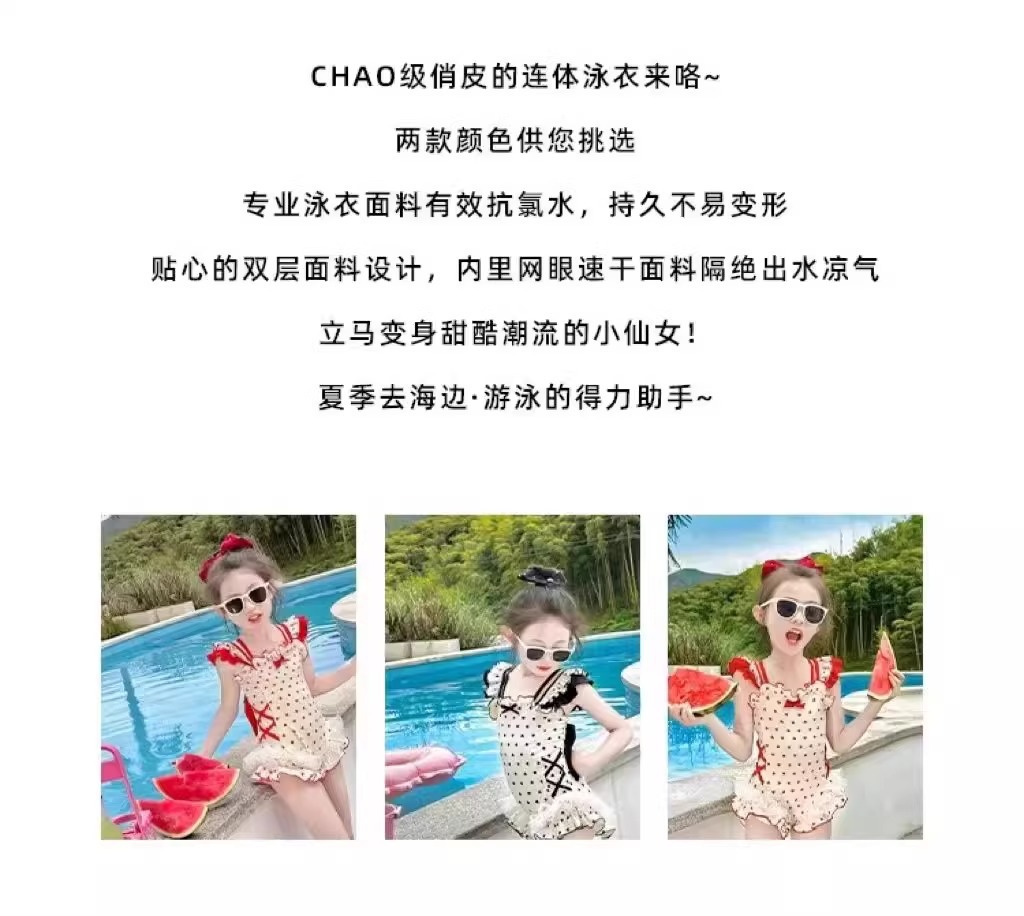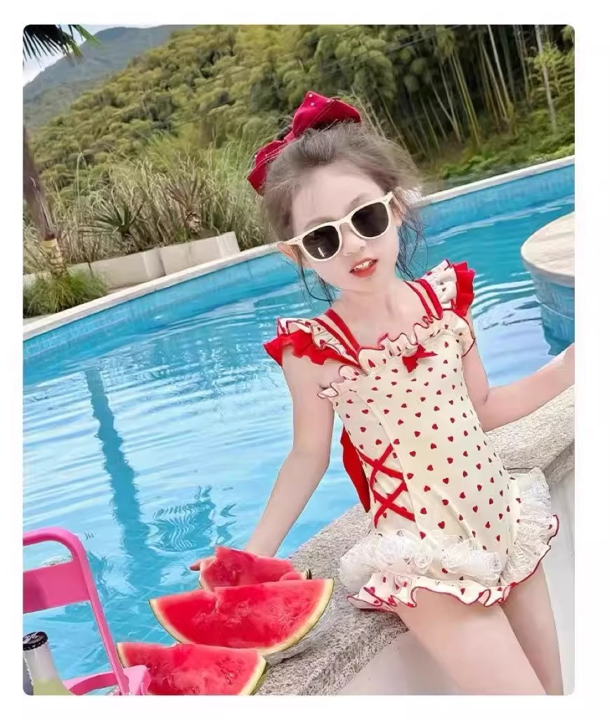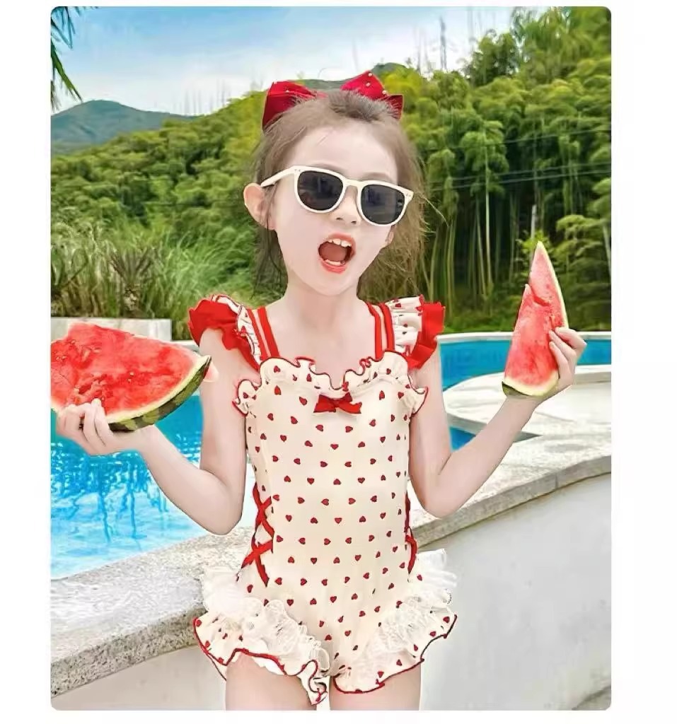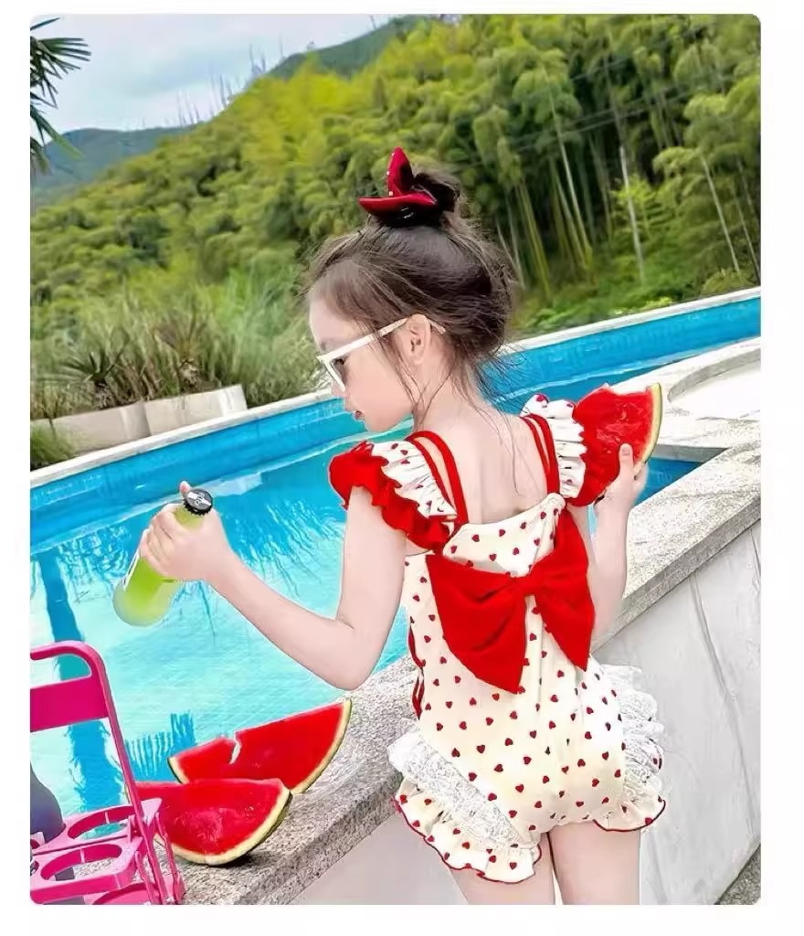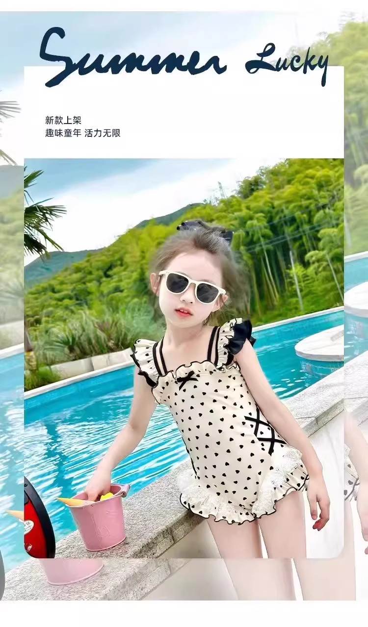 새로운 여자 수영복 검은 복숭아 하트 나비 어린이 원피스 비키니 속건성 아기 수영복 세트