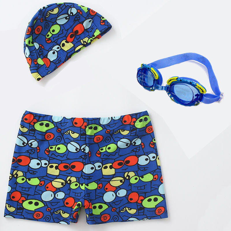 어린이 수영복 소년 만화 소형, 중형 및 대형 어린이 학생 소년 아기 속건성 복서 수영 트렁크 후드 세트