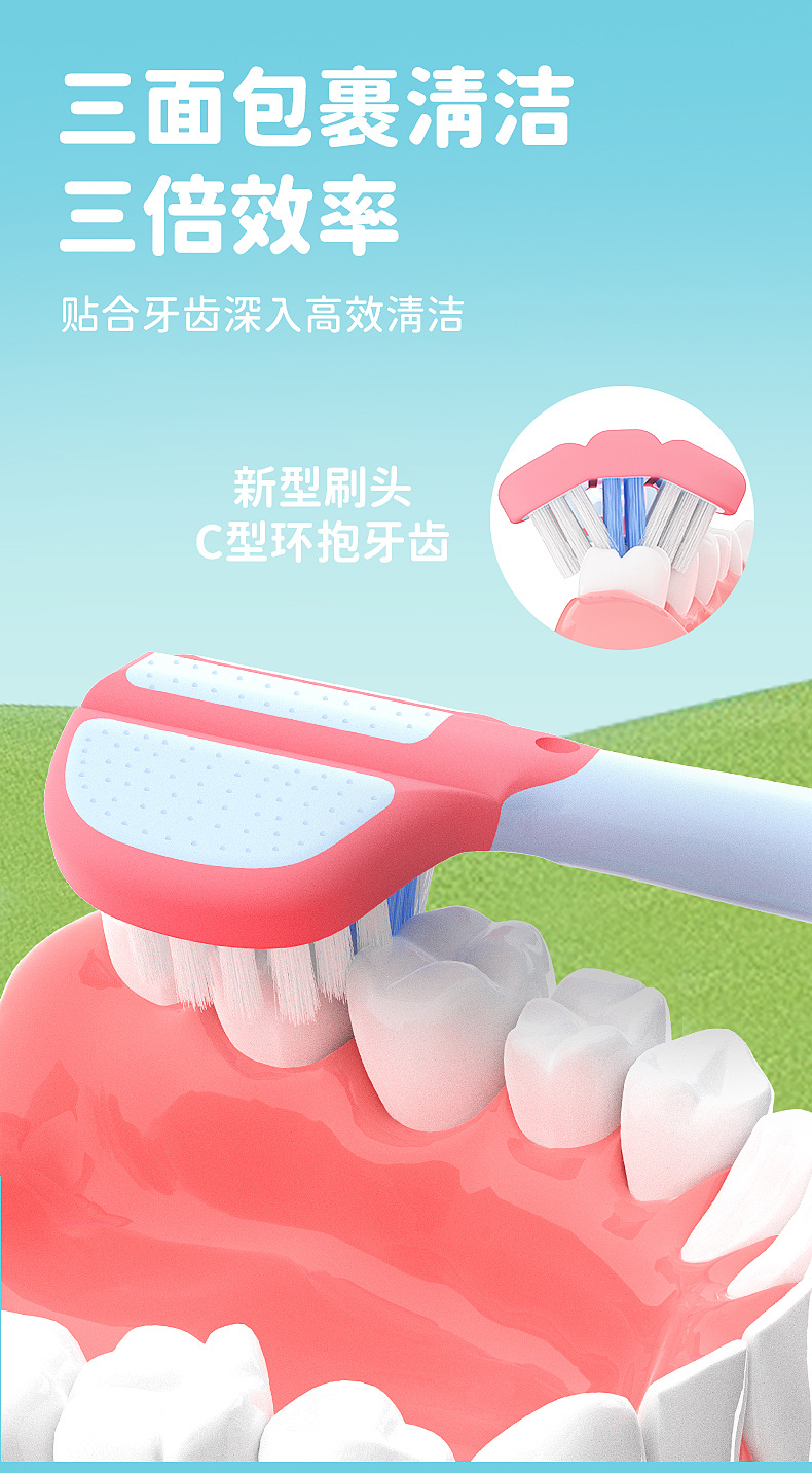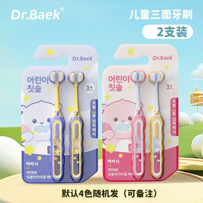 3~12세 어린이용 삼면칫솔 2팩, 고급 부드러운 모 3헤드 어린이 칫솔, 정품 재고 있음스토어 가기