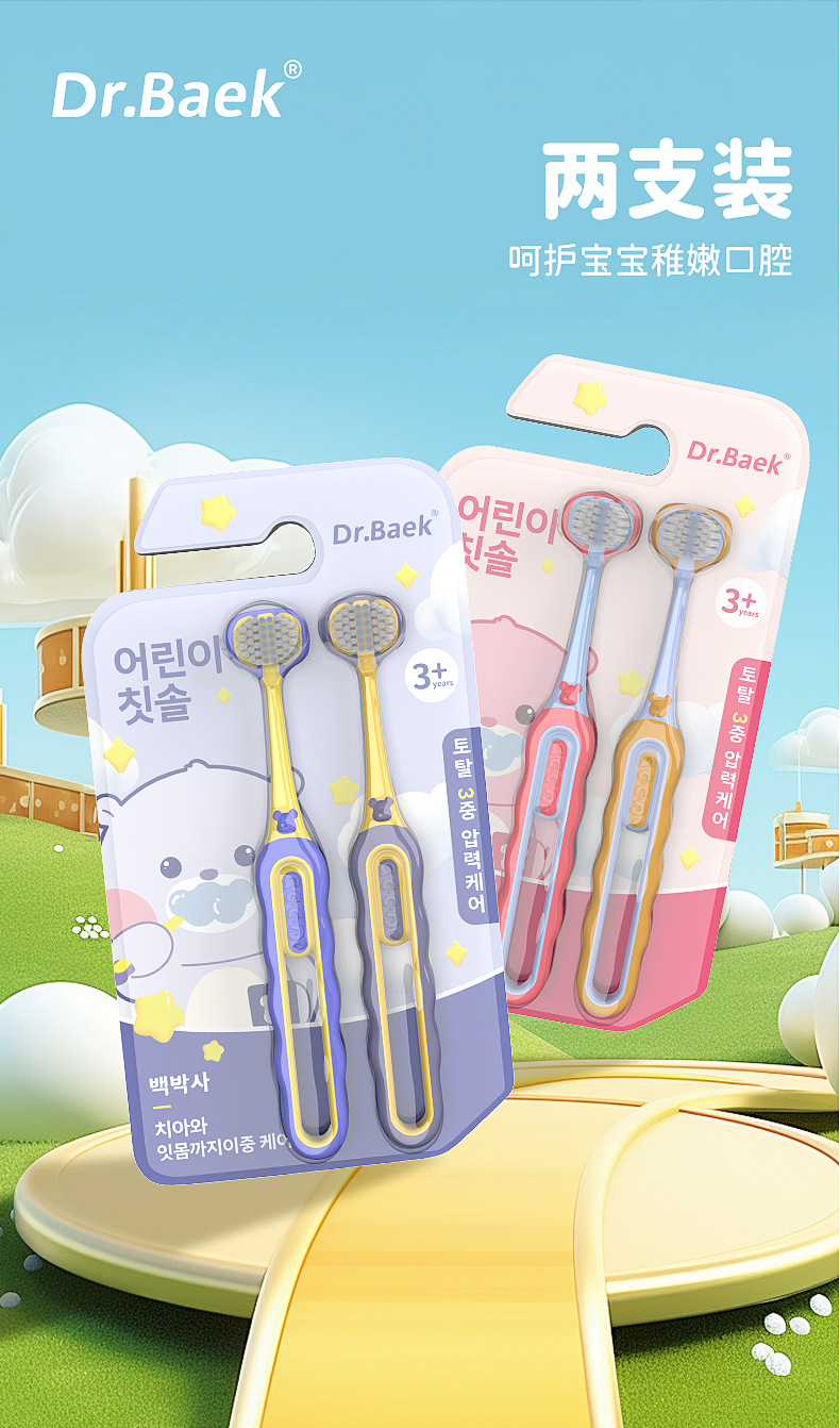 3~12세 어린이용 삼면칫솔 2팩, 고급 부드러운 모 3헤드 어린이 칫솔, 정품 재고 있음