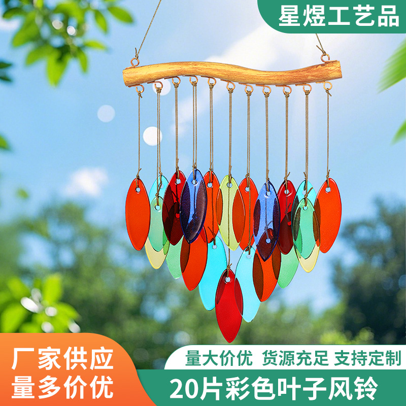 20 조각 다채로운 잎 바람 종소리 철 핫멜트 스테인드 글라스 크리 에이 티브 가든 홈 장식스토어 가기
