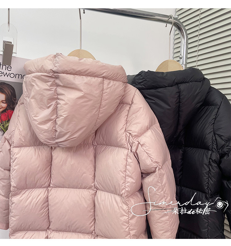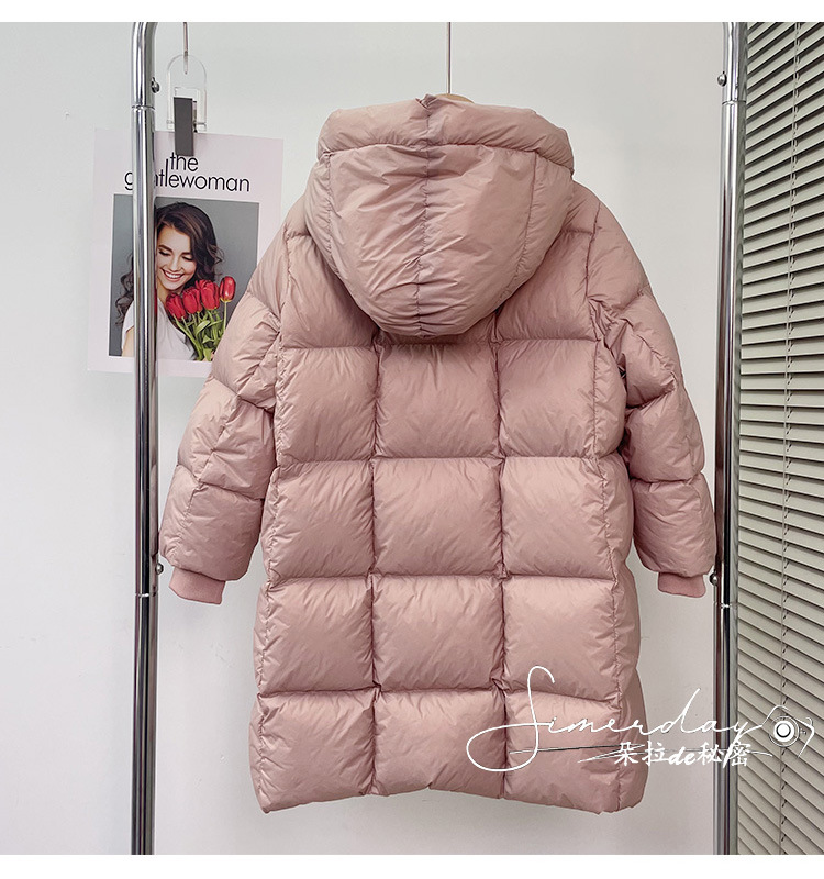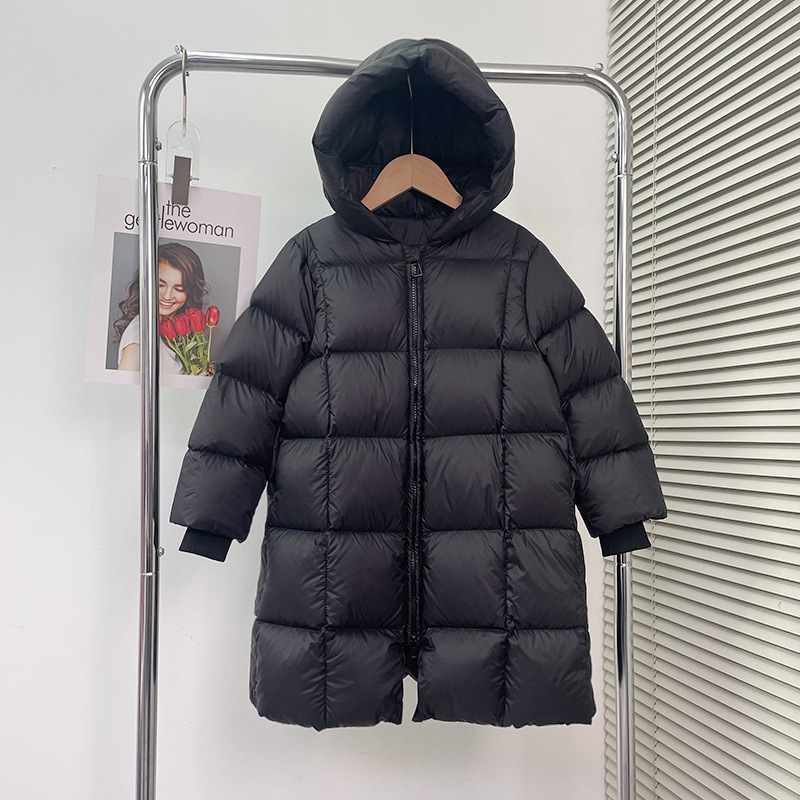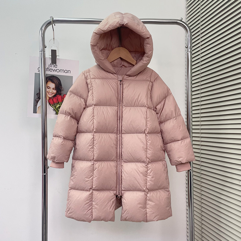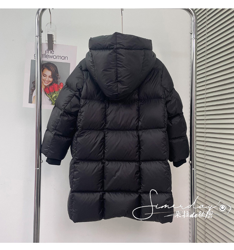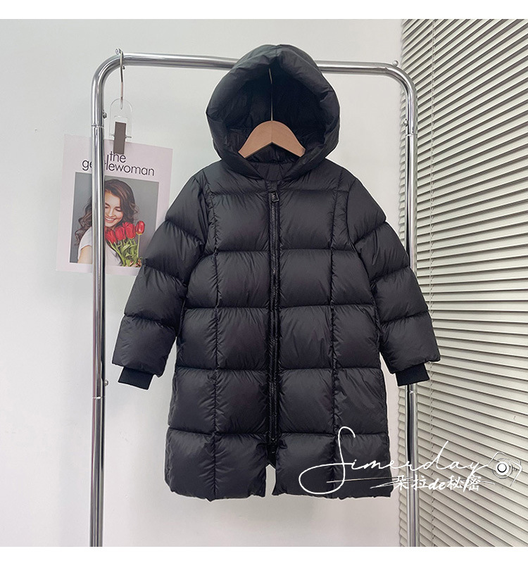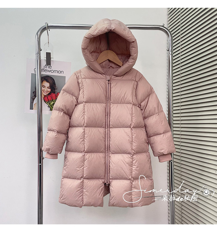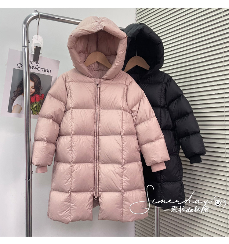 여아 중간 길이 무릎 위 다운 재킷 2025 아동용 두꺼운 후드 스타일 한국식 따뜻한 재킷 중대형 어린이를위한스토어 가기