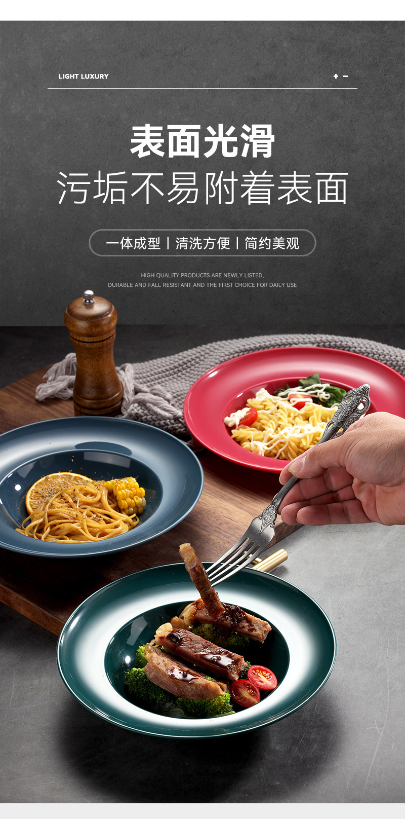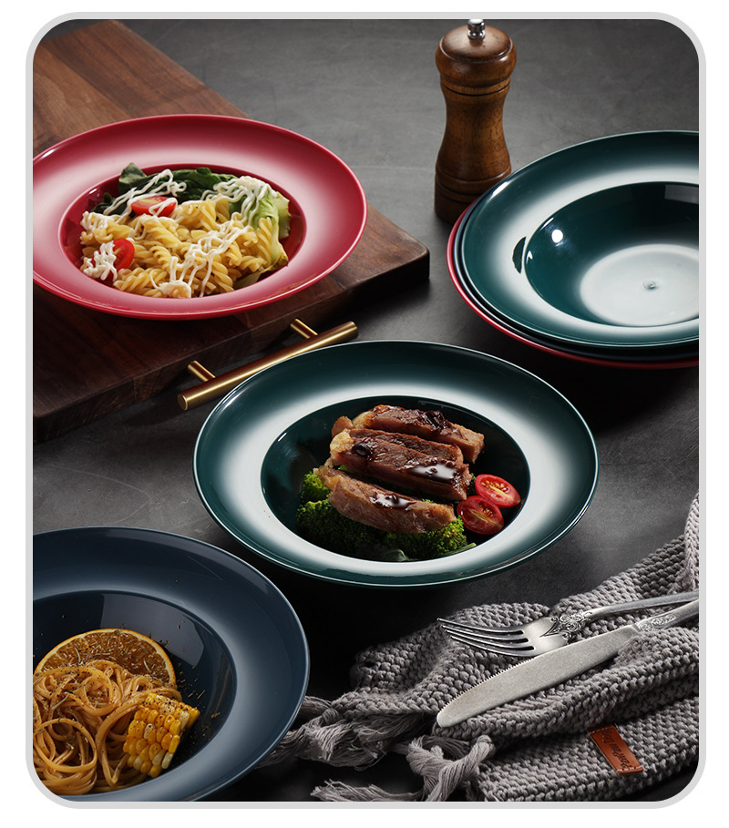 가정용 심플 마카롱 컬러 밀짚모자 그릇 PP 소재 ins 고급스러운 접시 깊은 접시 이탈리안 수프 접시 뼈 접시