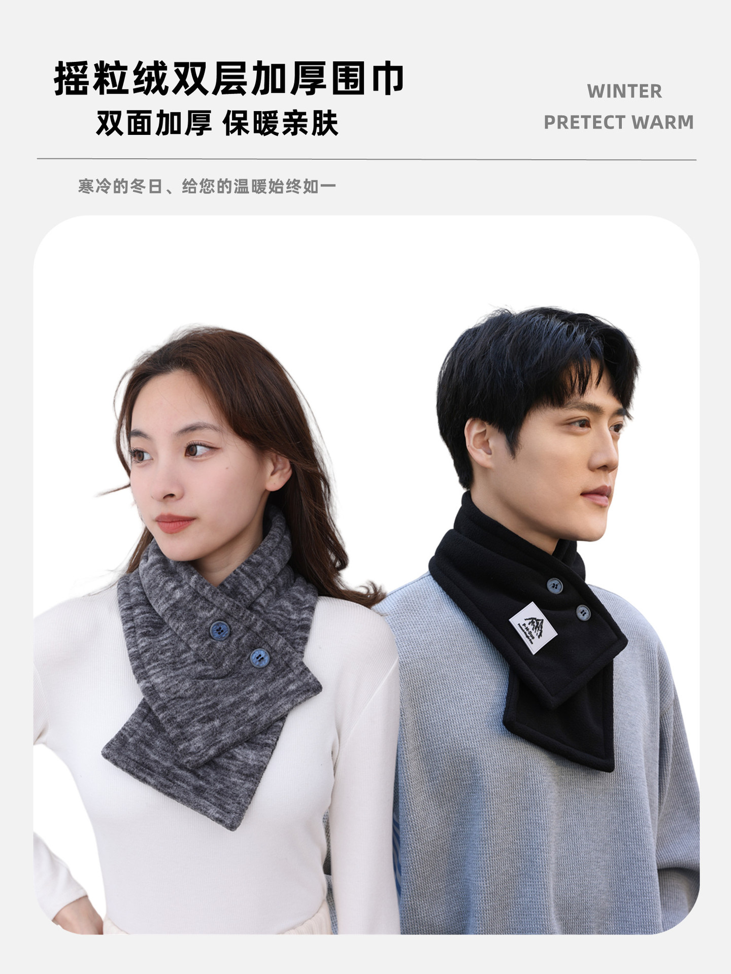 가을 겨울 신제품 폴라 플리스 버튼 스카프, 겨울 방한 및 따뜻한 스카프, 남성용 및 여성용 목 보호대